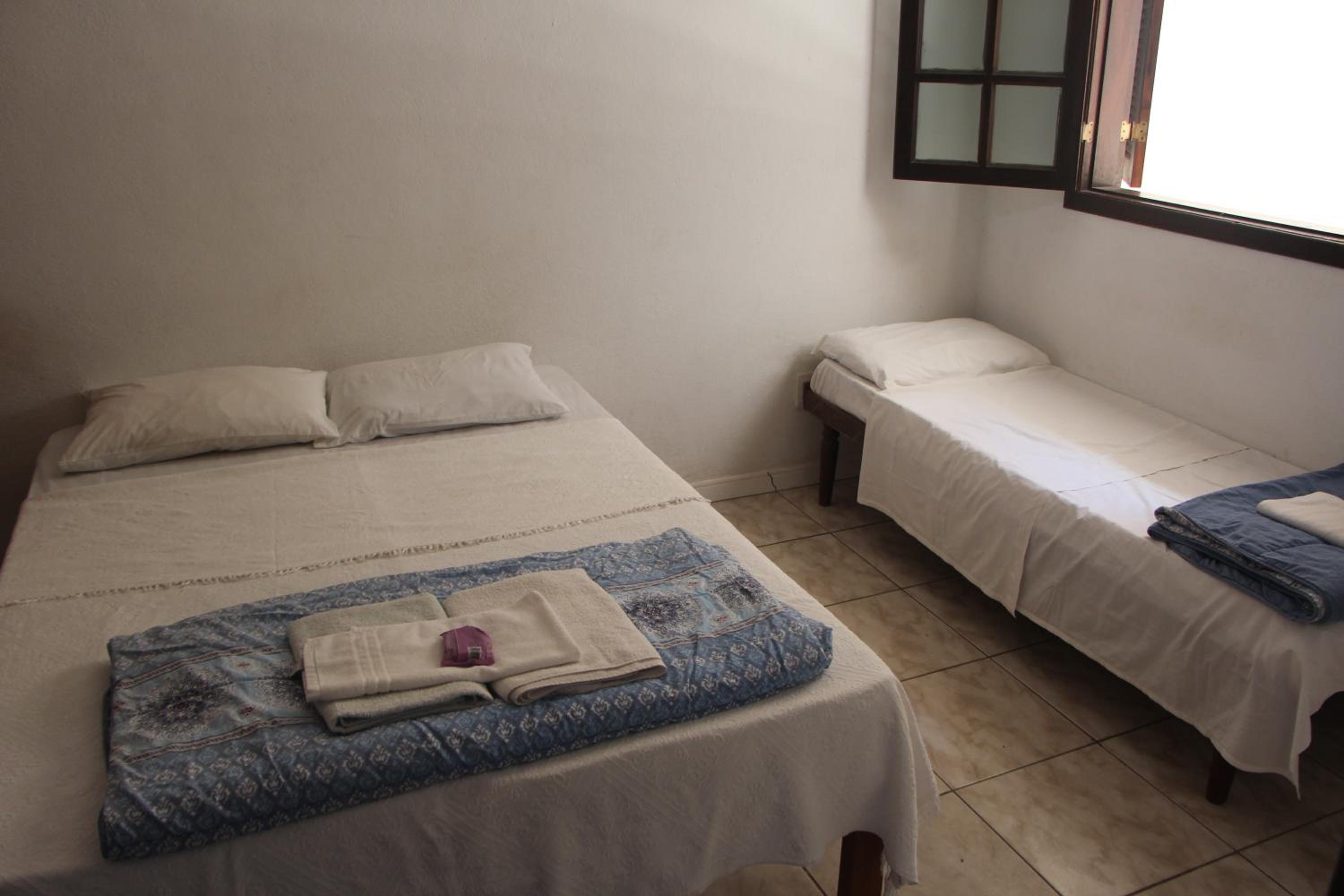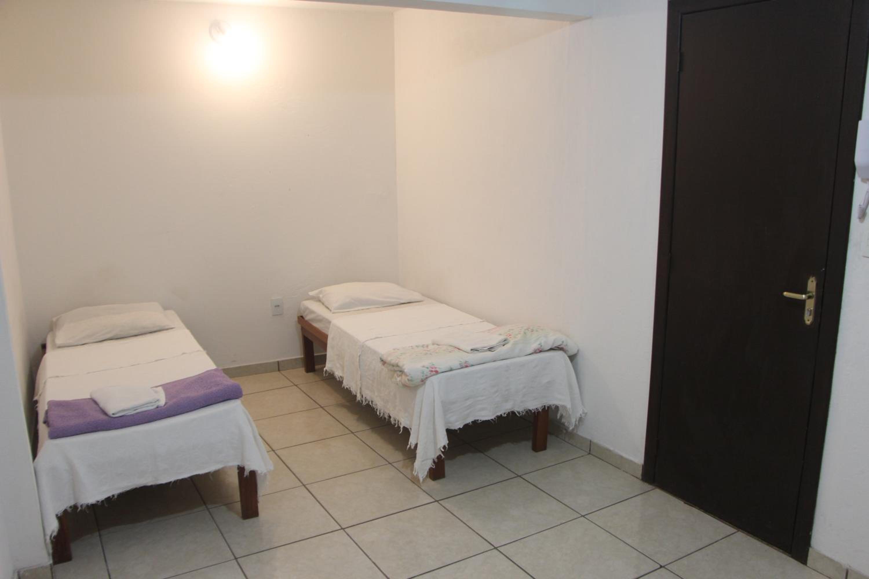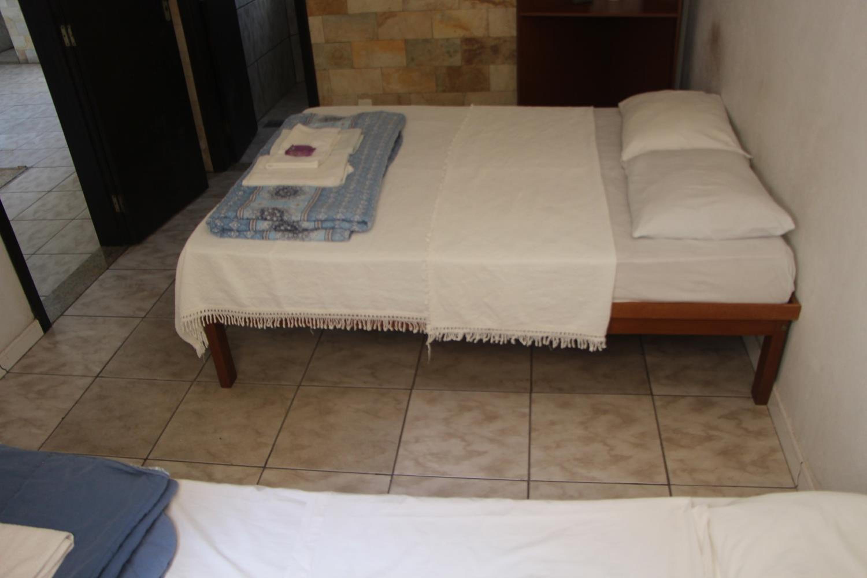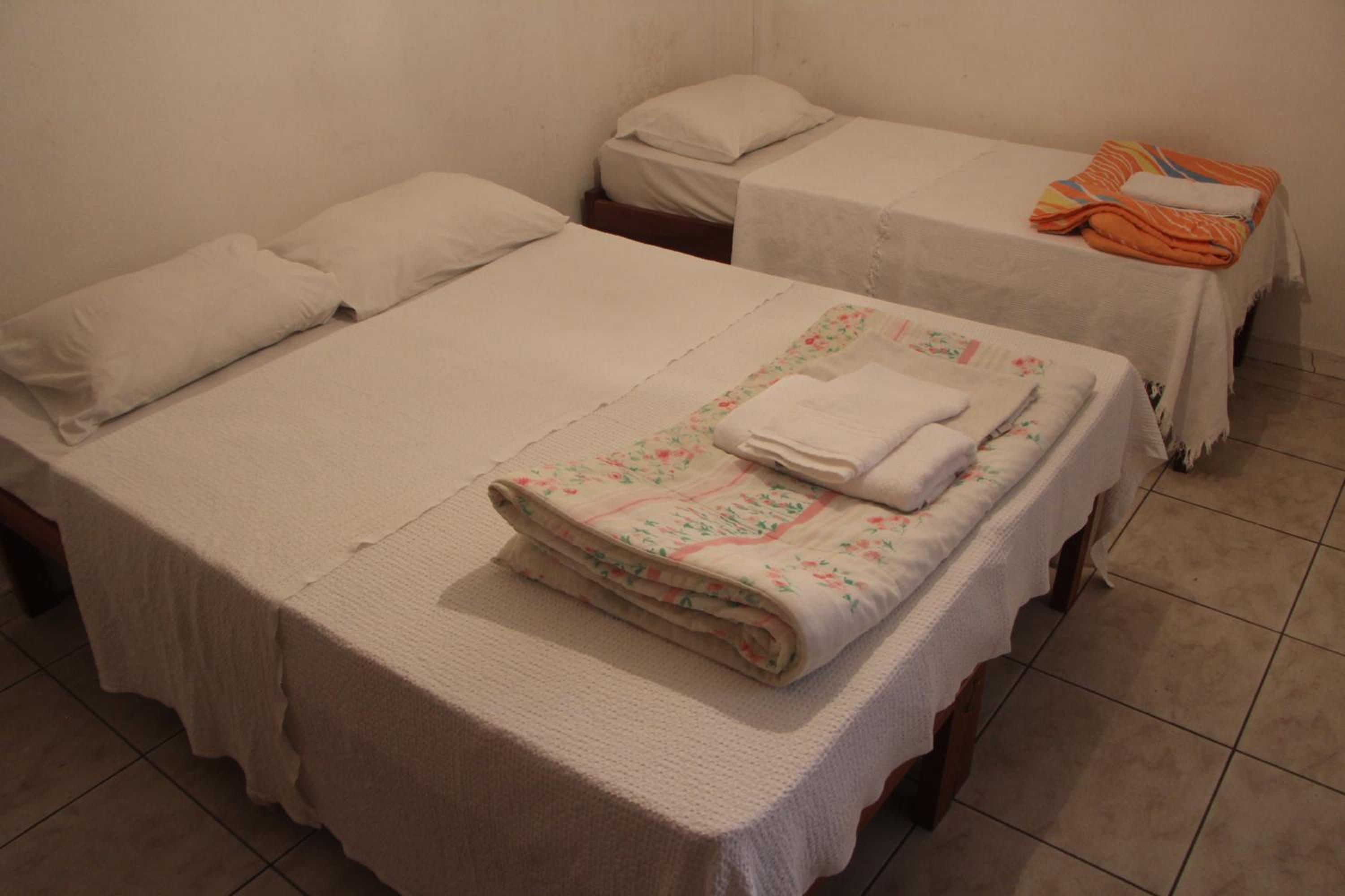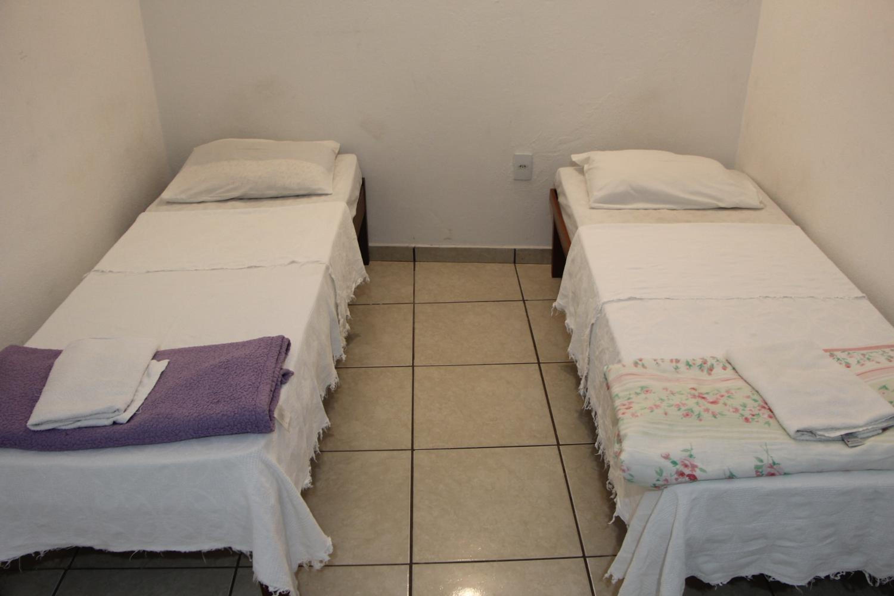 A espuma colocada em cima das duas camas de solteiro que foram unidas para virar cama de casal não é confortável, tiramos ele para conseguirmos dormir.