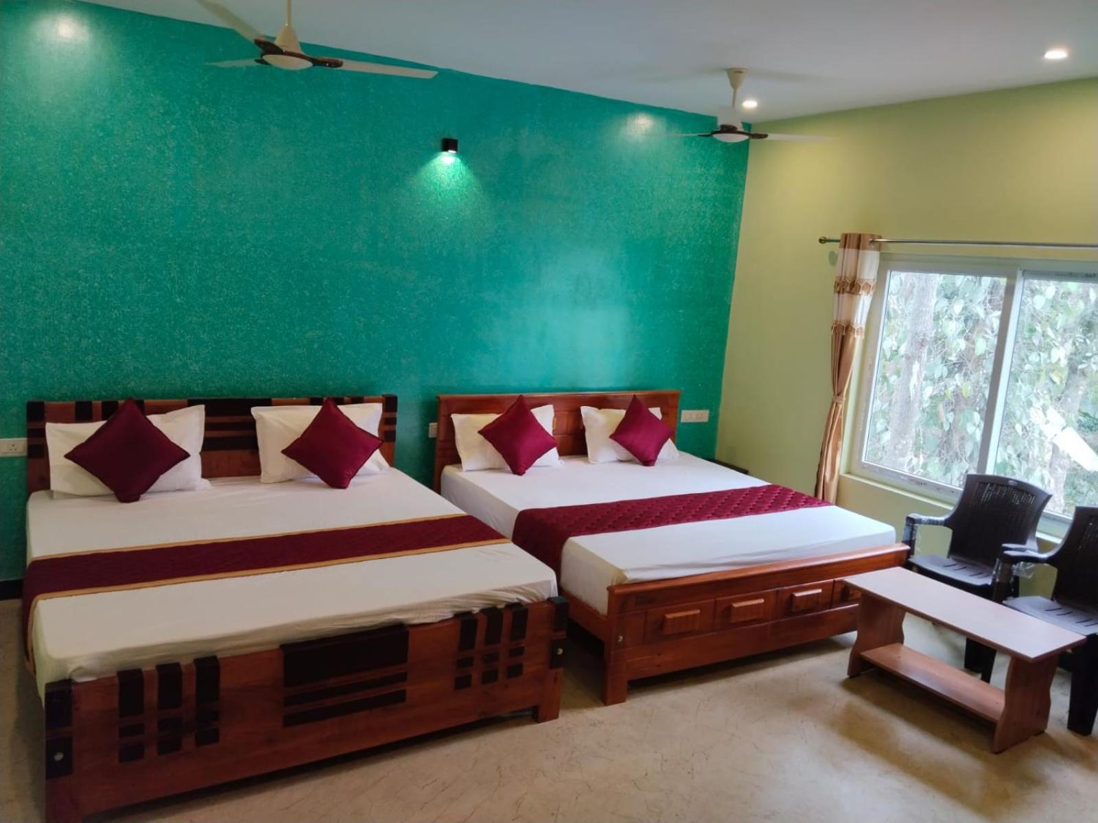 Discover cozy rooms, a serene garden, and a welcoming shared lounge at Red Stone Resort.