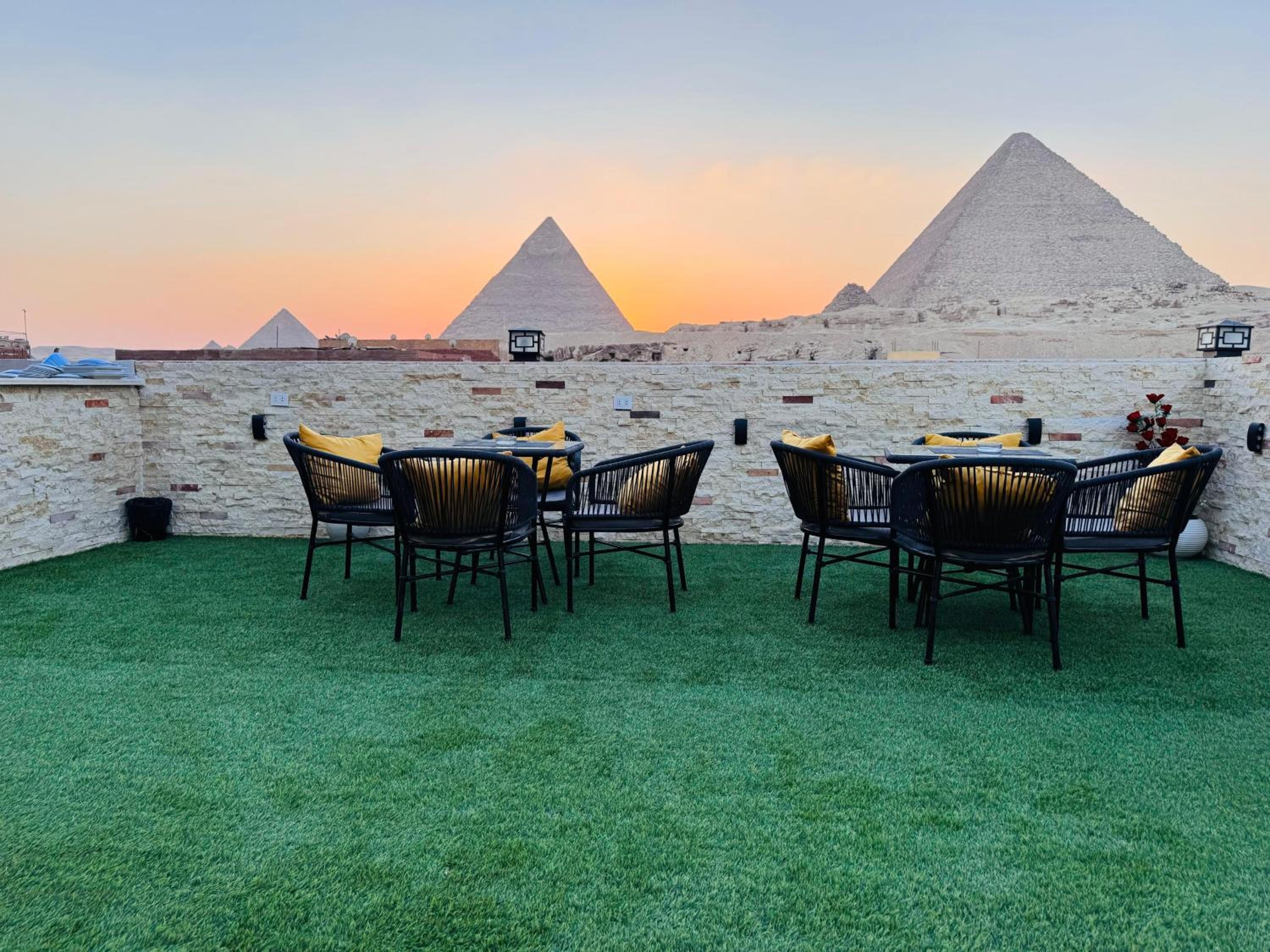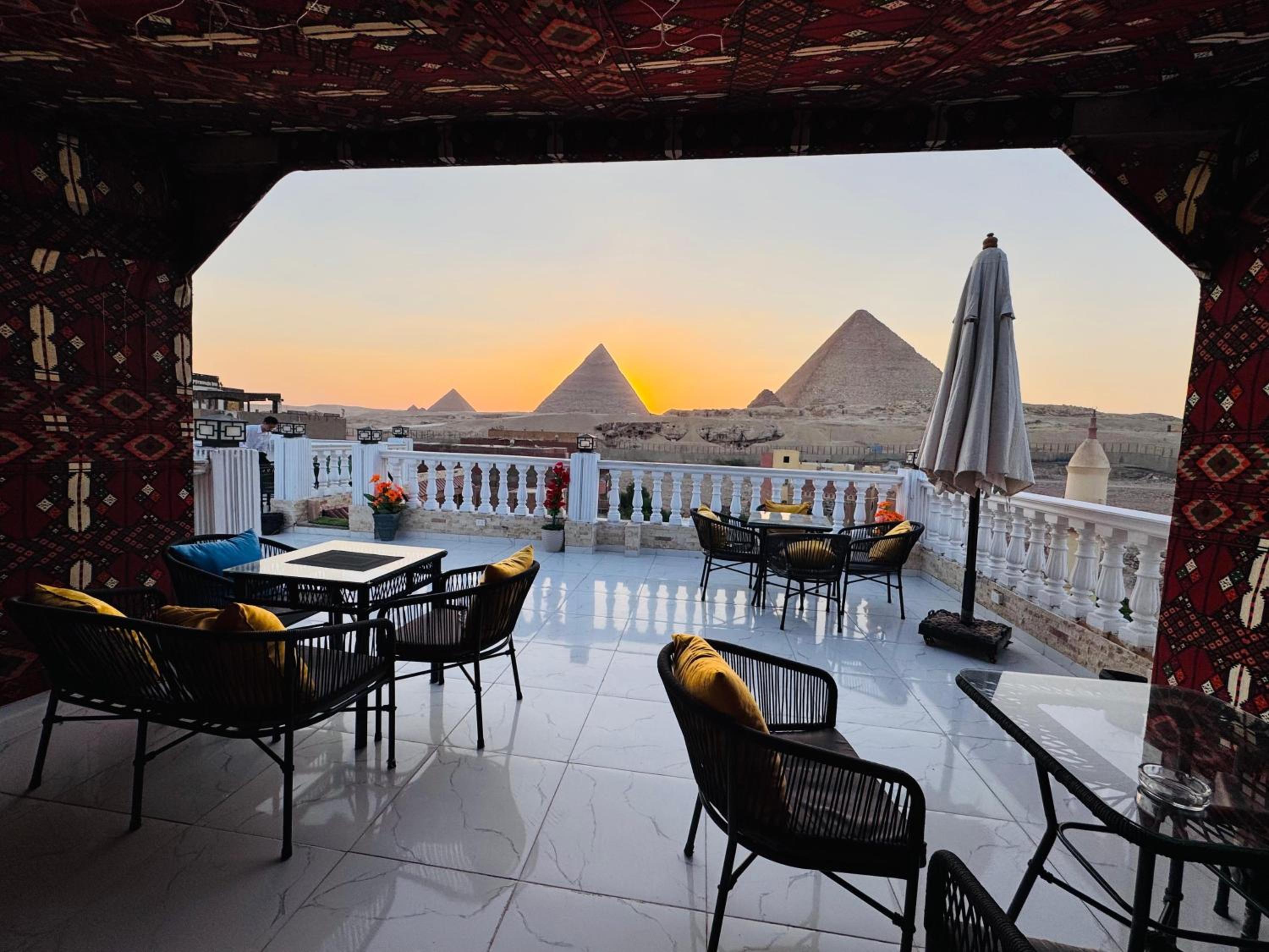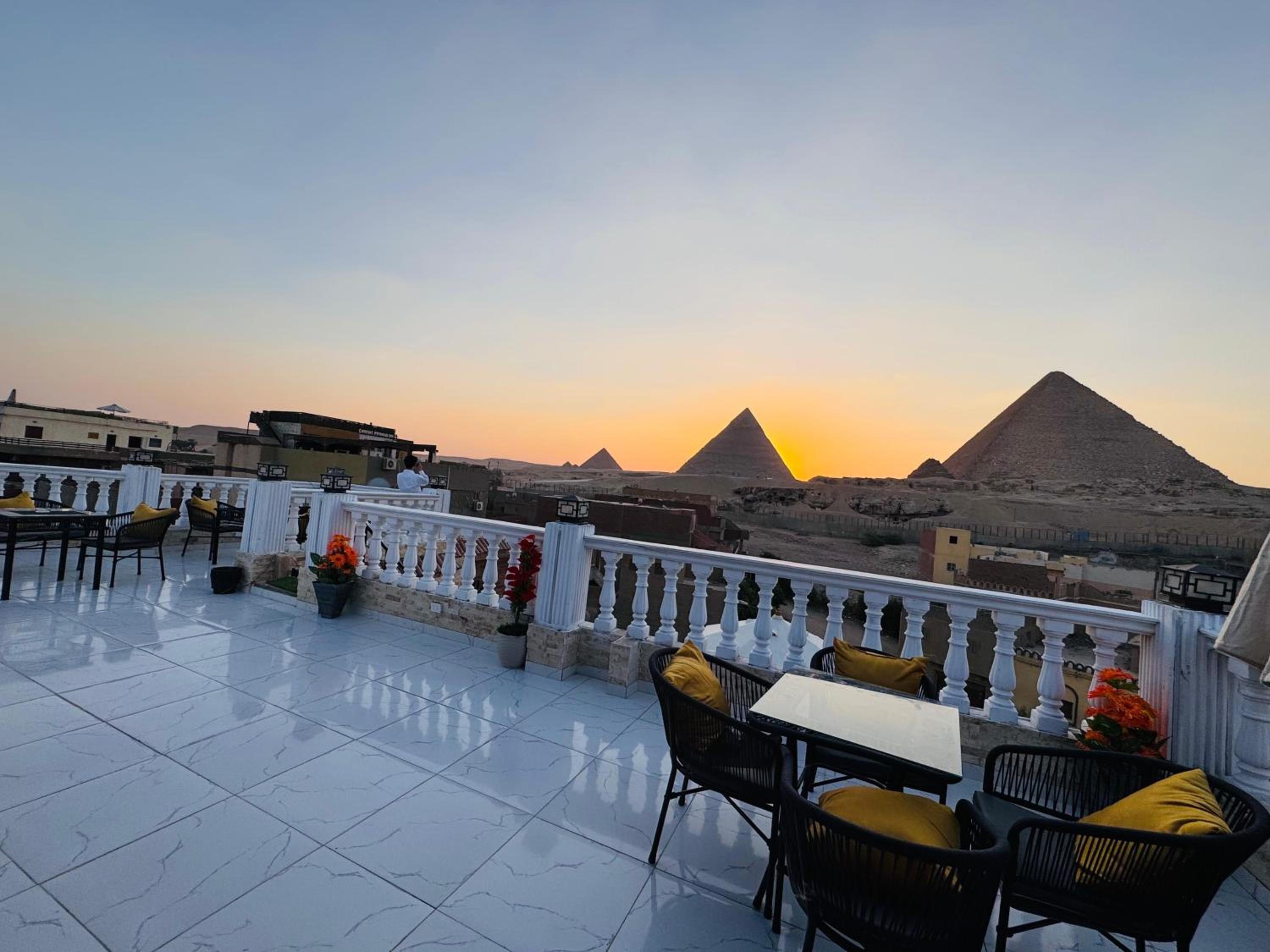 Excellent value for money. Excellent location a few minutes from entrance to pyramids. Lovely view from the rooftop terrace at breakfast and watching sun going down over pyramids. Staff friendly and very helpful doing everything to make our stay enjoyable.