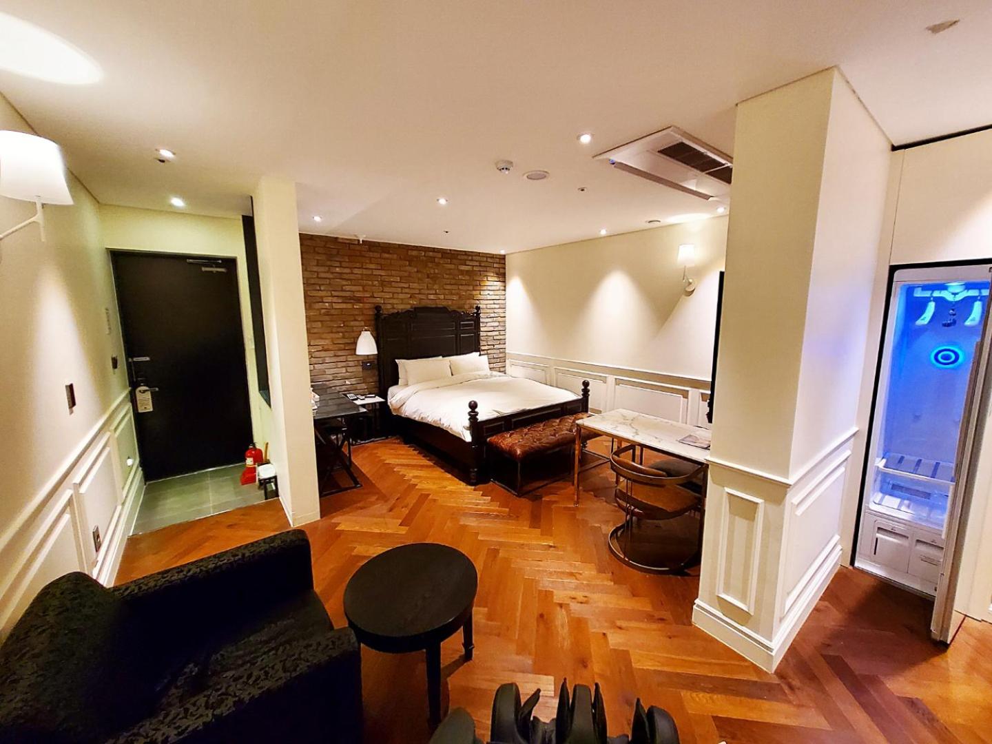 Excellent hotel, very well equipped, with spacious rooms, massage armchair, great water pressure, free welcome drink and snack. Just next to public sauna.