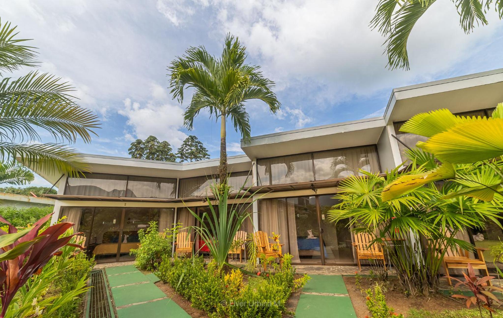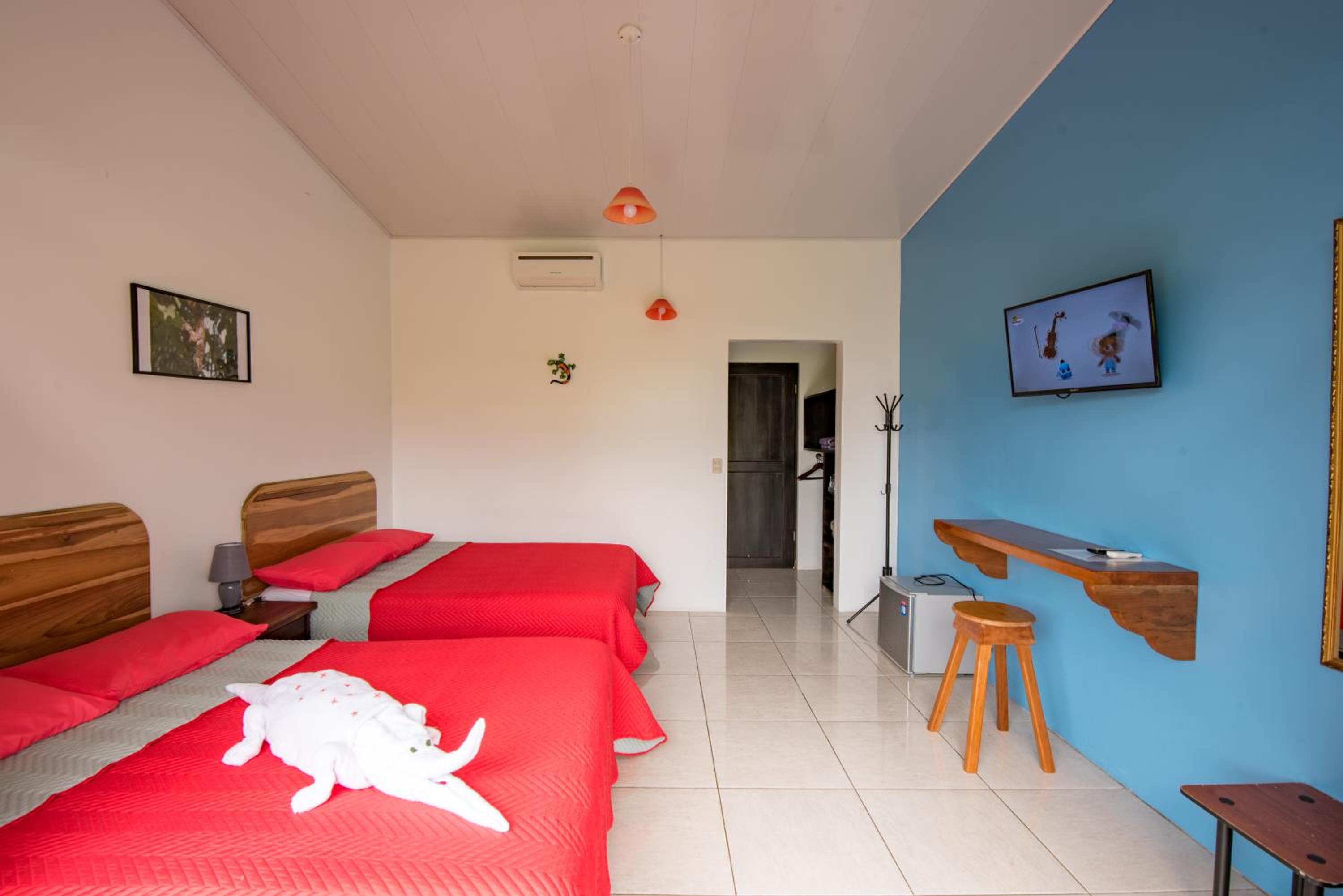 Lovely garden with pool. Comfortable room. Walking distance to centre hiwever still extremely quiet. And sloths on nearby trees 🦥