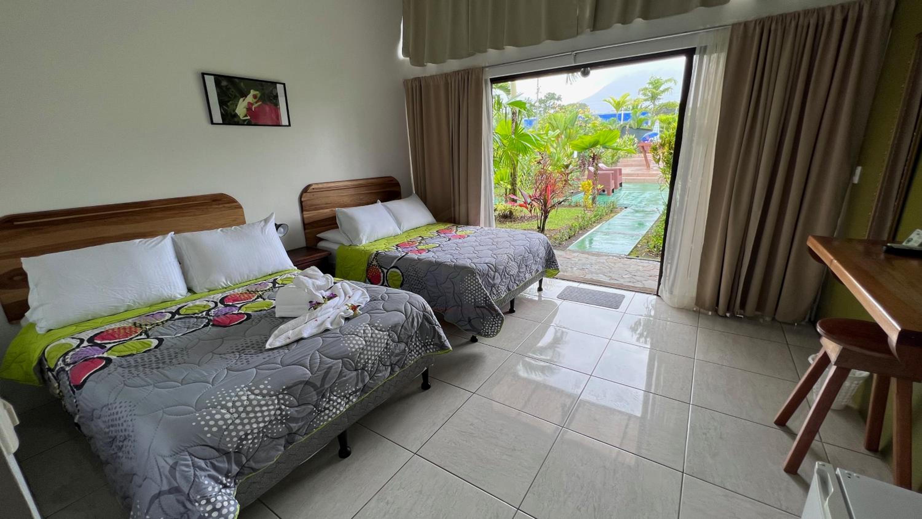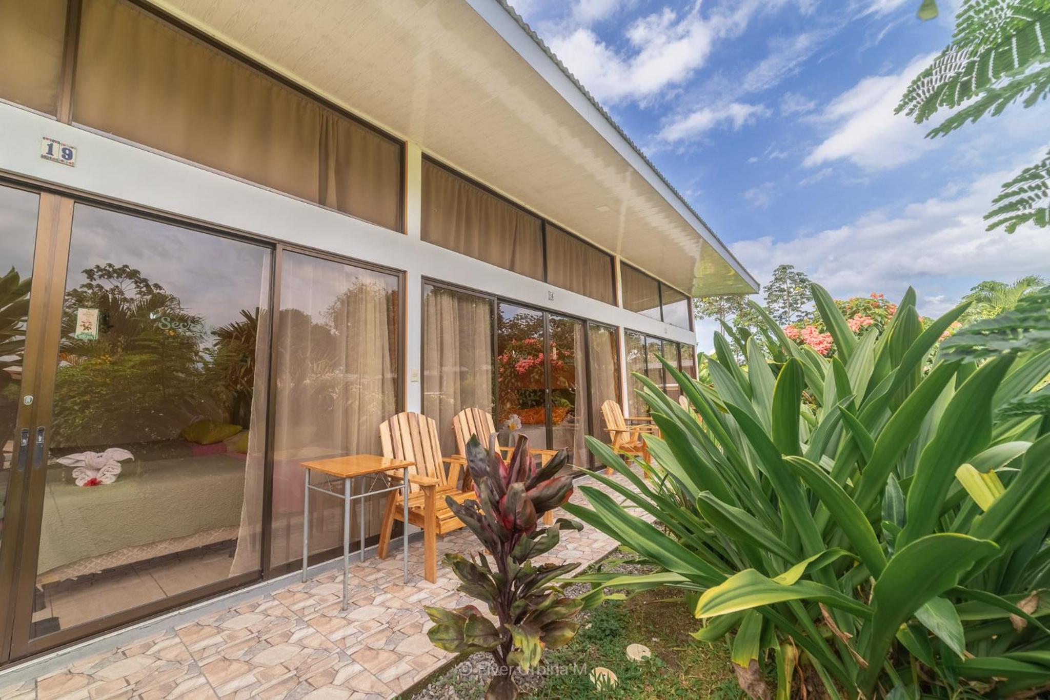 Quiet and luscious green gardens! We even had a great view of the volcano arenal and many sightings. Kitchen staff presented us with three breakfast options.