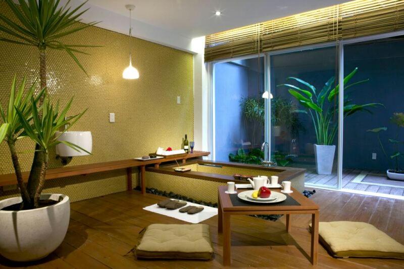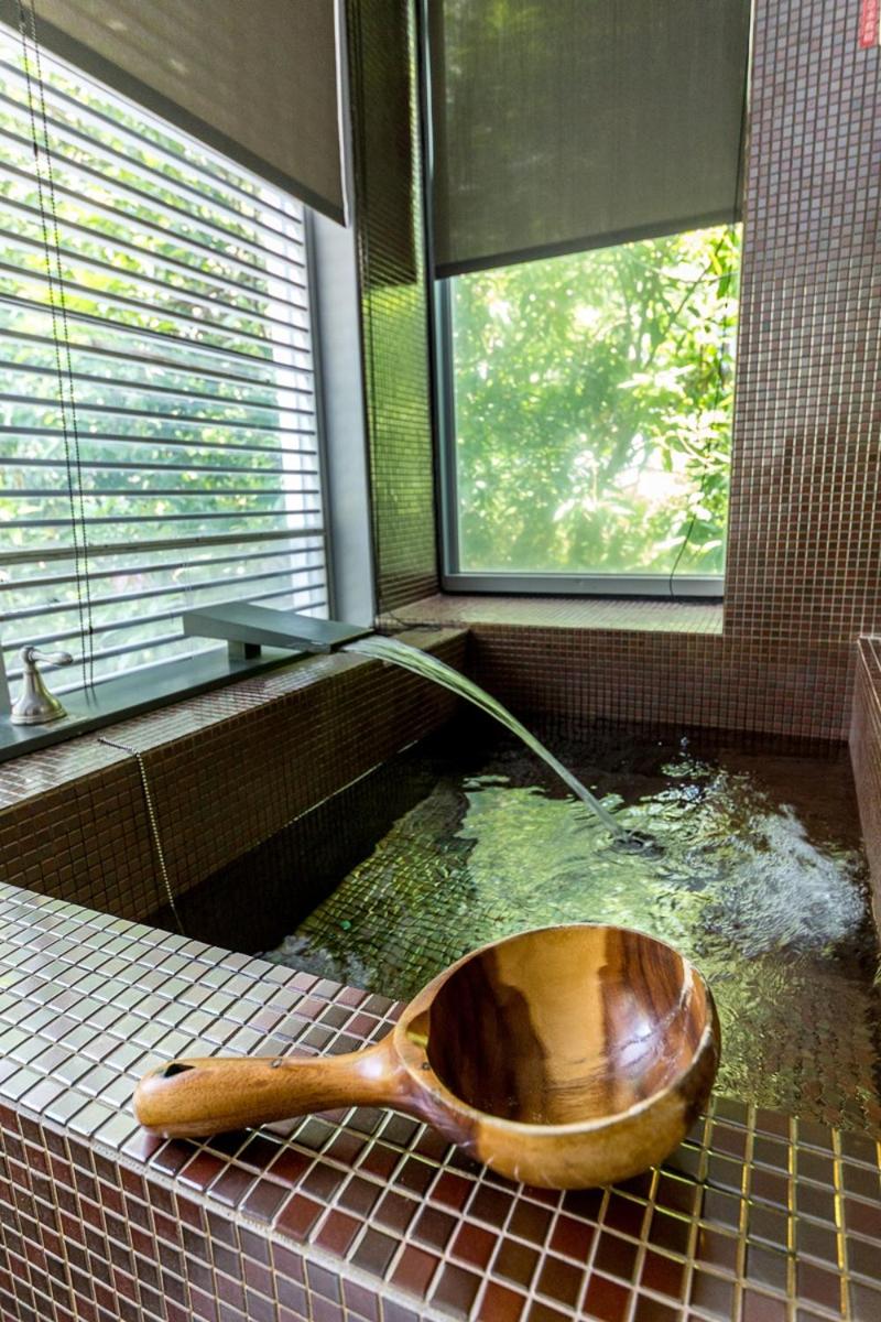Hotel Double One offers a unique experience with its elegant suites, each themed with "Red Roses", "Champagne Gold", or "Aqua Blue". Enjoy free Wi-Fi, a balcony with a personal hot spring bathtub, and stunning views of the greenery.