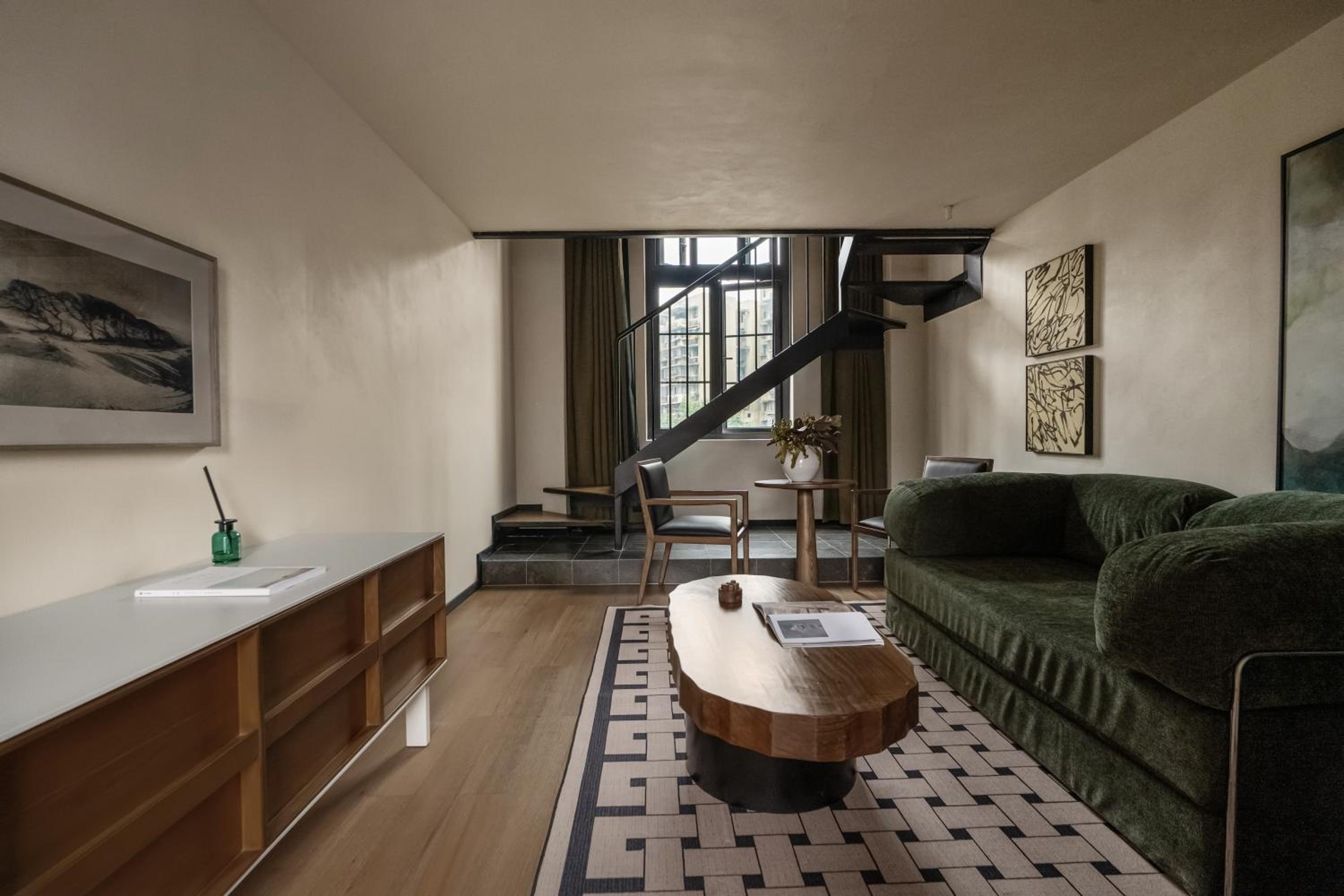 Beautiful room, attentive staff, great location. Loft style room with bed and bath upstairs, with toilet room and living room on lower level. Many shops and restaurants nearby, yet located in a quiet area off the main street. A great view which included a little of the Yangtze river. Excellent coffee provided complementary in the lobby. Highly recommended!
