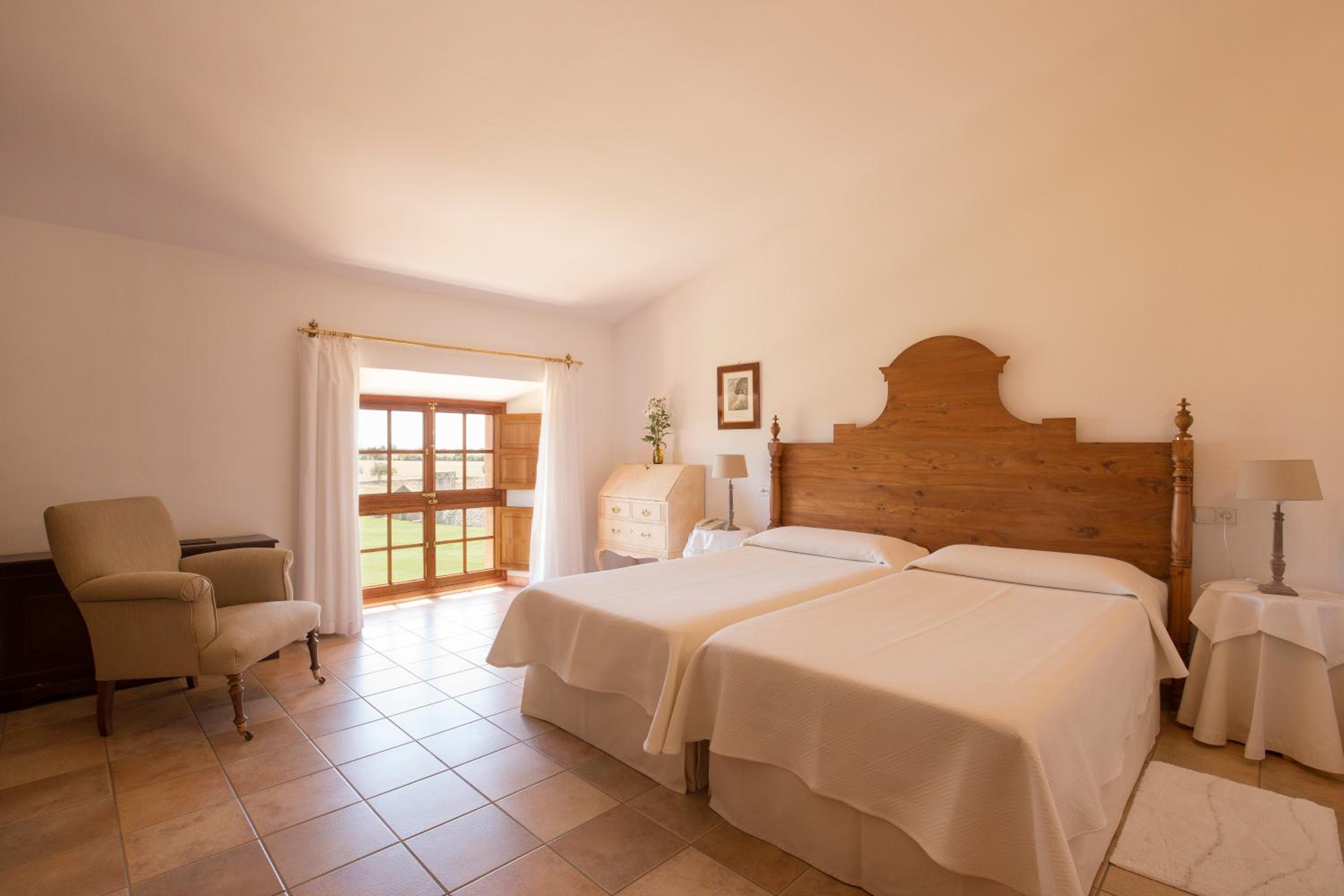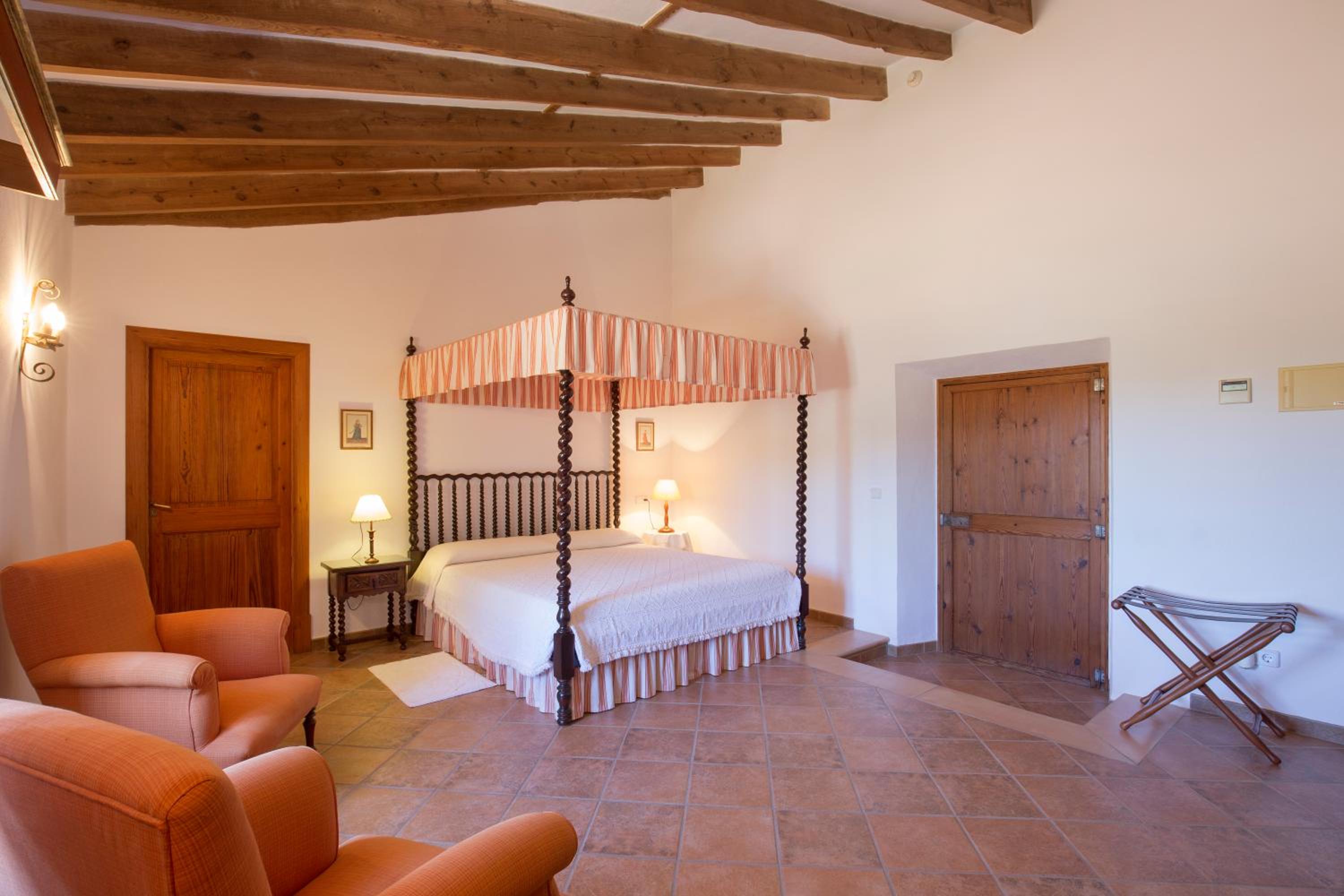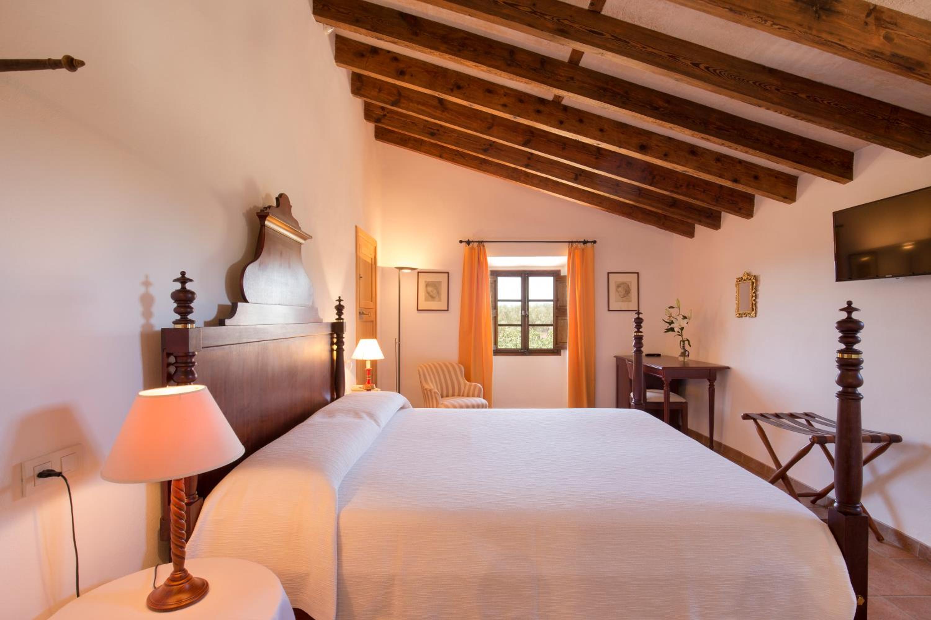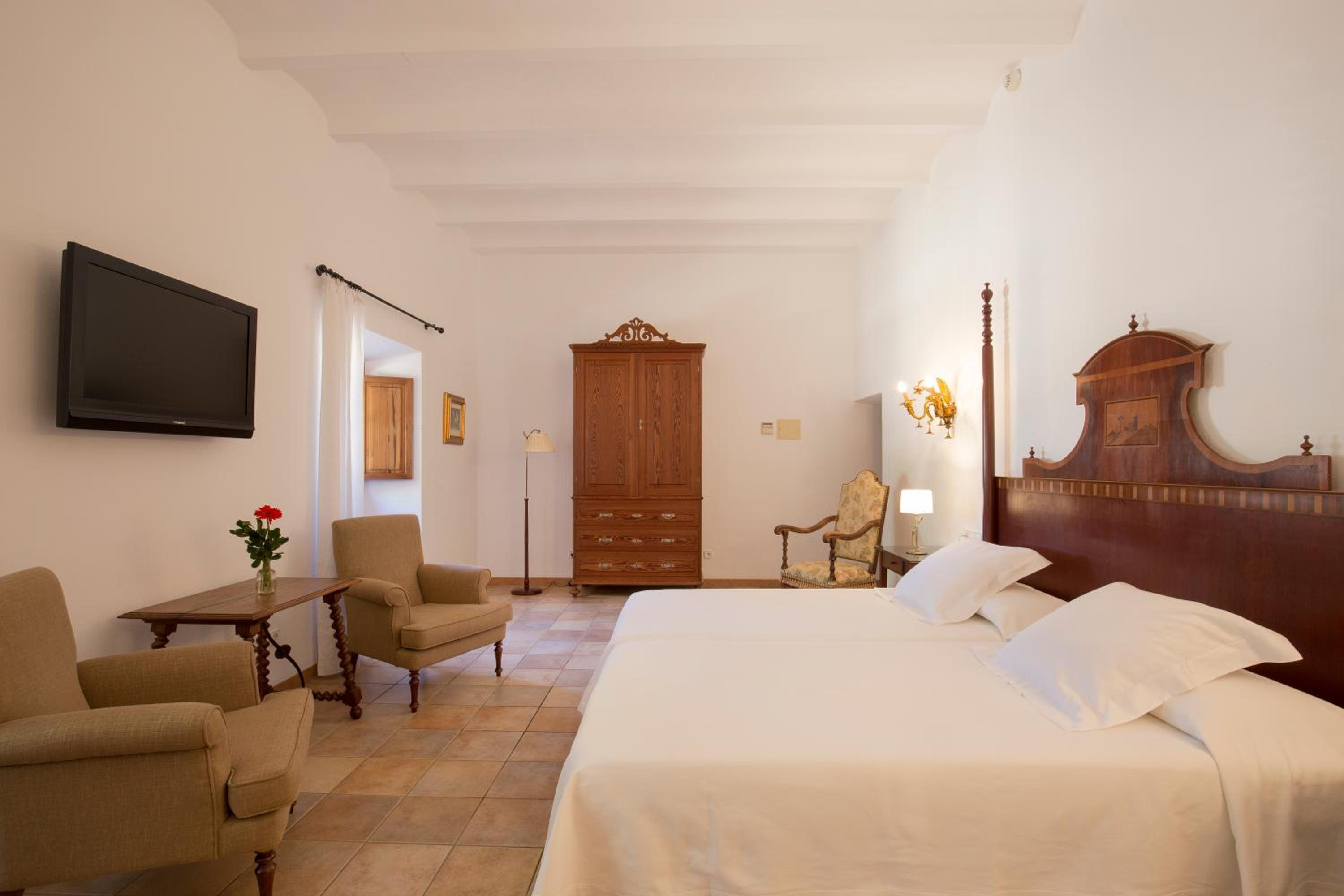 The rooms at Son Cosmet blend stylish décor with 17th-century features, ensuring a comfortable and elegant stay. From large beds to flat-screen TVs, each room is equipped with modern conveniences. Guests can indulge in the private bathrooms, complete with a bathtub, bathrobe, and slippers.