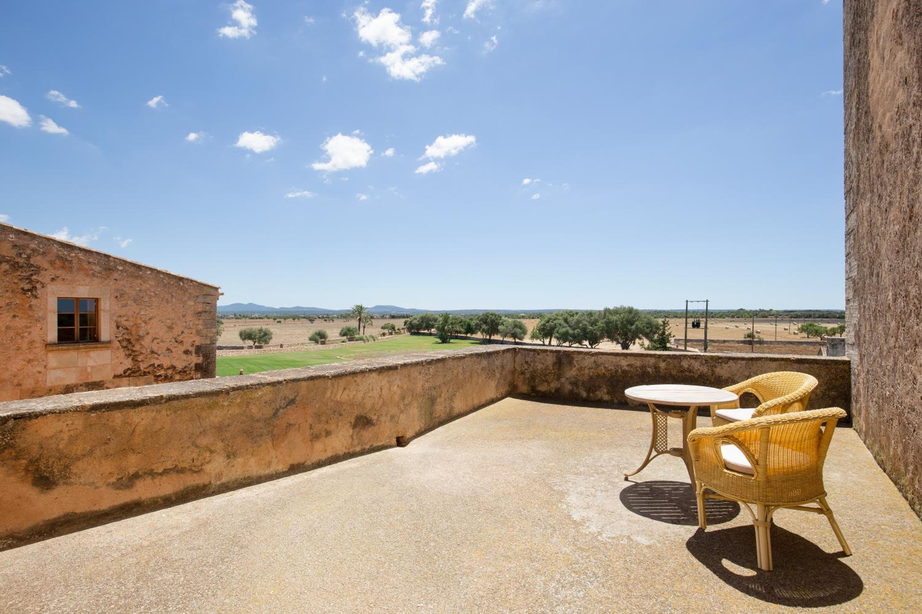 Son Cosmet in southern Mallorca offers more than just a stay; it provides a unique experience with its prehistoric cave, medieval monument, and extensive gardens. The picturesque terrace overlooks ponds and pools, creating a tranquil atmosphere for guests to enjoy.