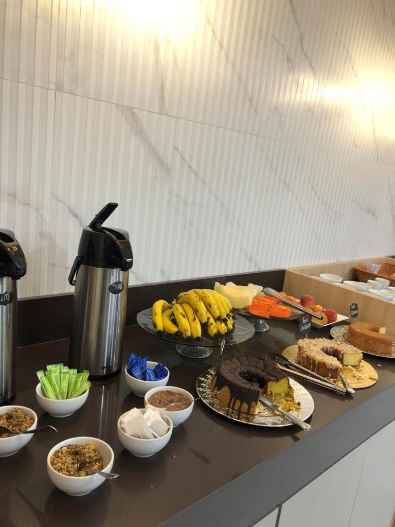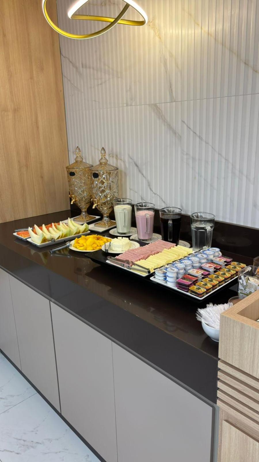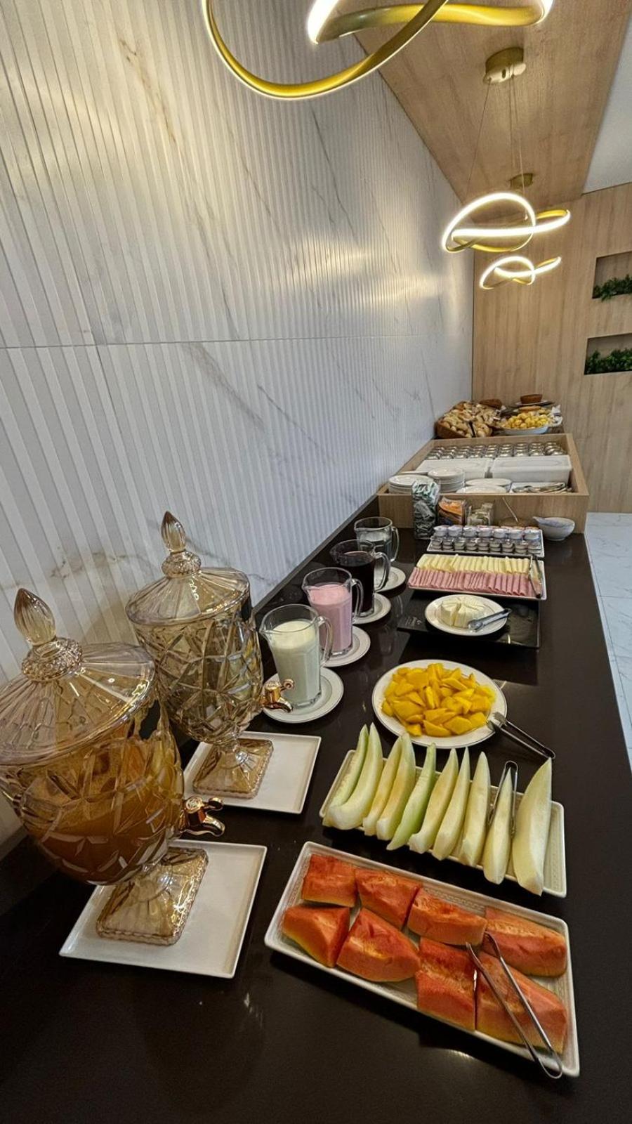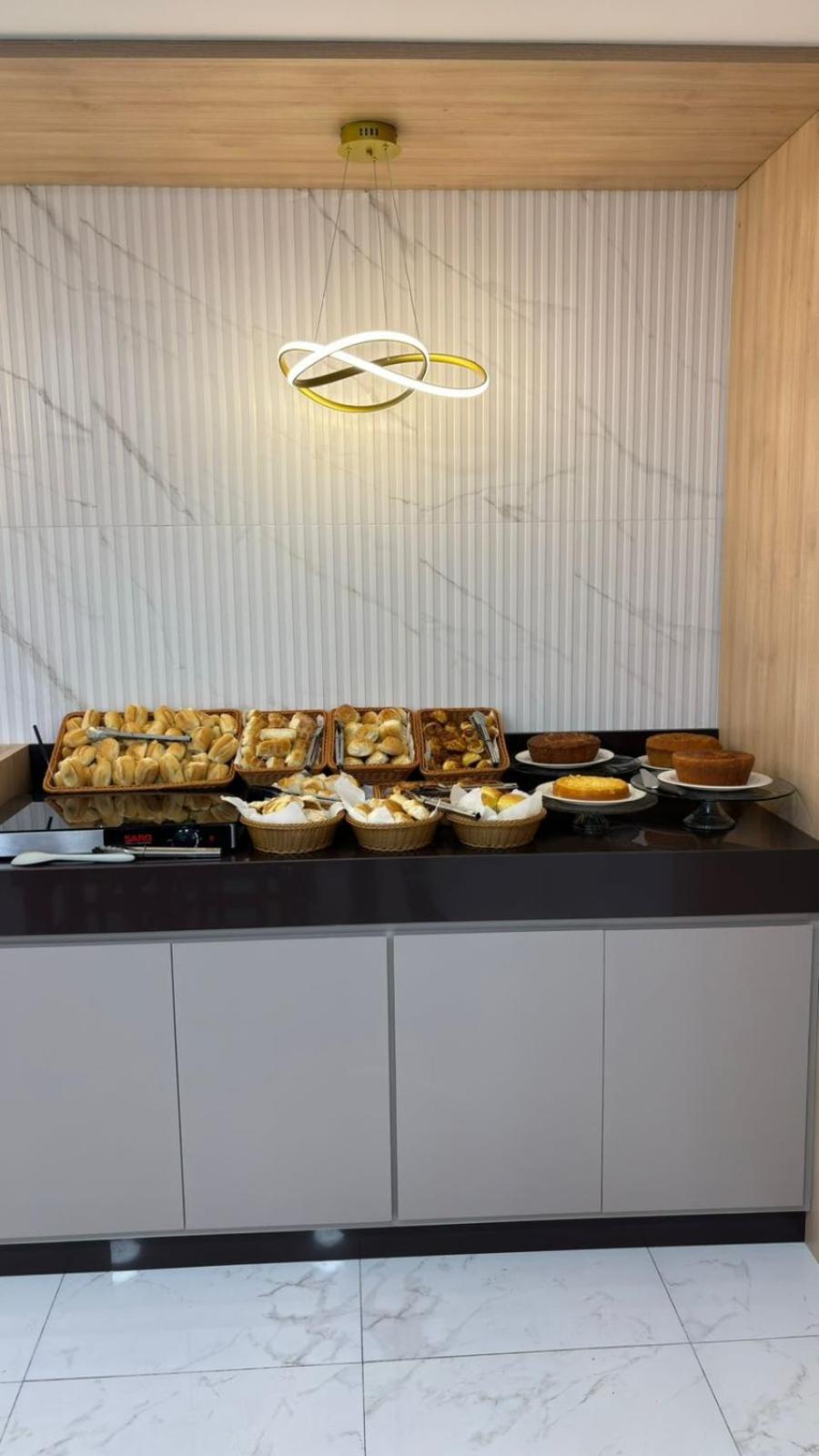 O café da manhã muito bom, diversos bolos que estavam muito bons. Diversos pães. Só um ponto que poderia melhorar um pouco é nas opções de acompanhamento. Mas já é muito bom o café da manhã.