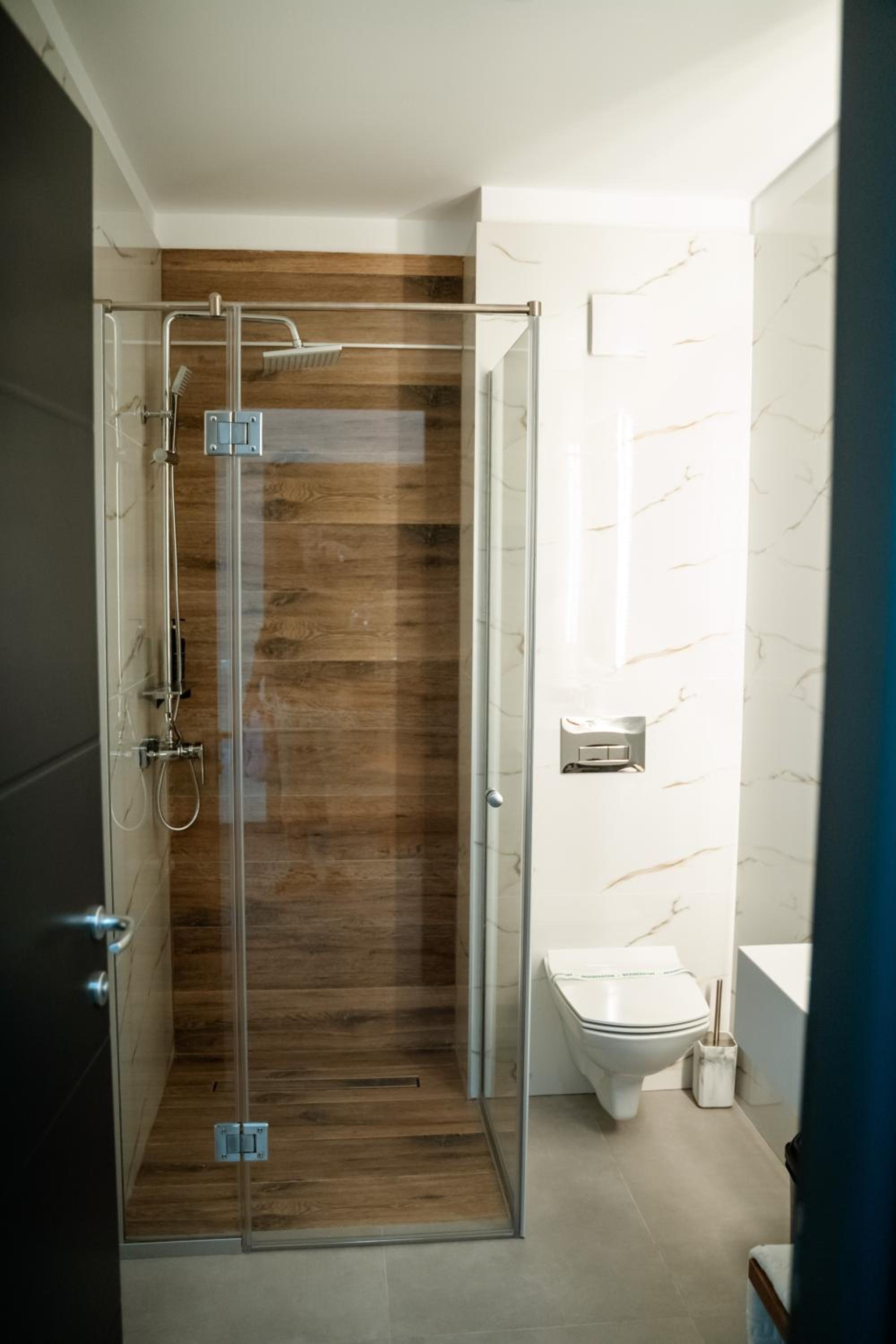 Ușa dușului este, de asemenea prost gândită. Necesită 10-20 minute pentru a șterge apa strecurată pe sub ușă spre exterior.
