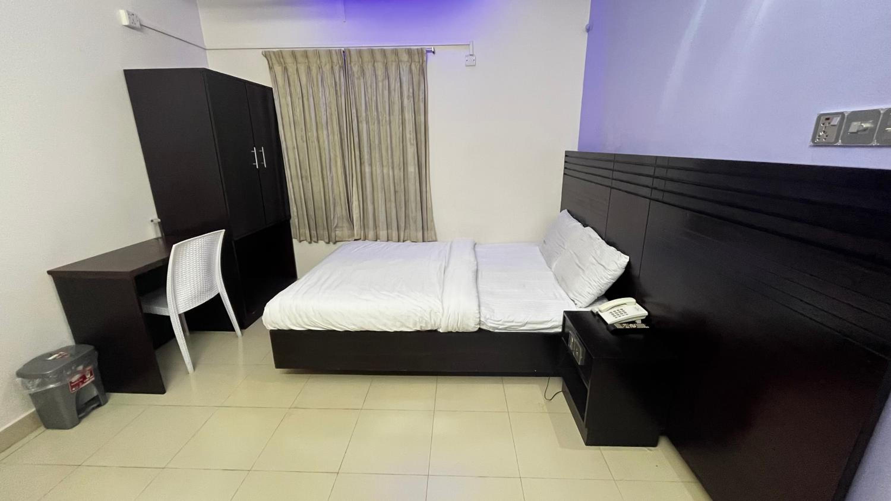 No room service. The intercom phone didn’t work. Balcony was just a show. No usable space. The room's floor has no tiles. No quilt on the bed just a mattress.