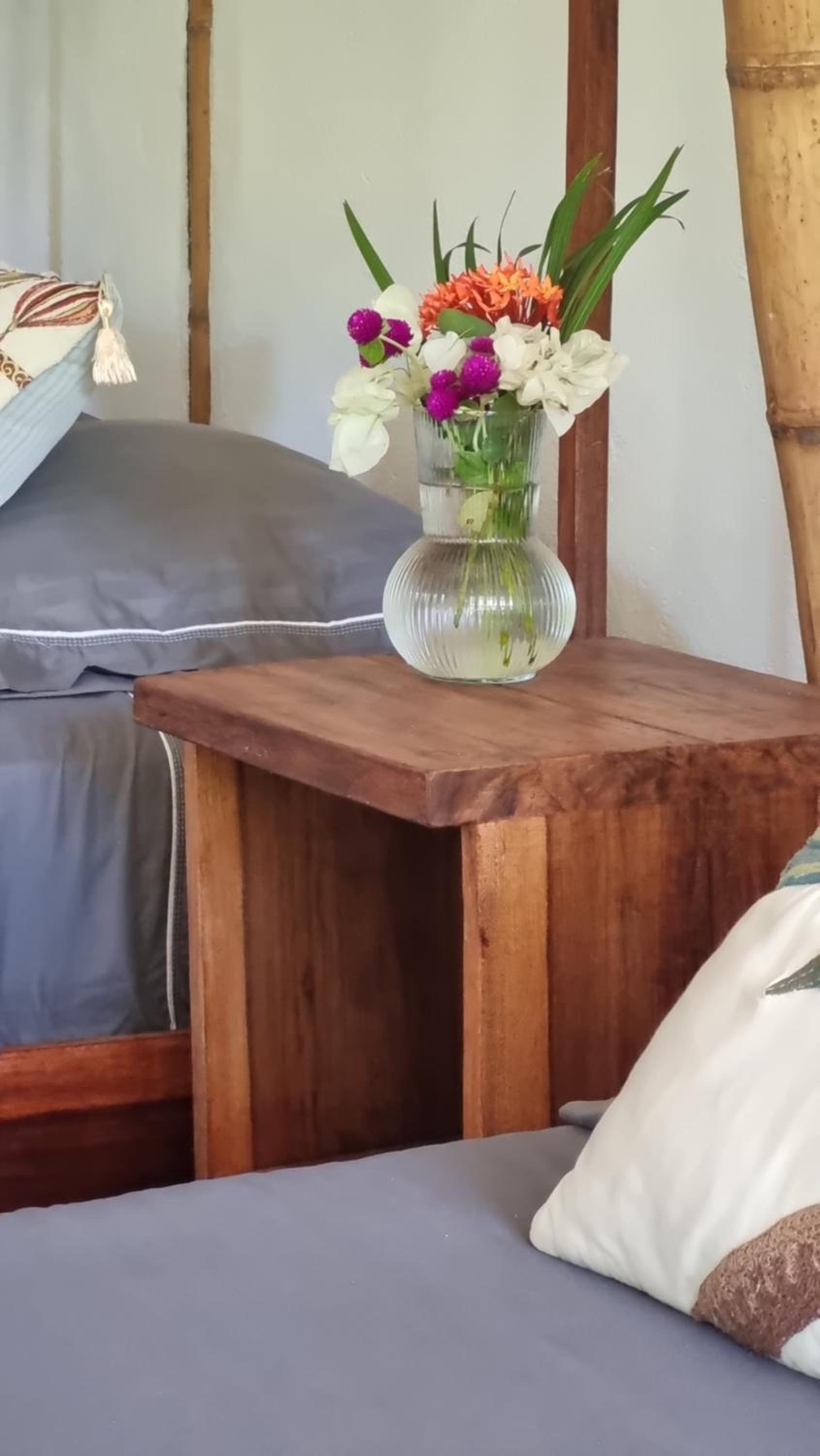 Da das Baumhaus nur Fliegengitter und keine Fenster hat, kann es nachts etwas laut sein. Das Bett war leider etwas unbequem.