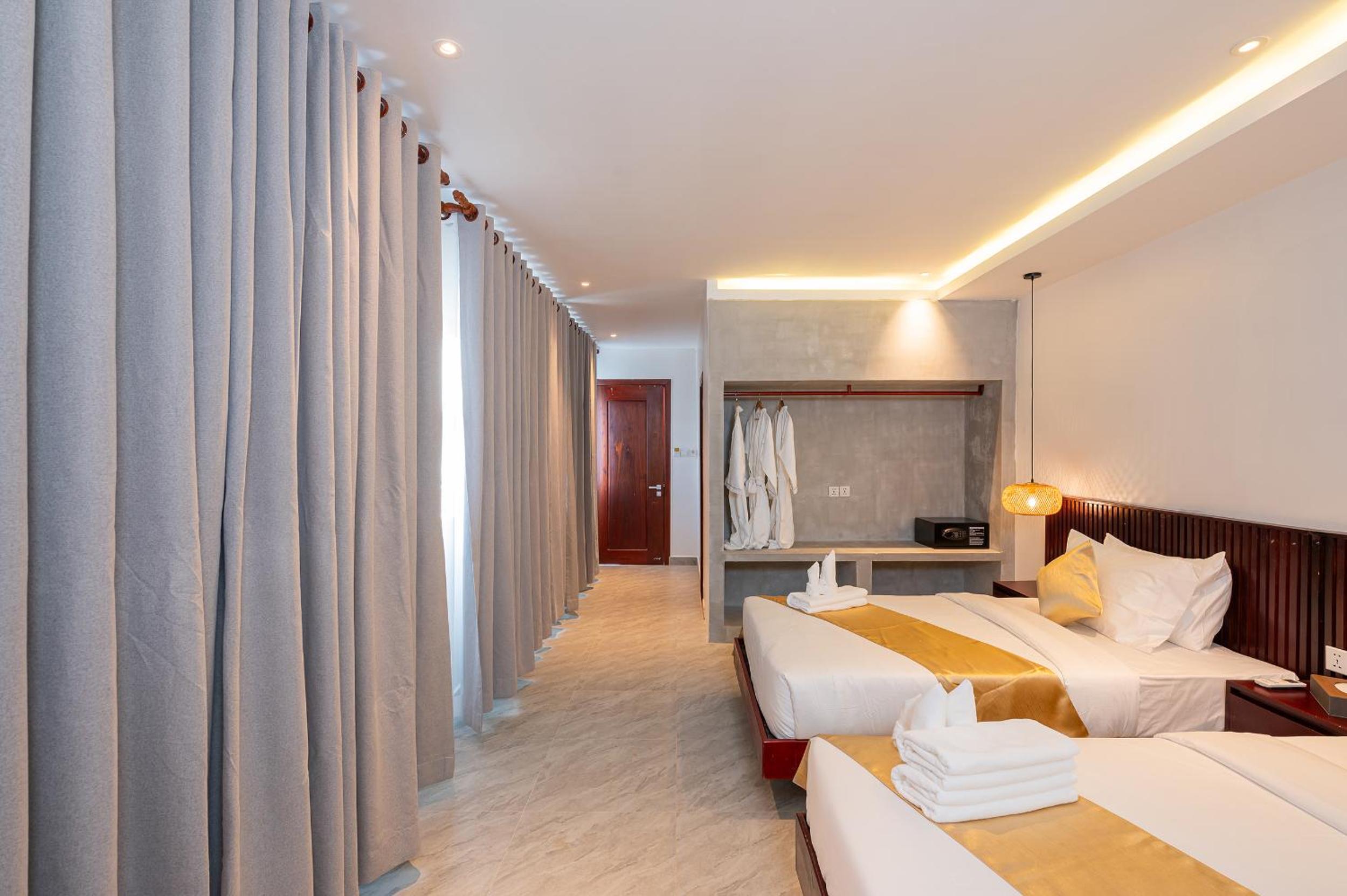 The air-conditioned rooms at Serenity Suites d'Angkor offer free WiFi, private bathrooms, and stunning river views. Each room is equipped with a desk, safety deposit box, and elegant bed linens.