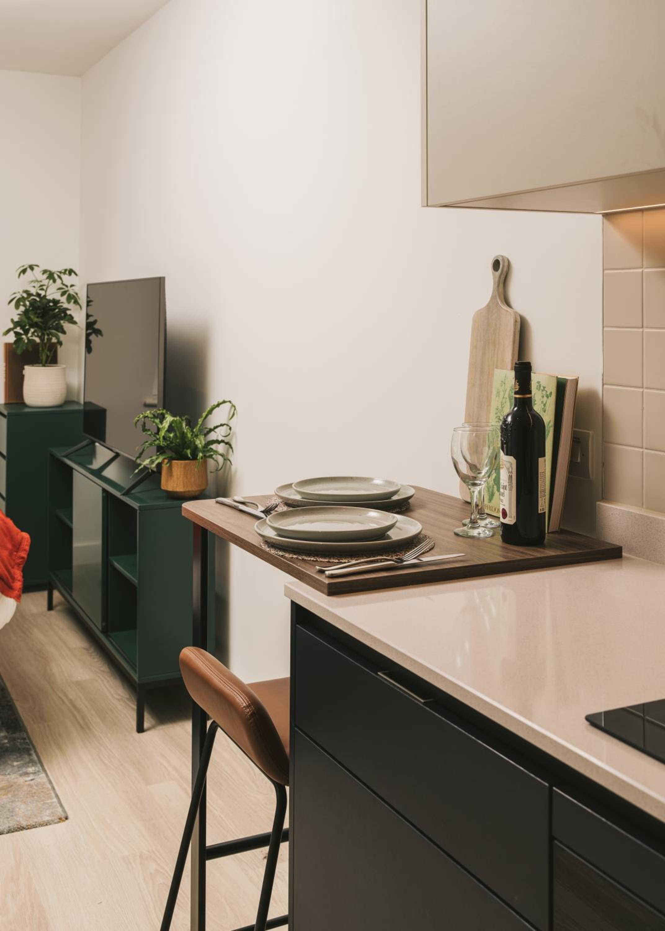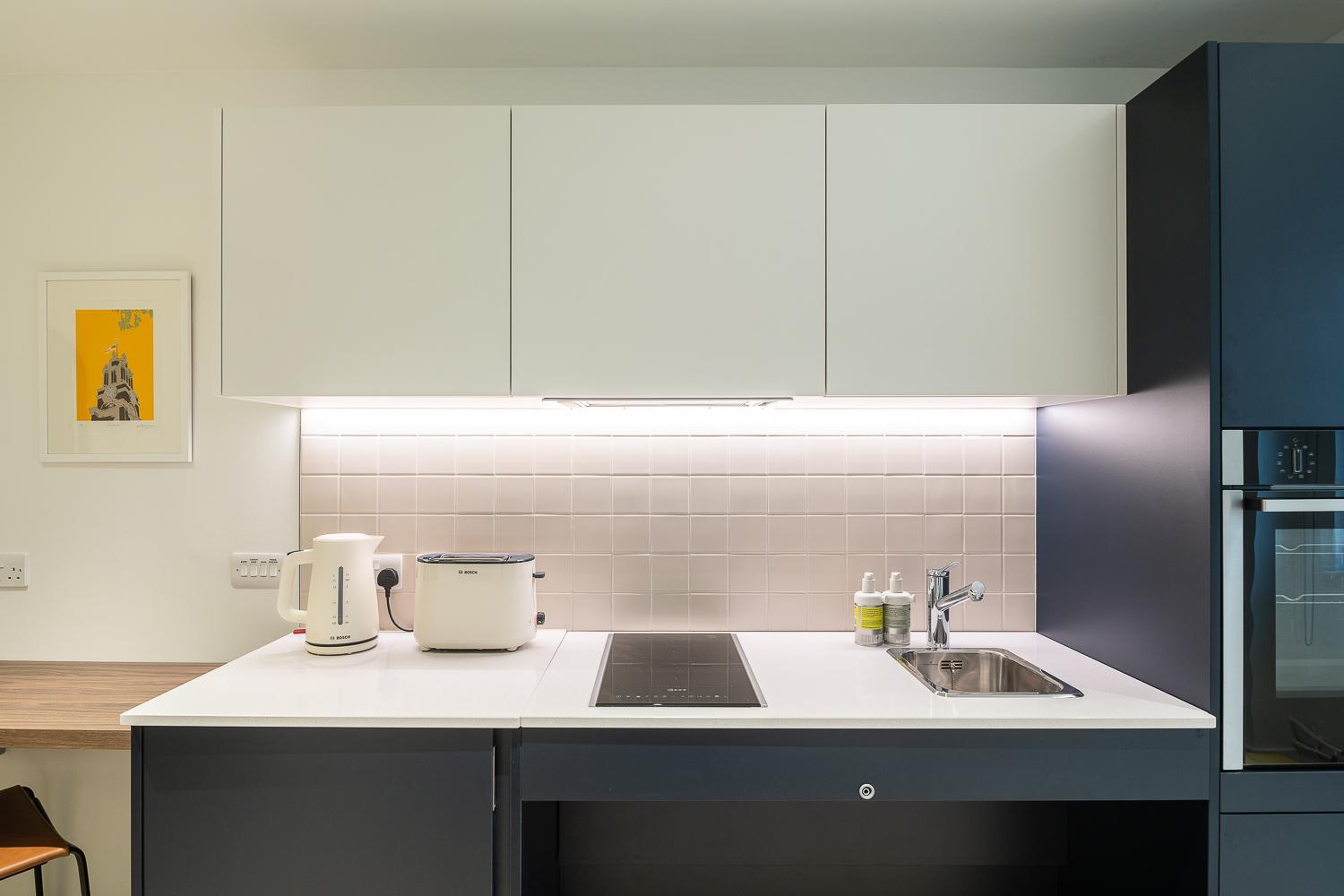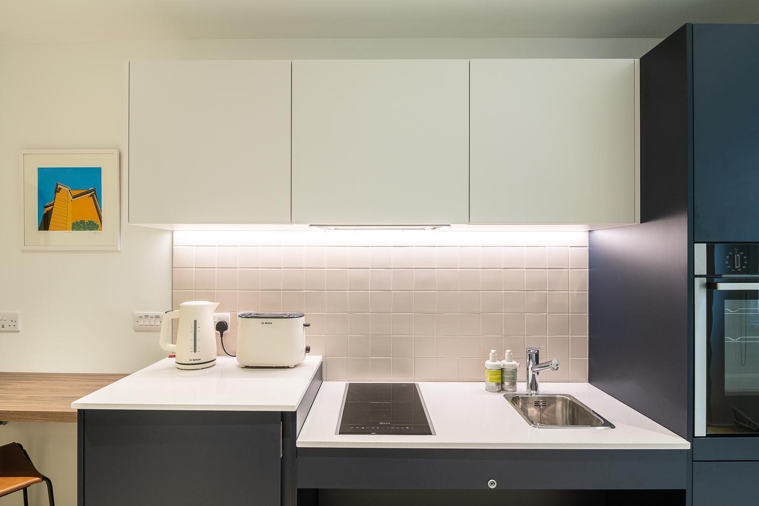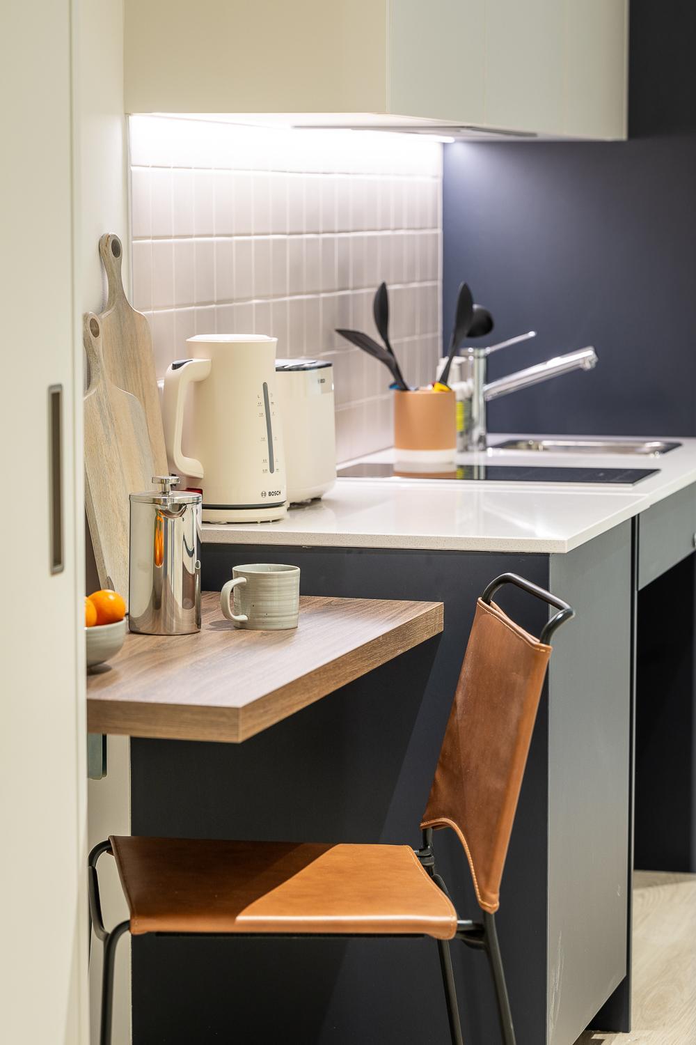The studio made great use of a small space, providing a fully equipped kitchen with all the appliances, cookware, crockery, and utensils you'd need. So you can eat out, bring back takeaway or cook for yourself if you prefer. There was even bin bags, dishwash detergent, cloths and a teatowel. So no need to buy any cleaning products for a short stay.