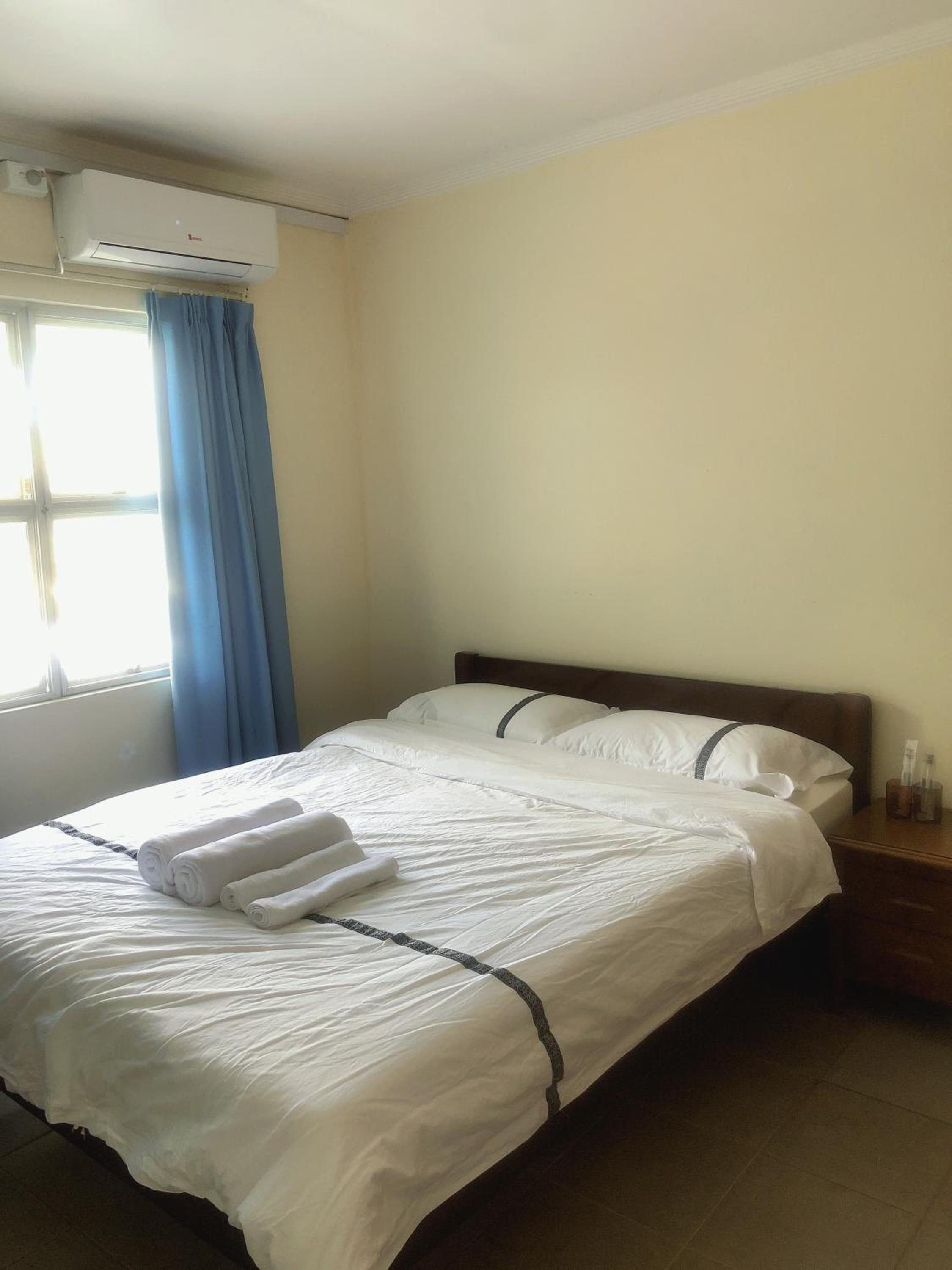 They did not clean the room before I checked in. The hairs were everywhere, I called the owner to get someone to clean the place but never happened. It wasted my money for international call. The lock to balcony doesn’t work so I could not lock the door. The shower was leaking water , rubbish like drinking bottle, surgery mush etc in the wardrobe . Stains on the wall, bathroom tiles , sails etc are very dirty. Stains on bed sheets and quilt so I slept with cloth on and did not use their bedding. The mattress on bed was hard like brick.