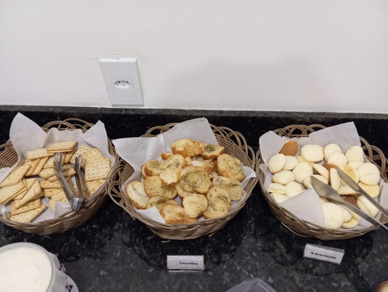 Café da manhã simples mas tinha o essencial.