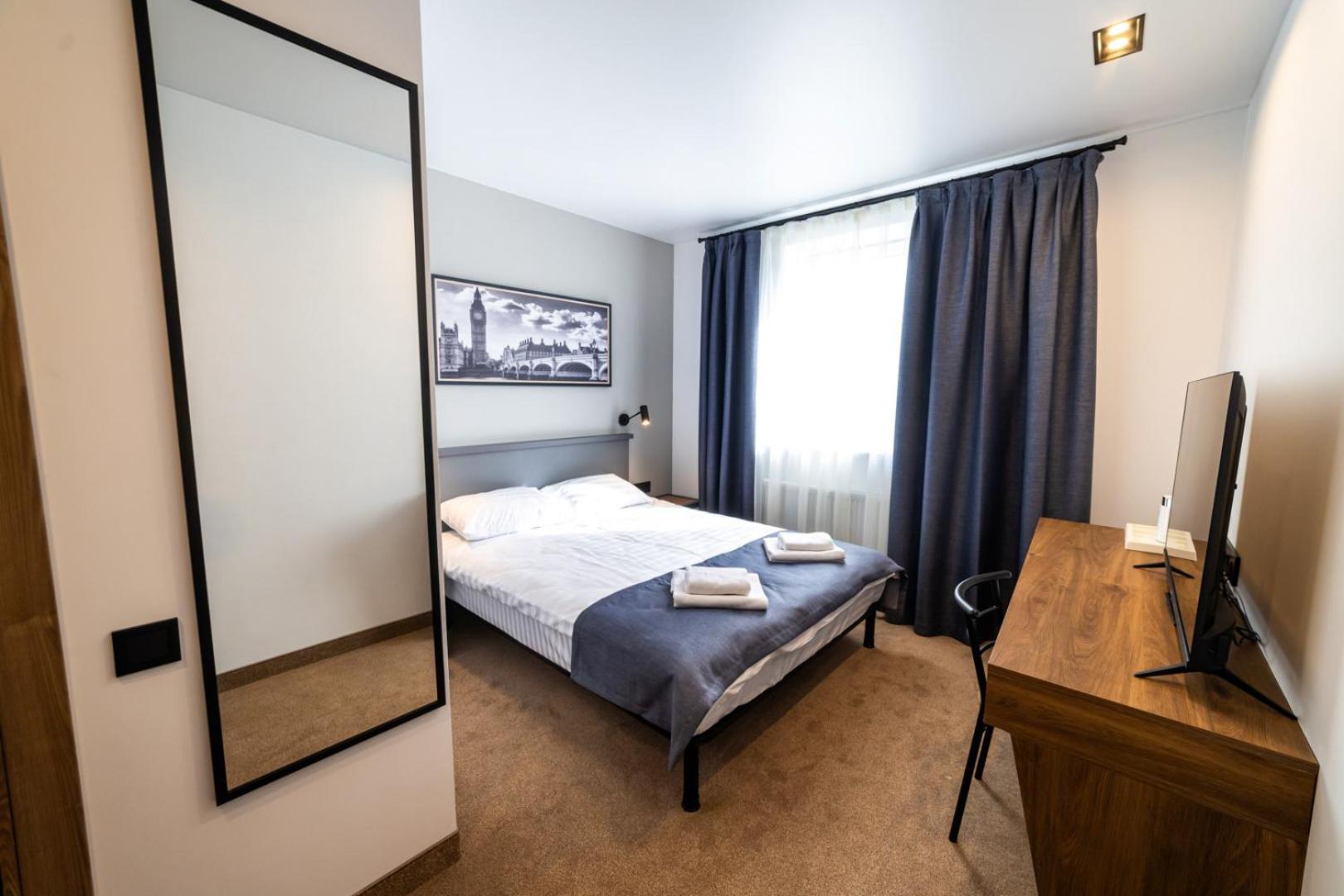 Затишна кімната та зручне ліжко. Простора ванна кімната. Є чайник в кімнаті.