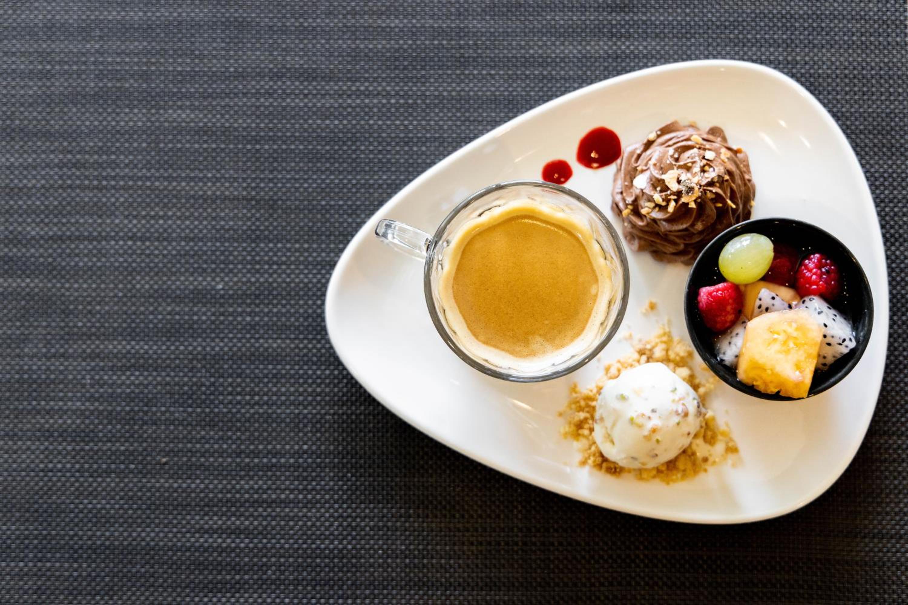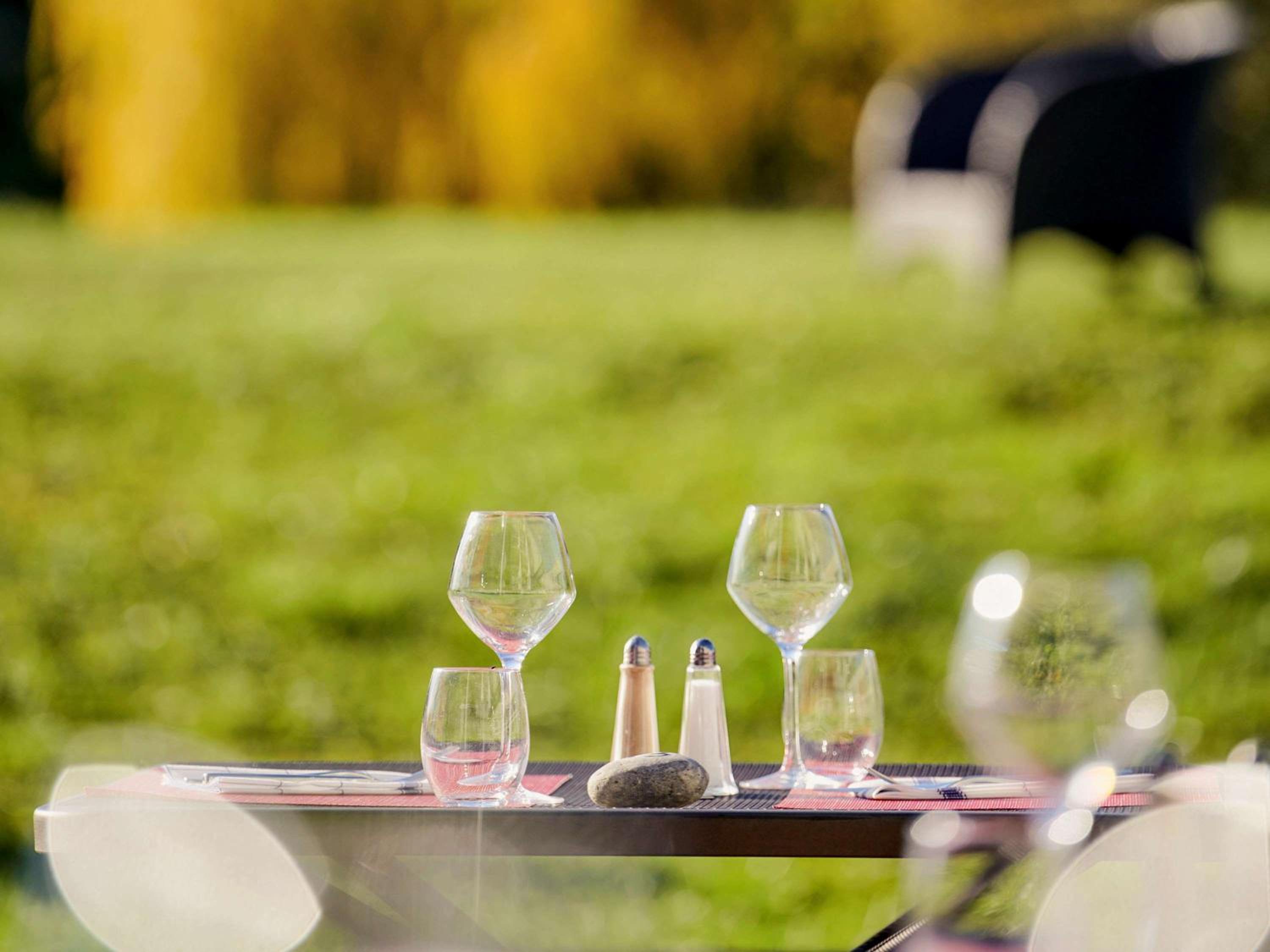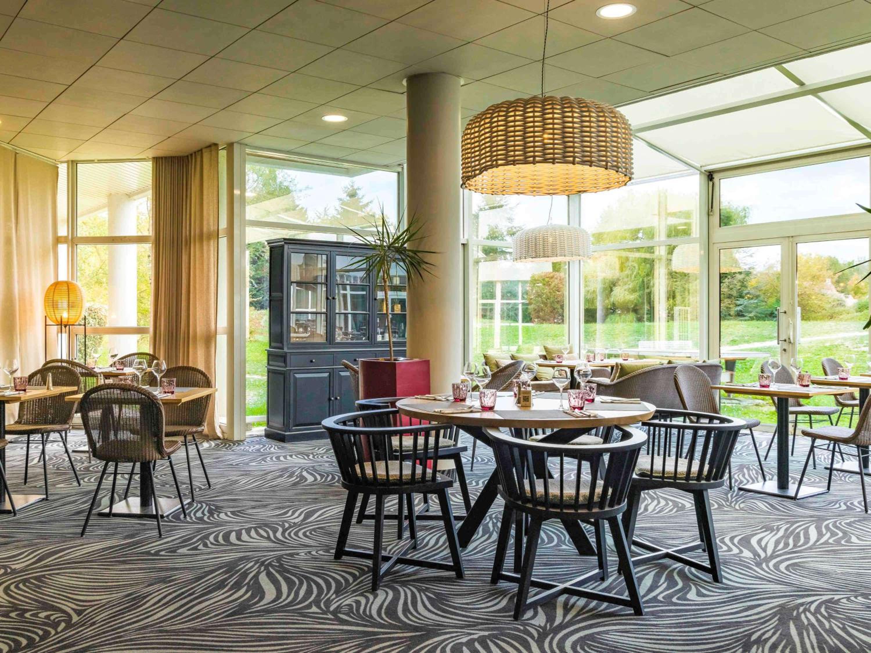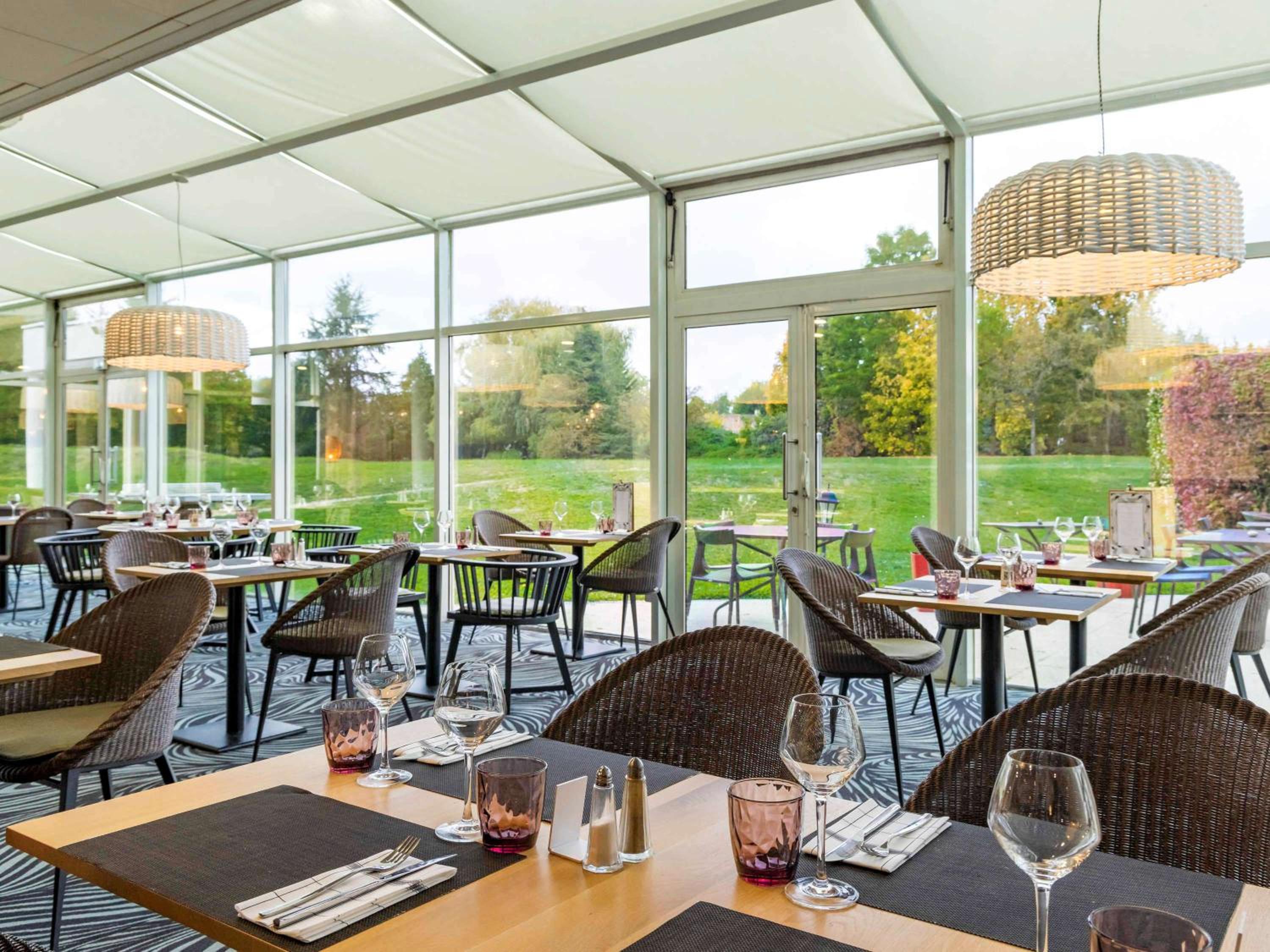 Indulge in traditional French cuisine at the restaurant with a terrace overlooking the golf course. Unwind at the bar while enjoying panoramic views.