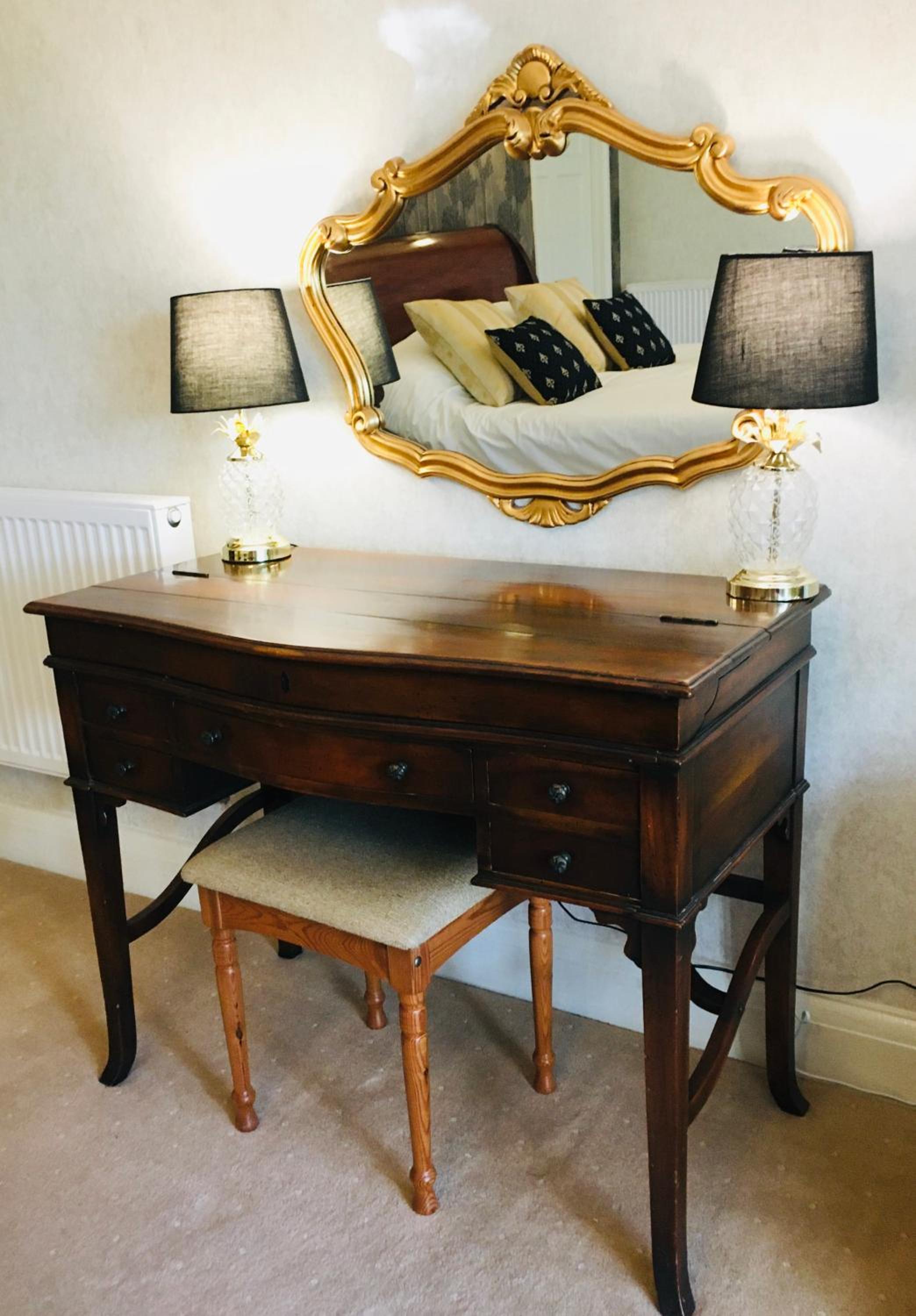 Beautiful location and setting in the woods. Very comfortable bed and well appointed suite with lovely large clean bathroom with shower over. Separate dressing room with refrigerator and ironing board. Unfortunately no iron.
