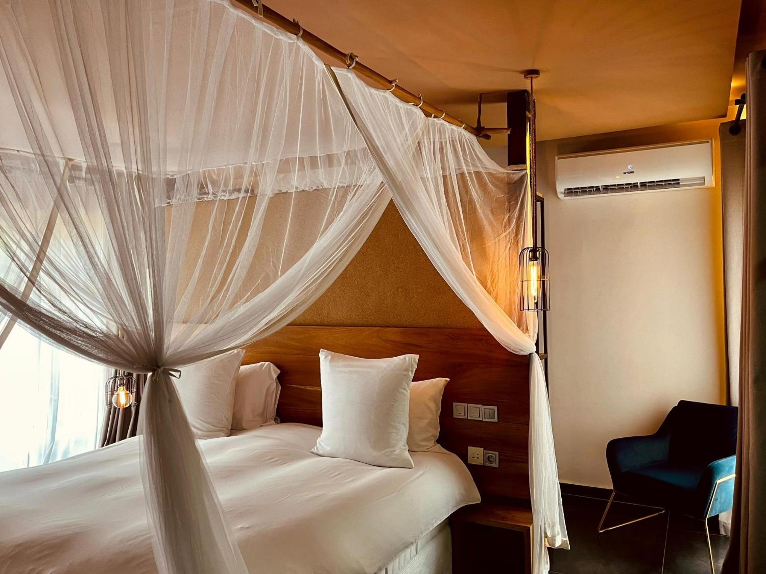 Experience comfort in every corner with air-conditioned rooms equipped with modern conveniences like a coffee machine, fridge, flat-screen TV, and a private bathroom.