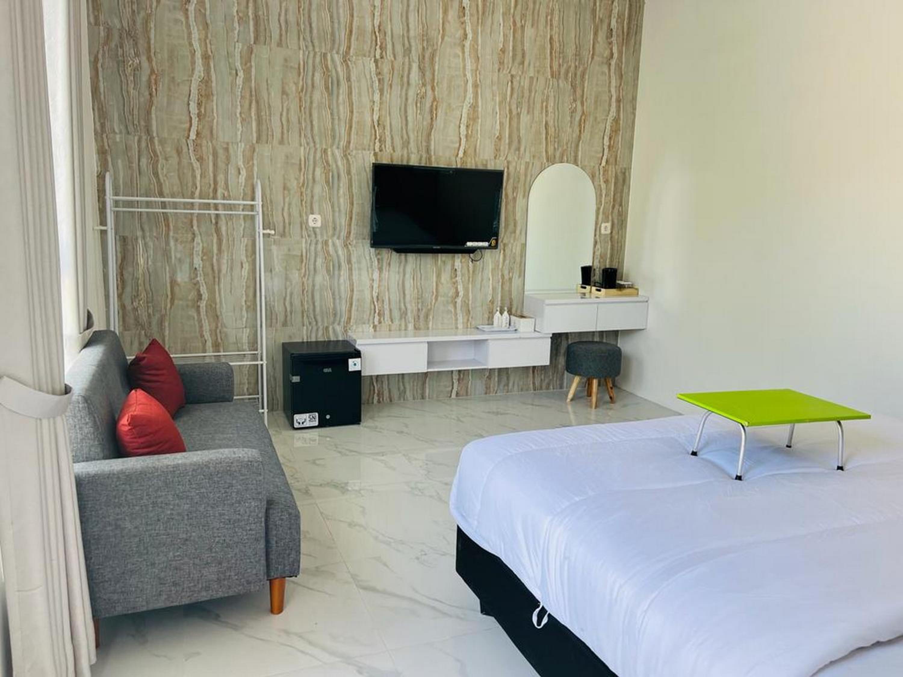 The hotel is in a really nice, new building. The family room was much bigger than the usual size we met on our trip in Java and they are equipped with bed, table, chair, wardrobe. They have smart tv which is a plus because of the children.
