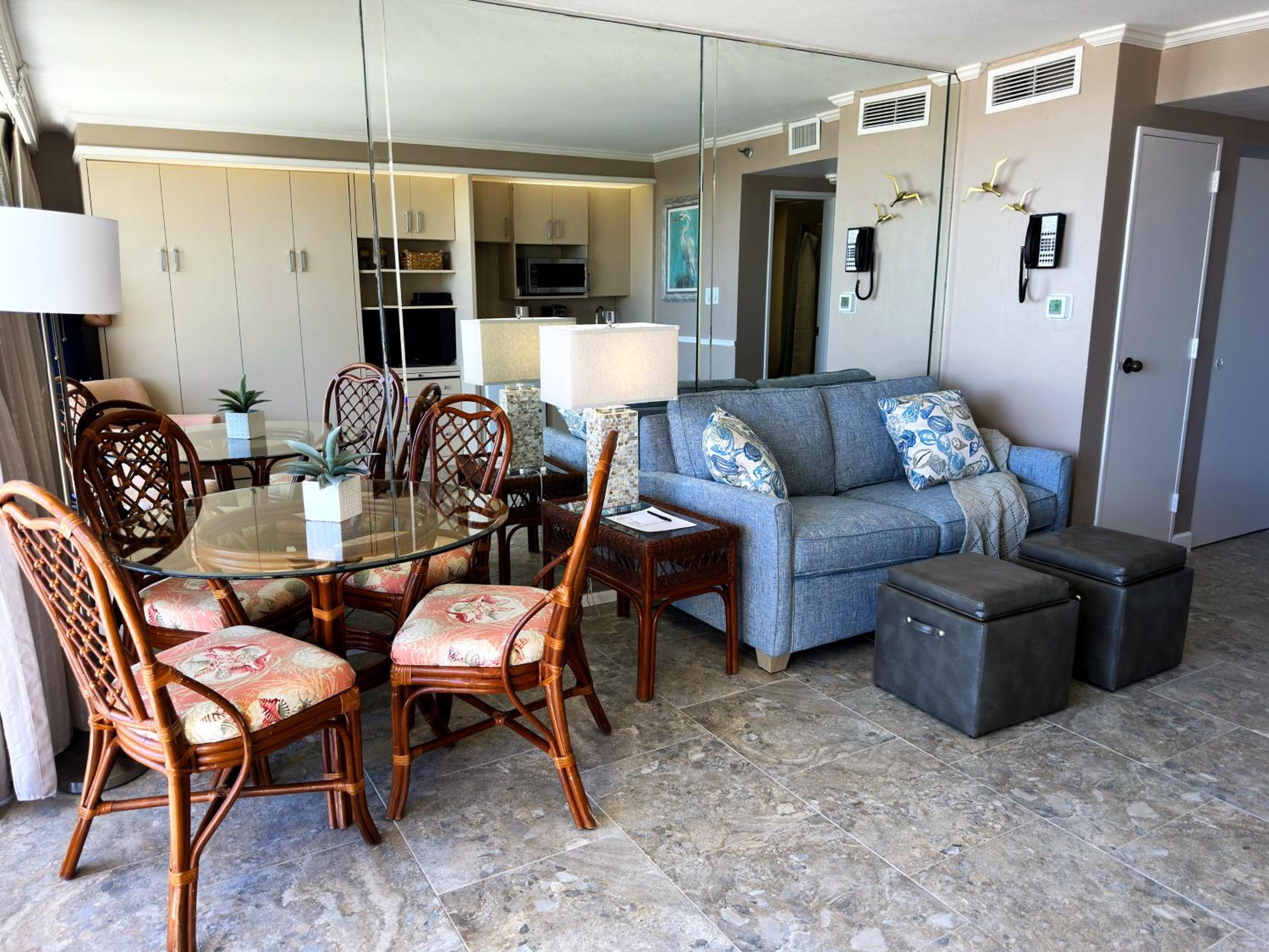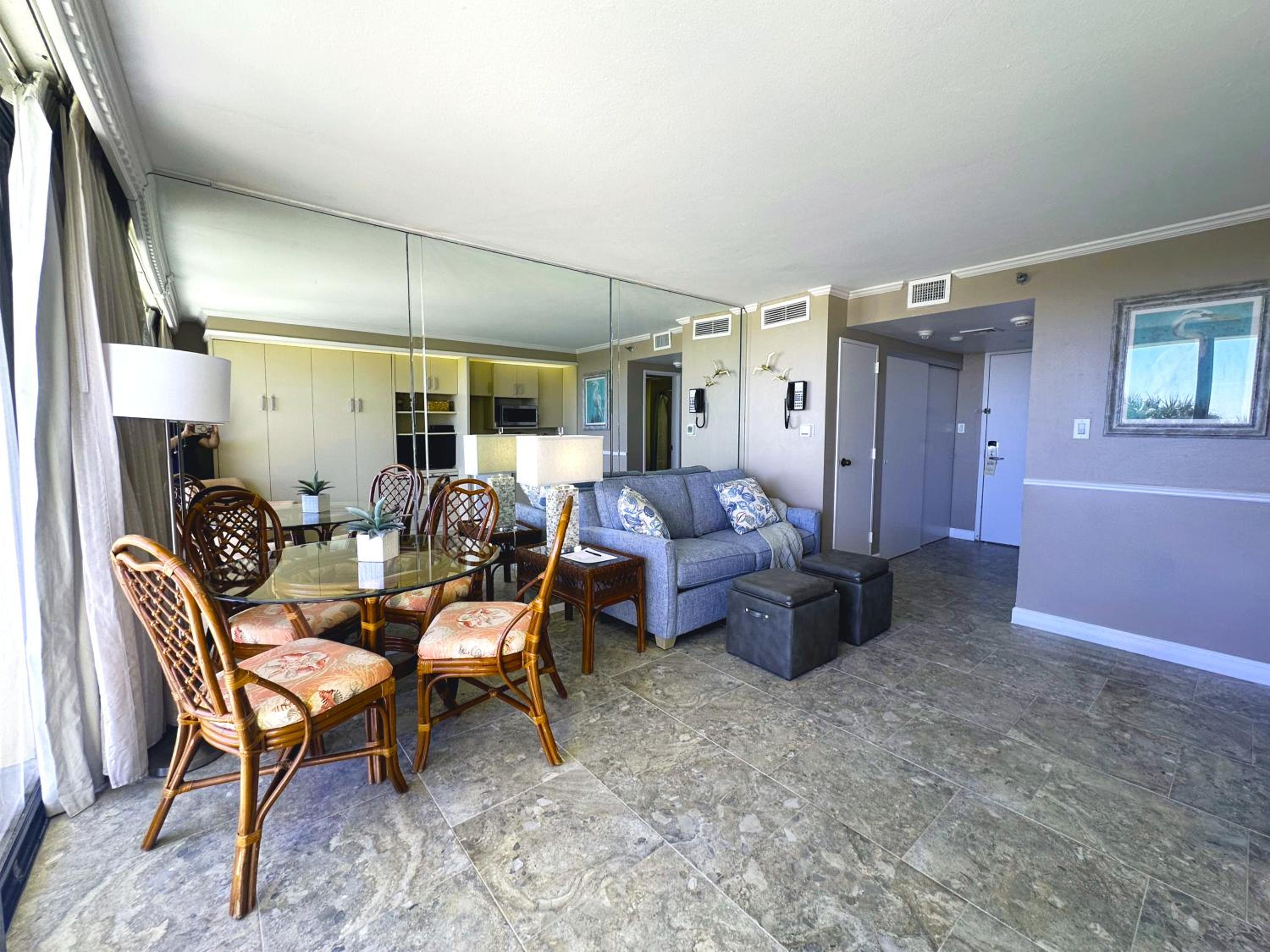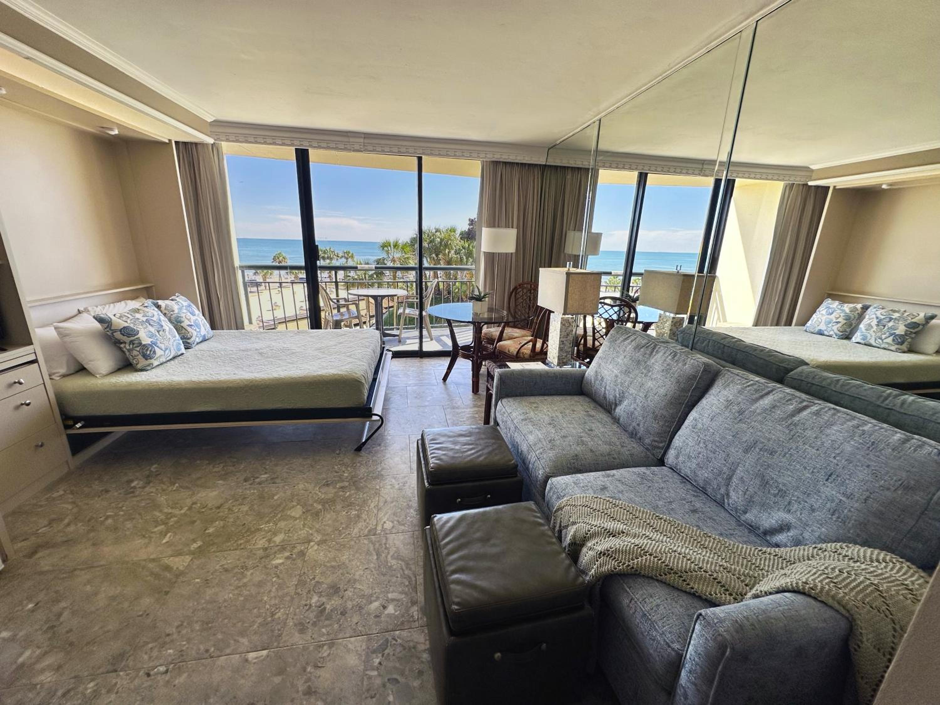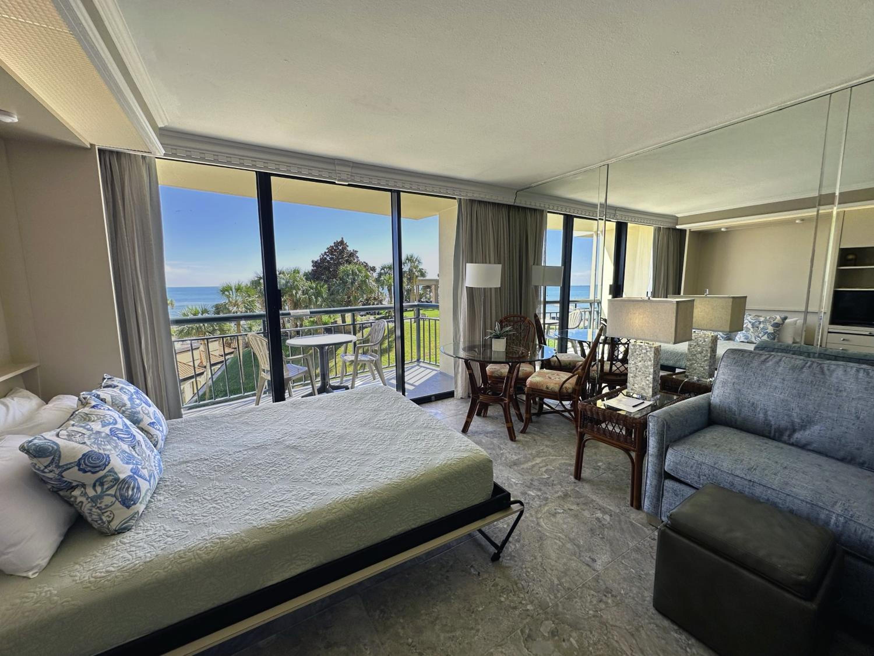 The picture of the room on booking.com did not match the room we stayed in. Instead of a queen on the floor, like in the picture, we had a pull down (out of the wall bed) which was weird. Kind of felt like we were on the dirtier side of the resort. Felt more like an older hotel that maybe could have gone for $175 a night vs. the $400 I paid. Room was much smaller than expected. Didn't have daily cleaning services. Place was overpriced in my opinion because I thought we were paying to stay on the resort side. Will not stay on that side of the resort again.