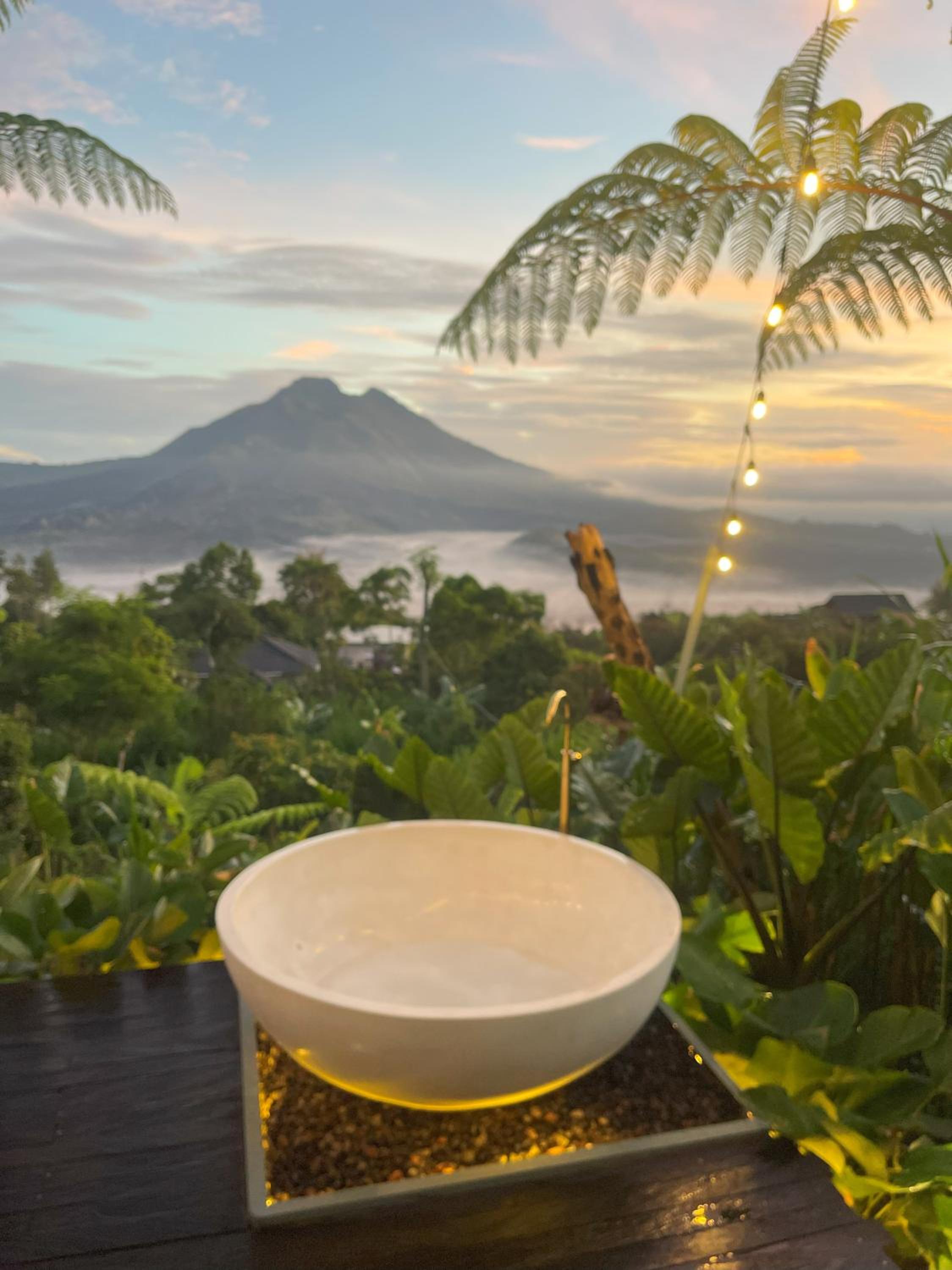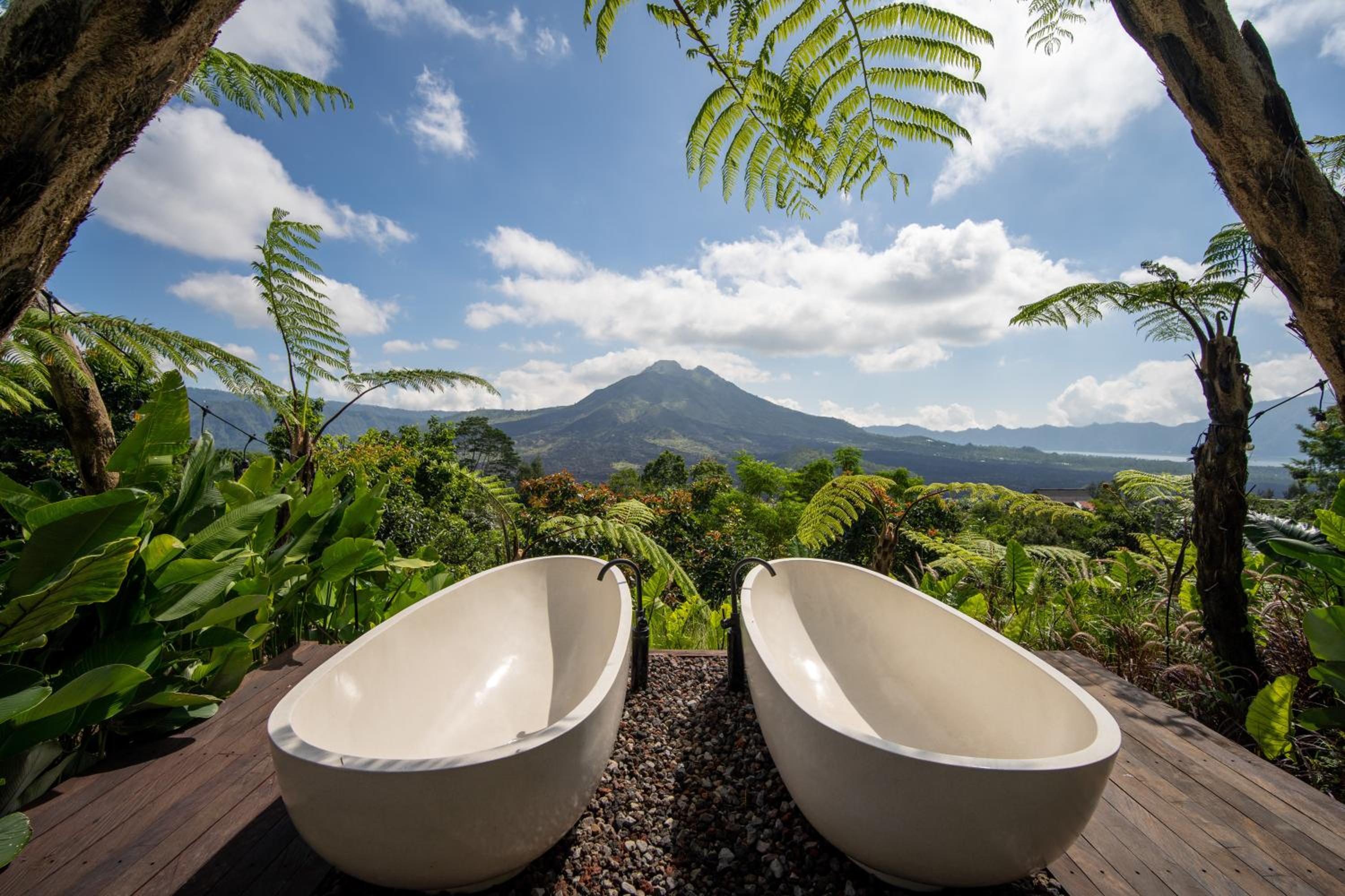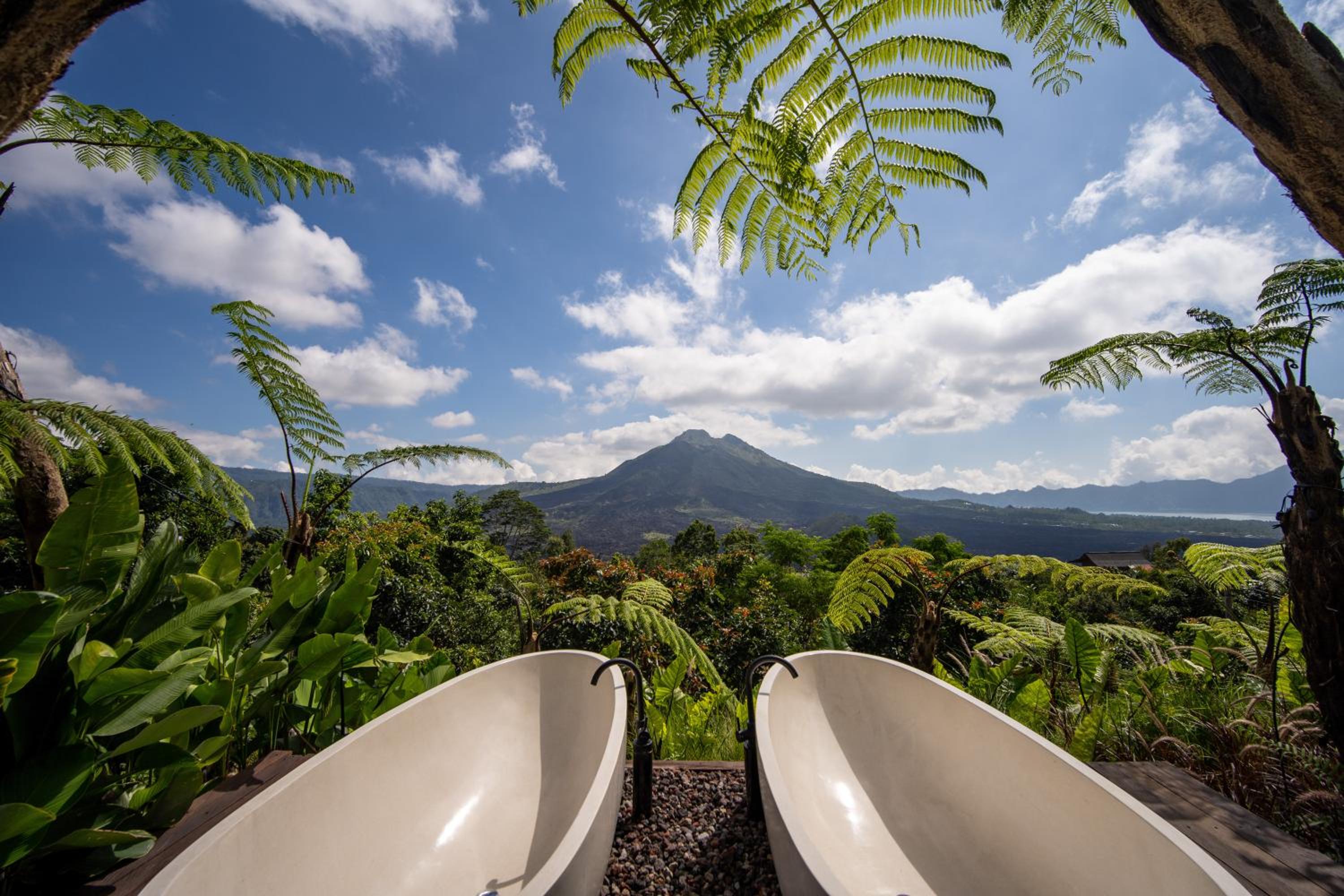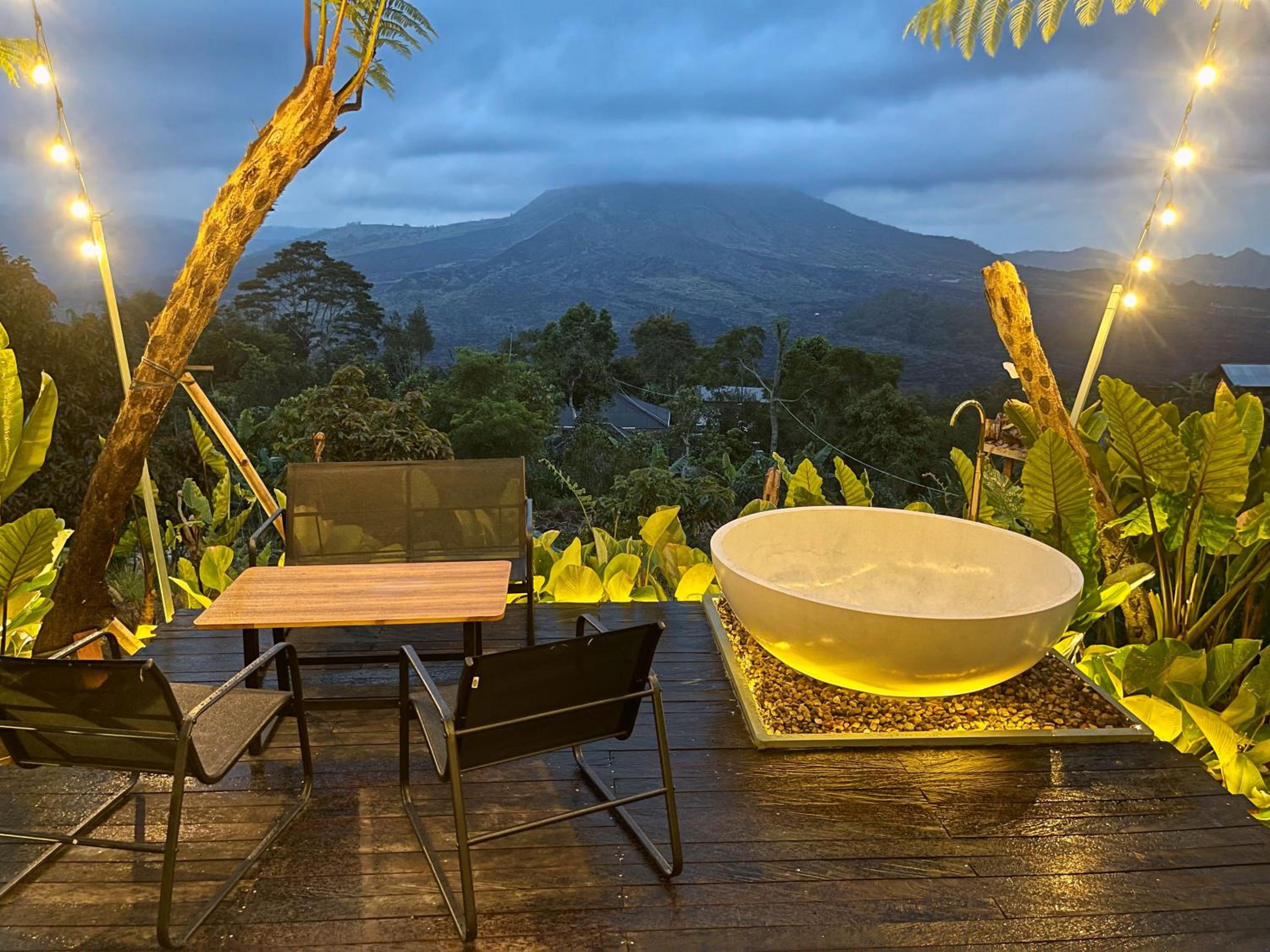 La beauté du paysage et du Batur devant les baignoires.
