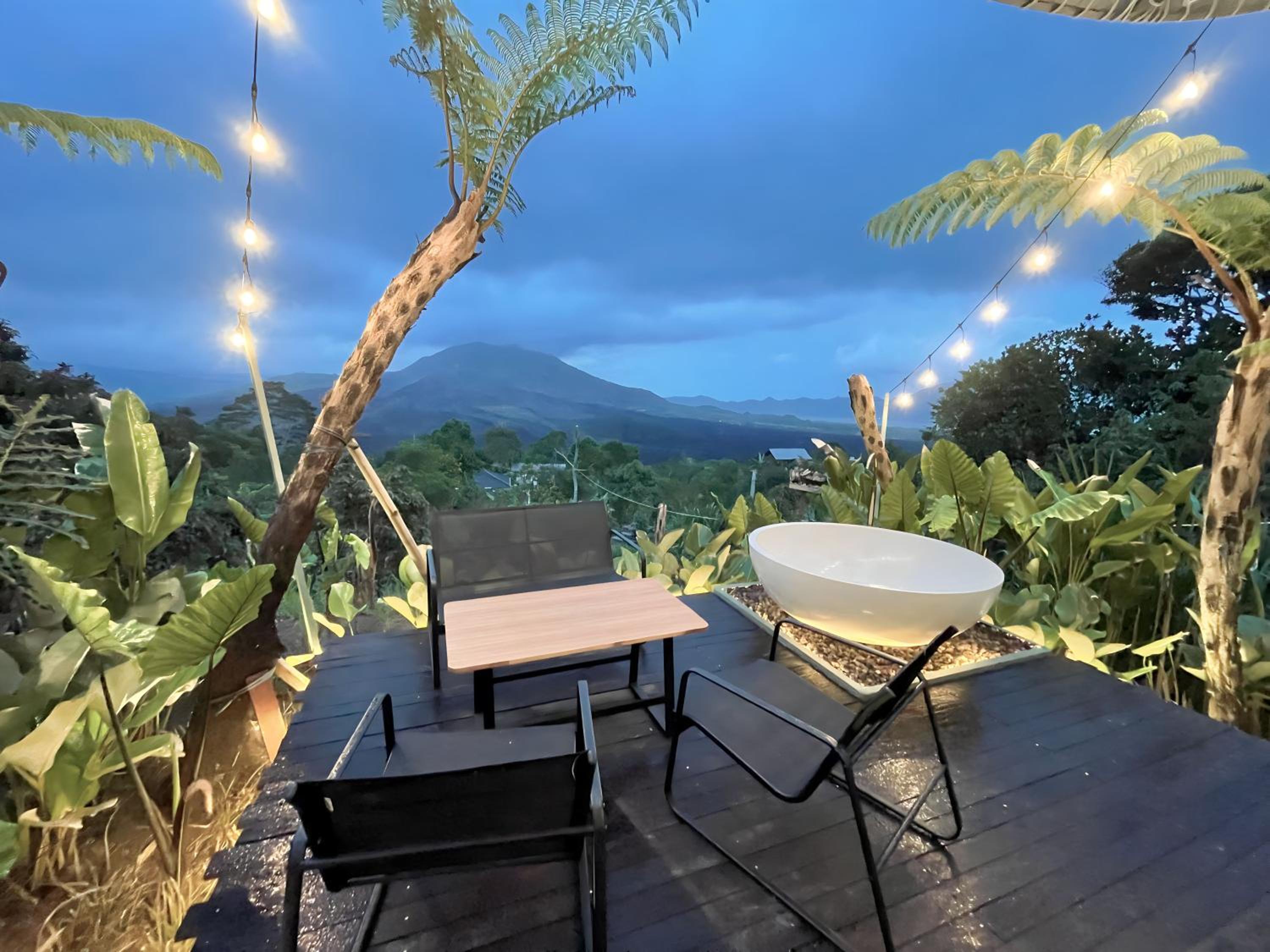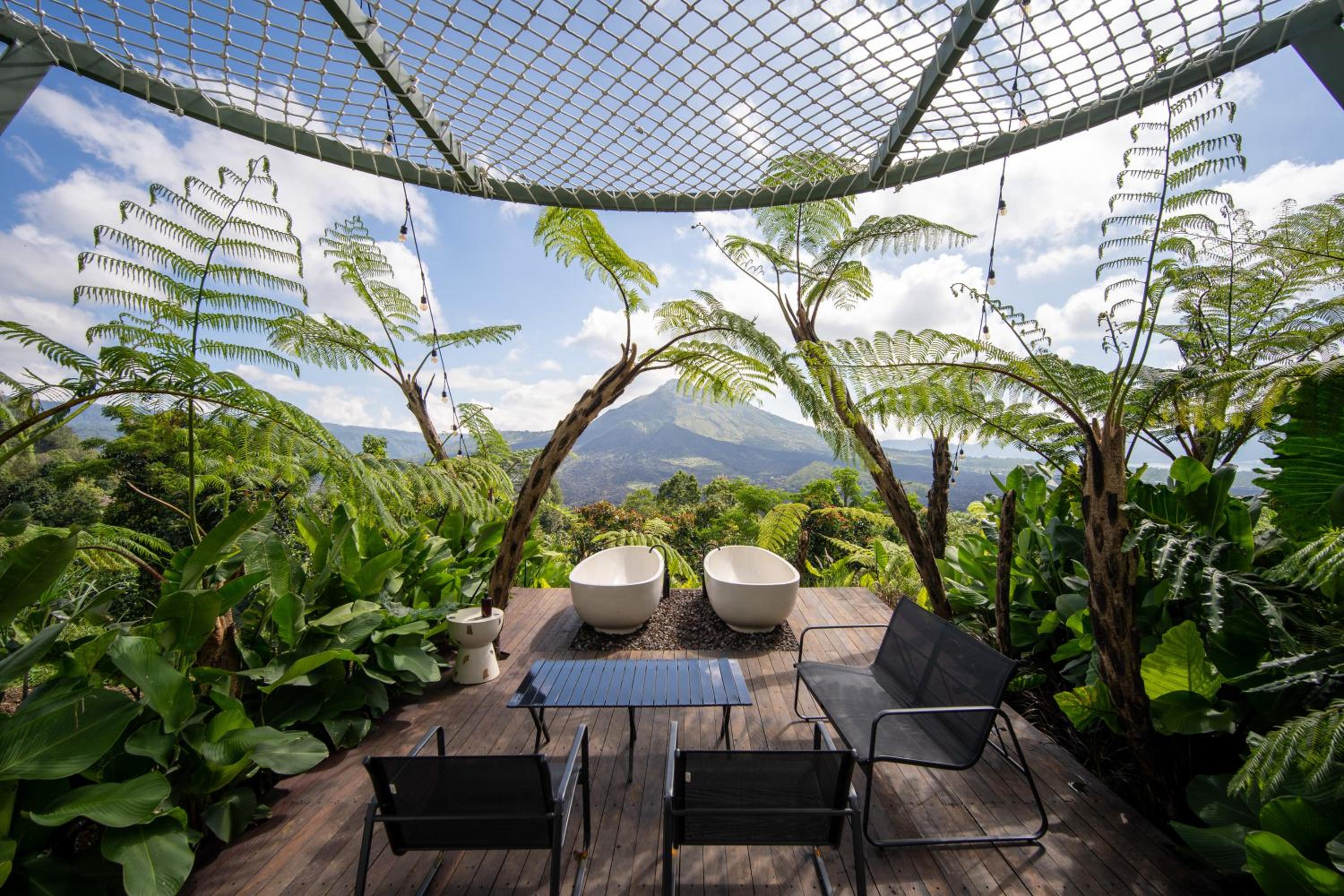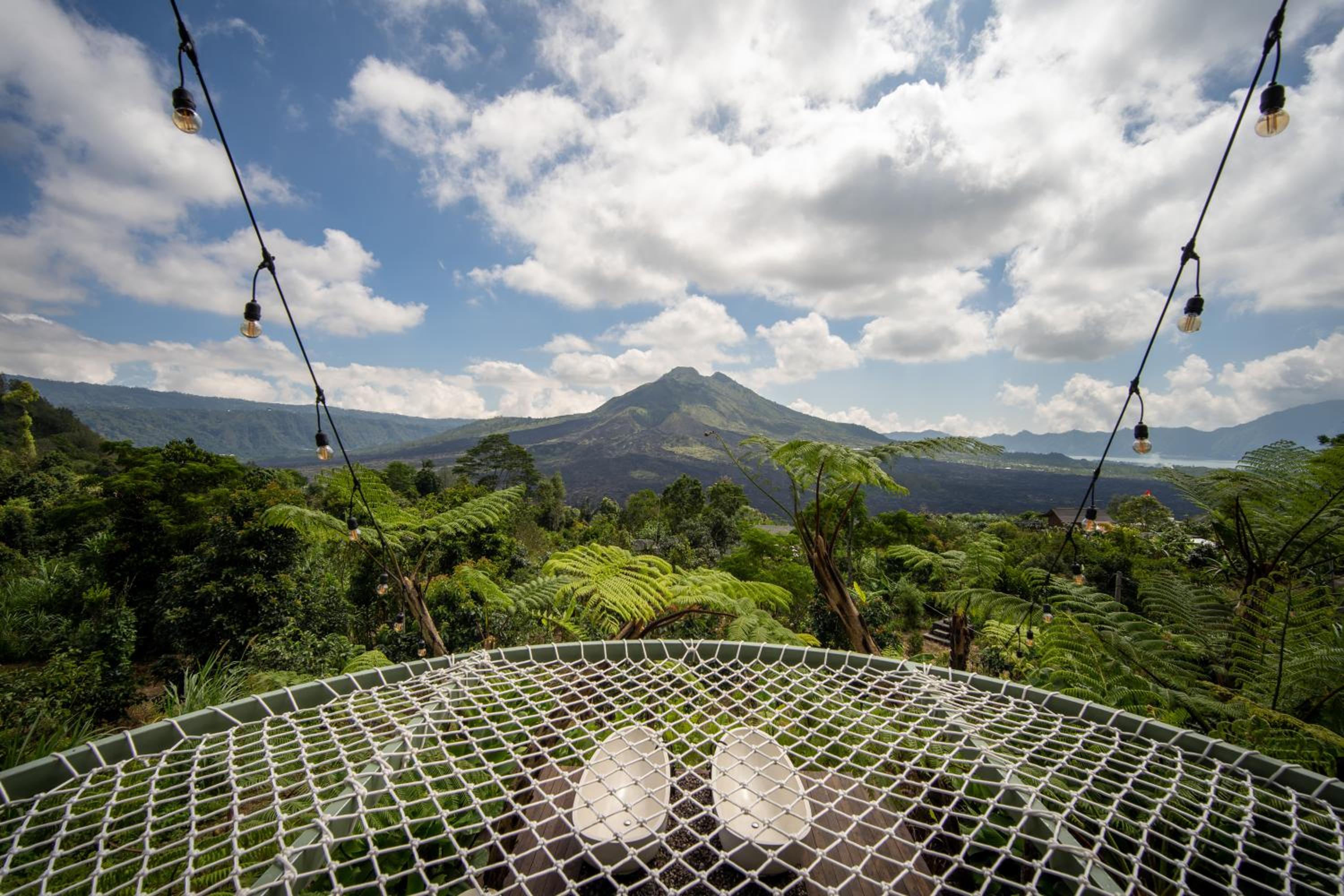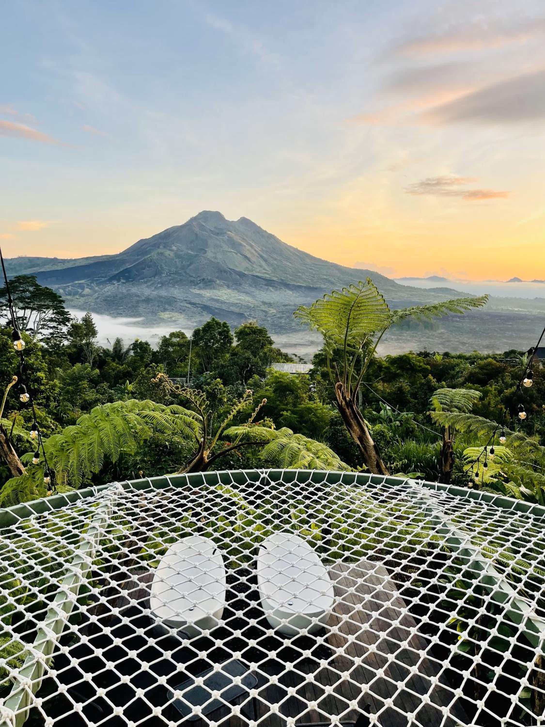 La beauté du paysage et du Batur devant les baignoires.