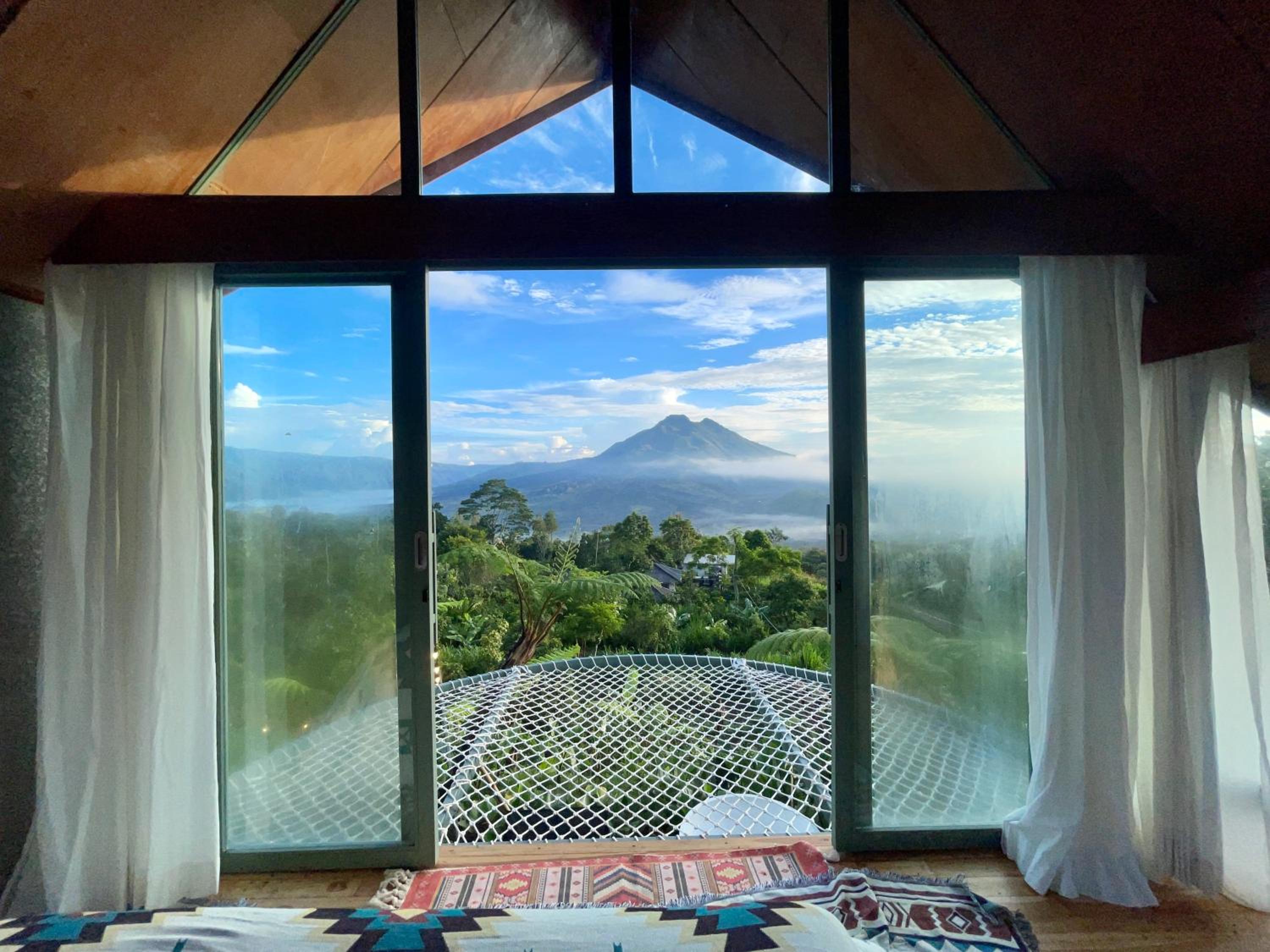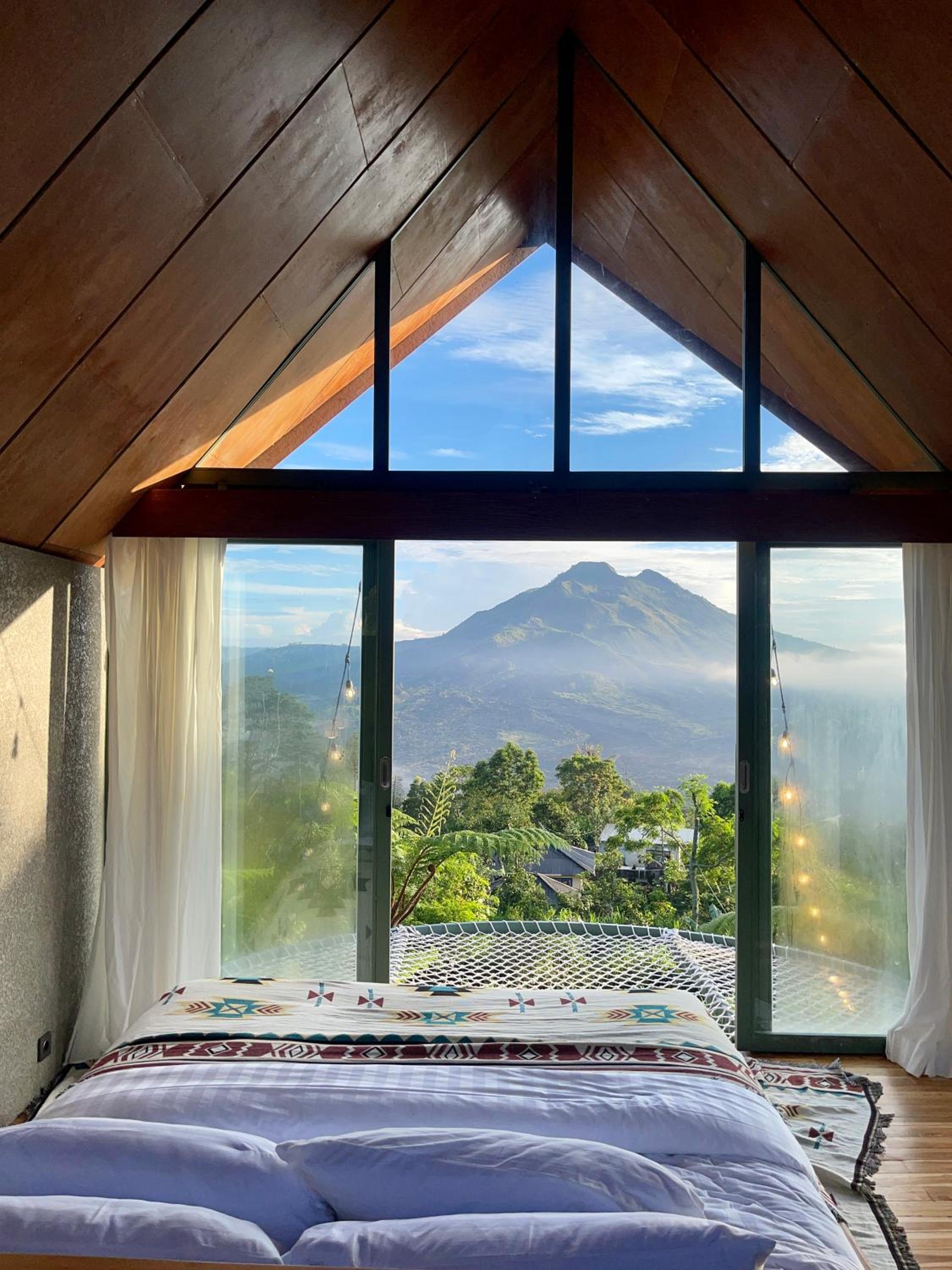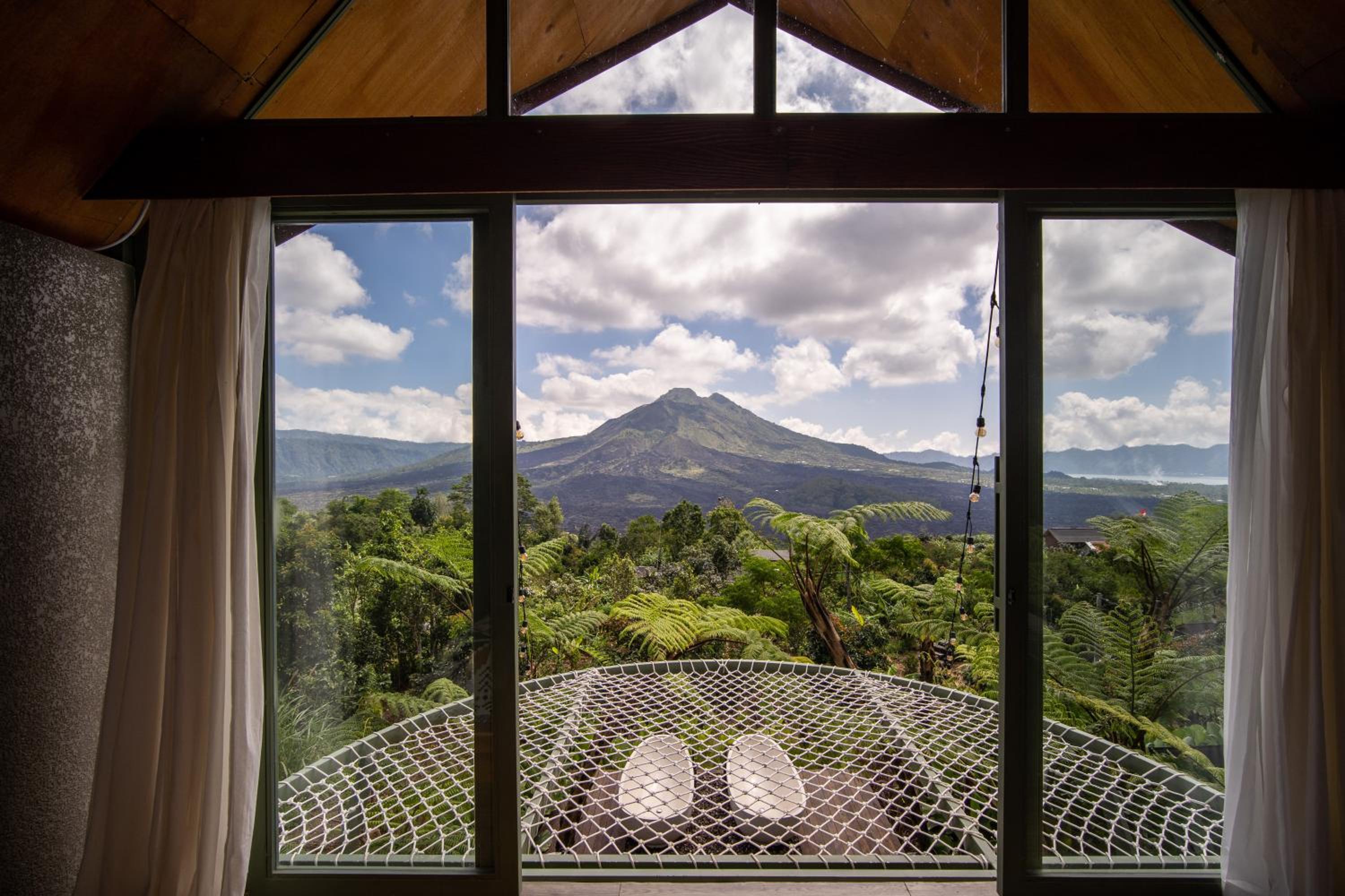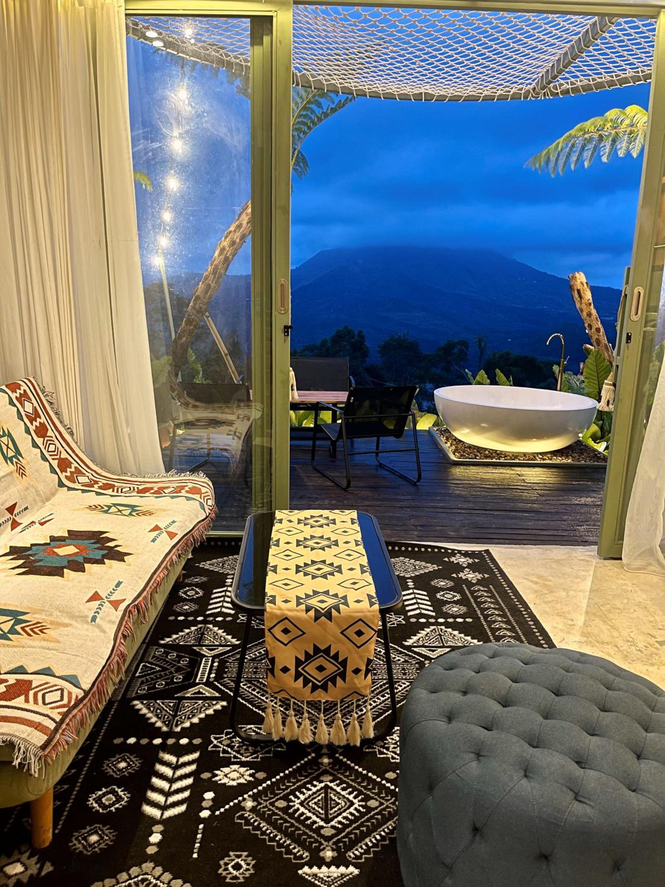 La beauté du paysage et du Batur devant les baignoires.