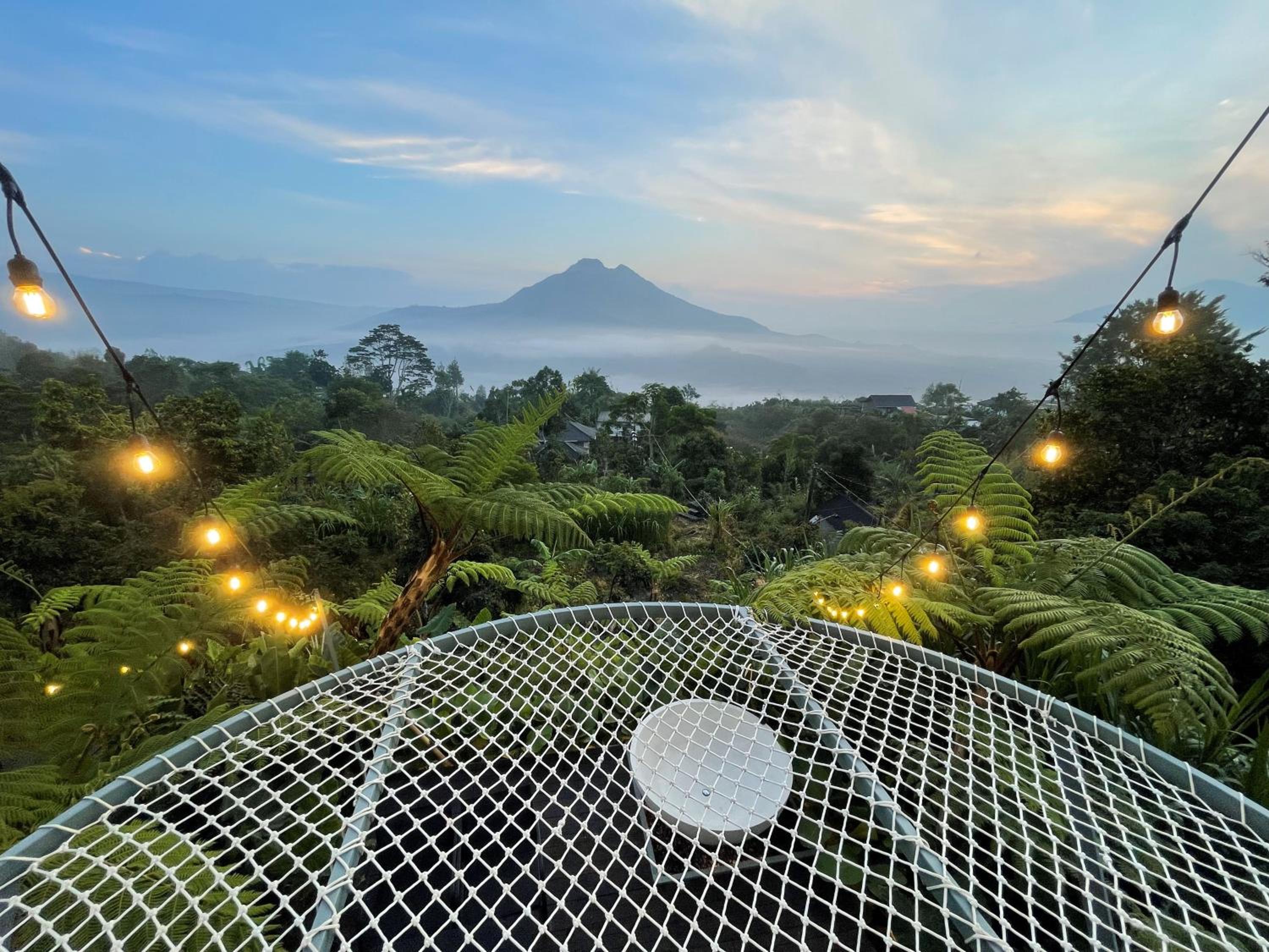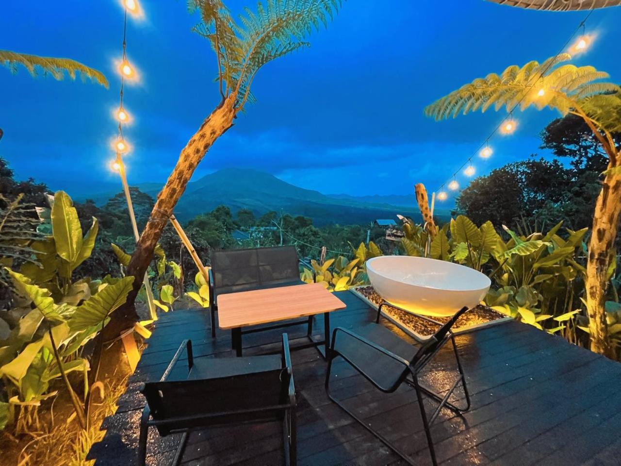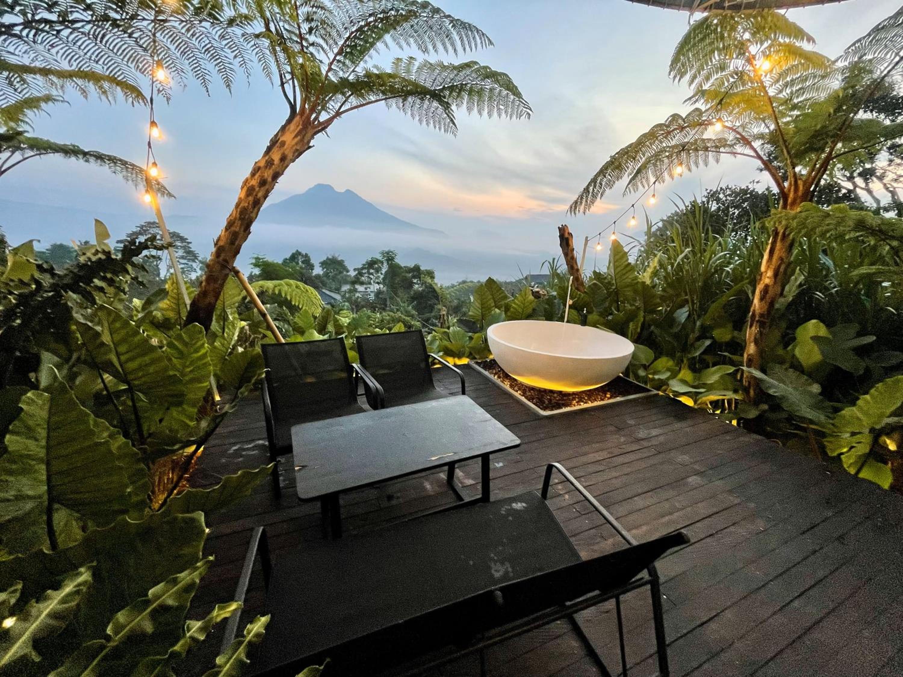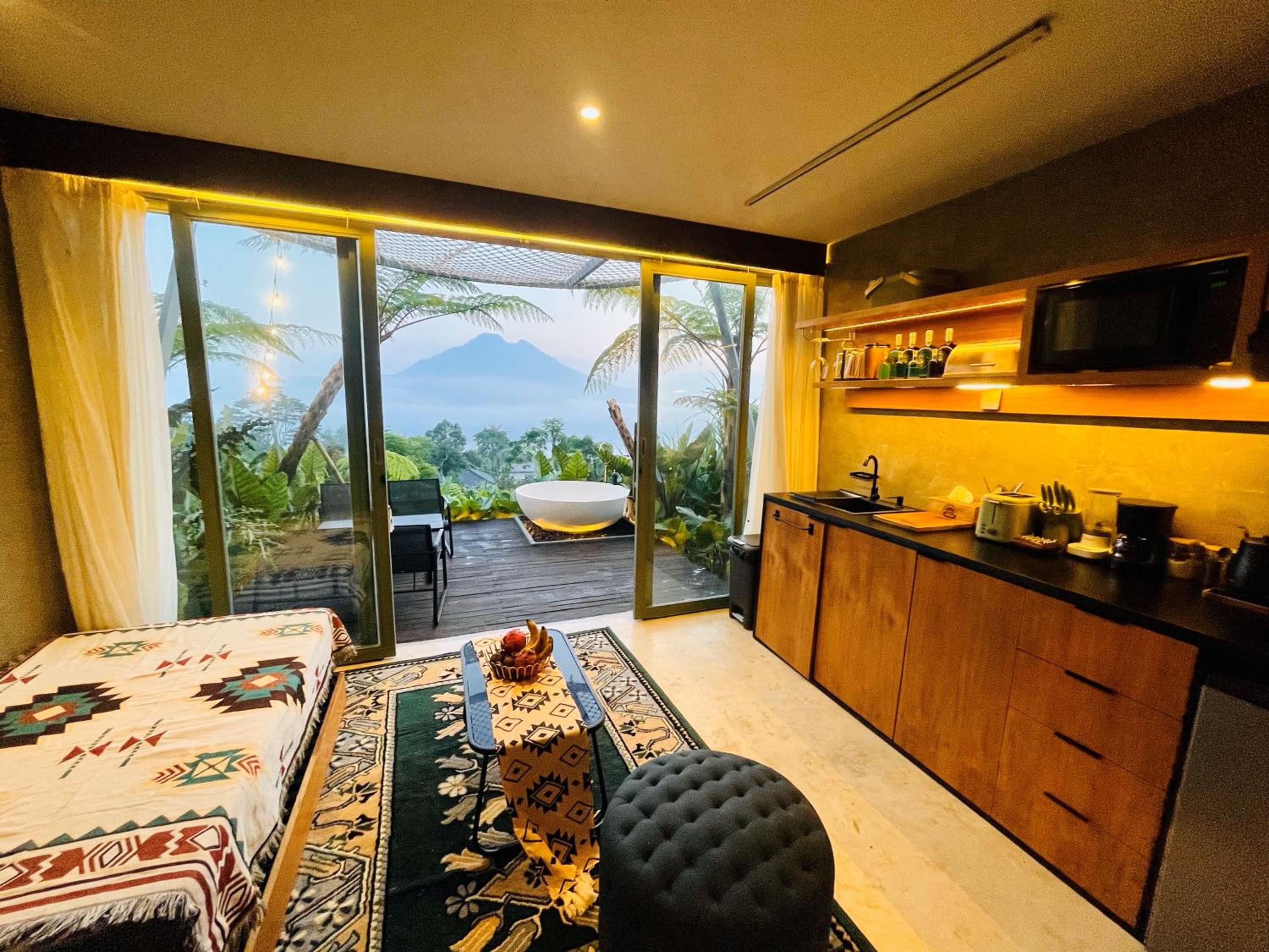 La beauté du paysage et du Batur devant les baignoires.