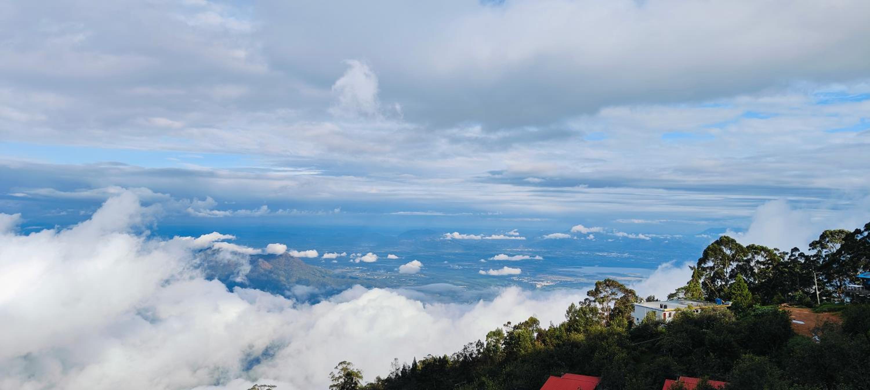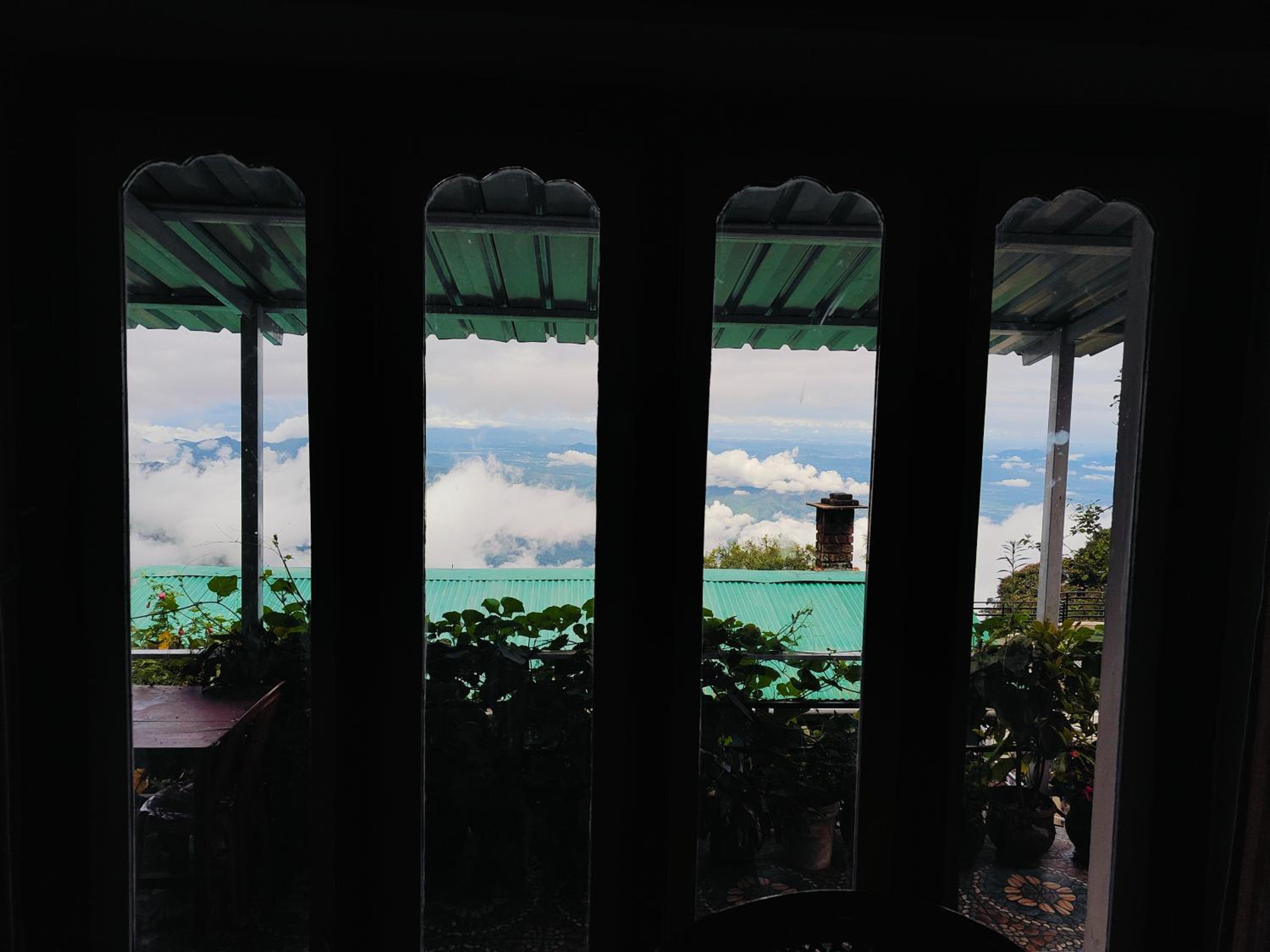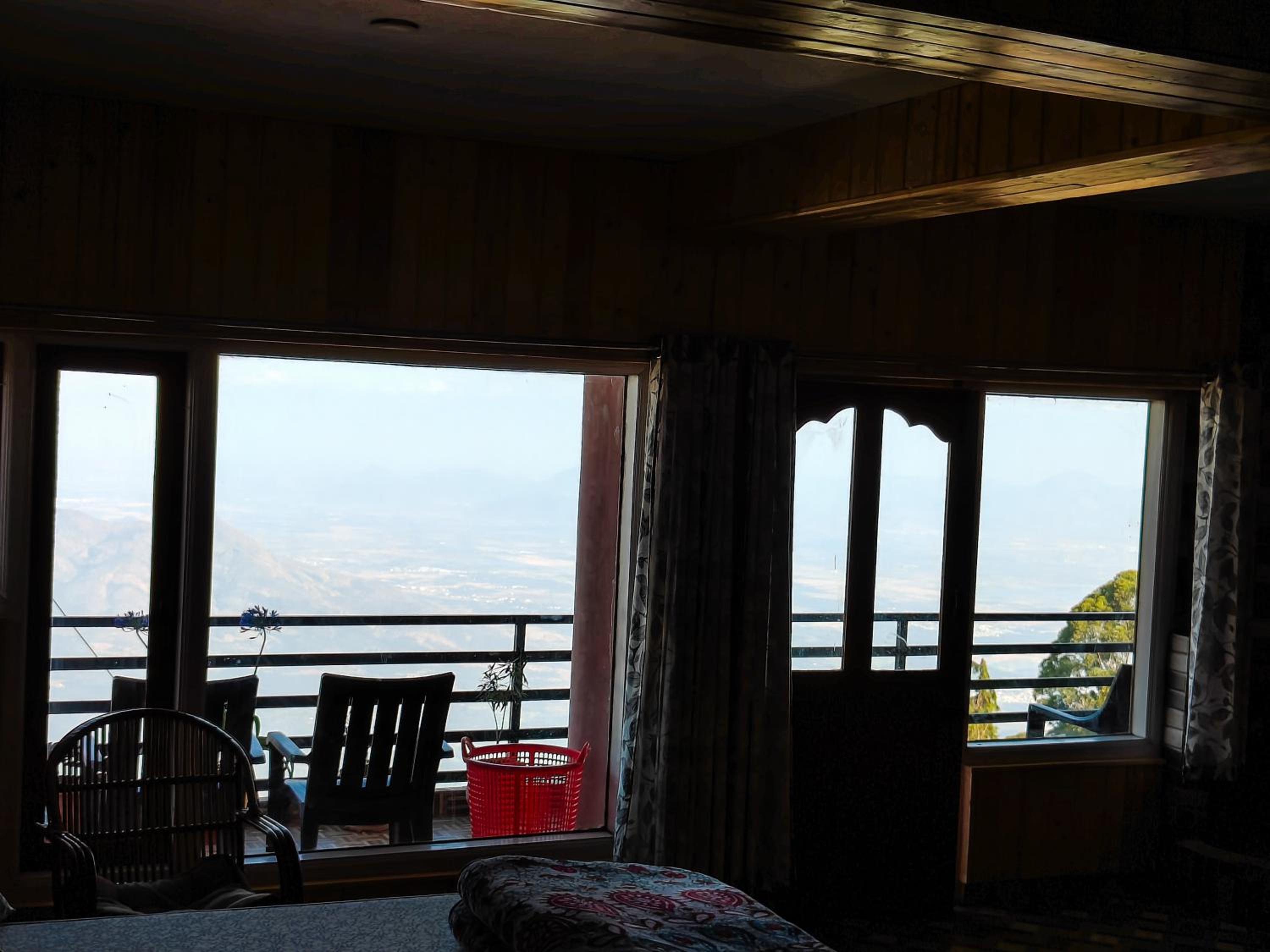 Outside view through the glass on one side of the wood house which was such a pleasant morning to enjoy that climate once we open the curtain during sunrise with mist and mountain. We don't need to go to a separate view point to have to look, right from our bed we can enjoy the view point of kodaikkanal.