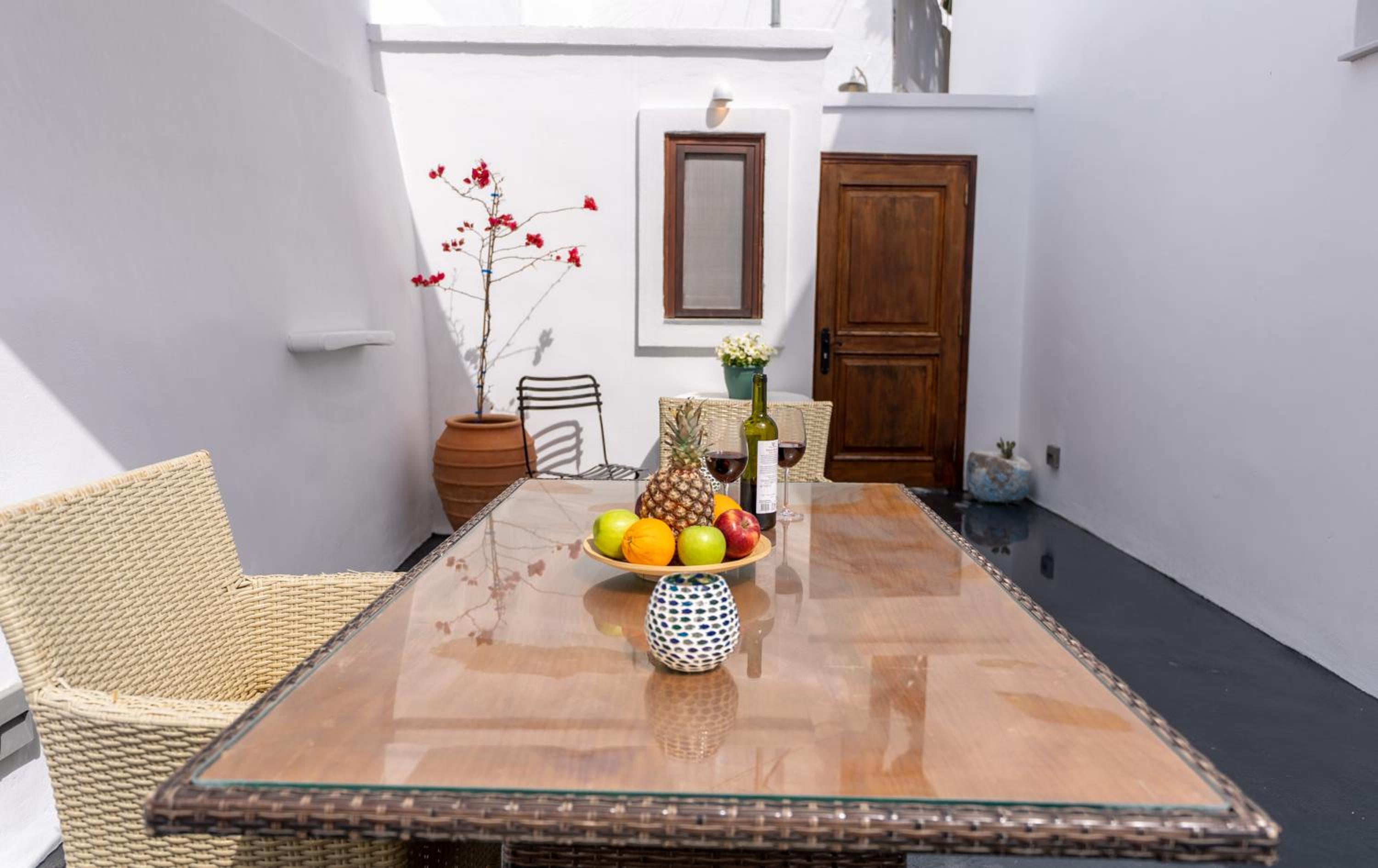 Enjoy stunning inner courtyard views and unwind in our peaceful garden. Discover tranquility and serenity in the heart of Megalokhori.