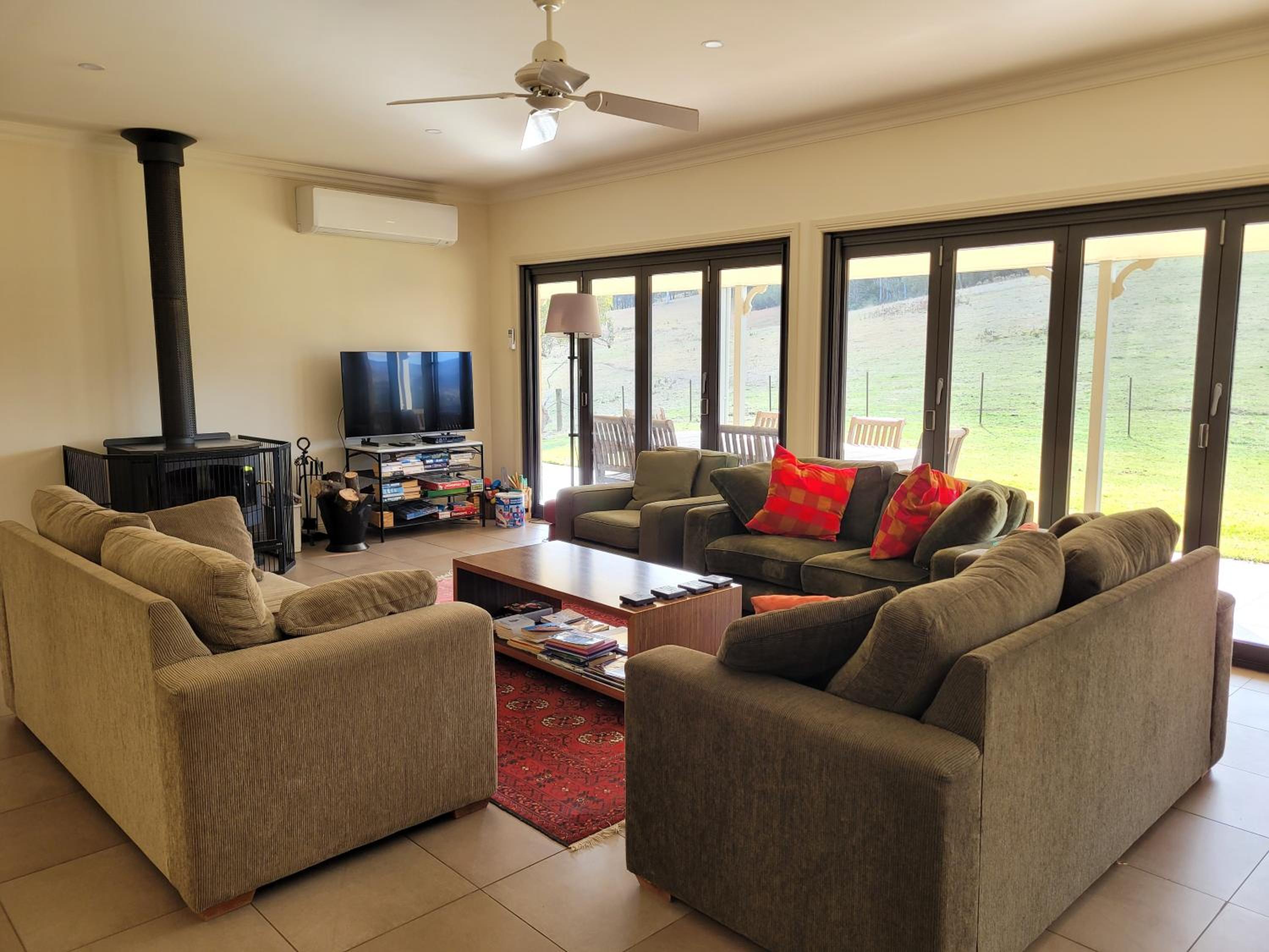 Luxurious Amenities: Enjoy the outdoor fireplace, fully equipped kitchen, and spacious living areas with modern comforts.