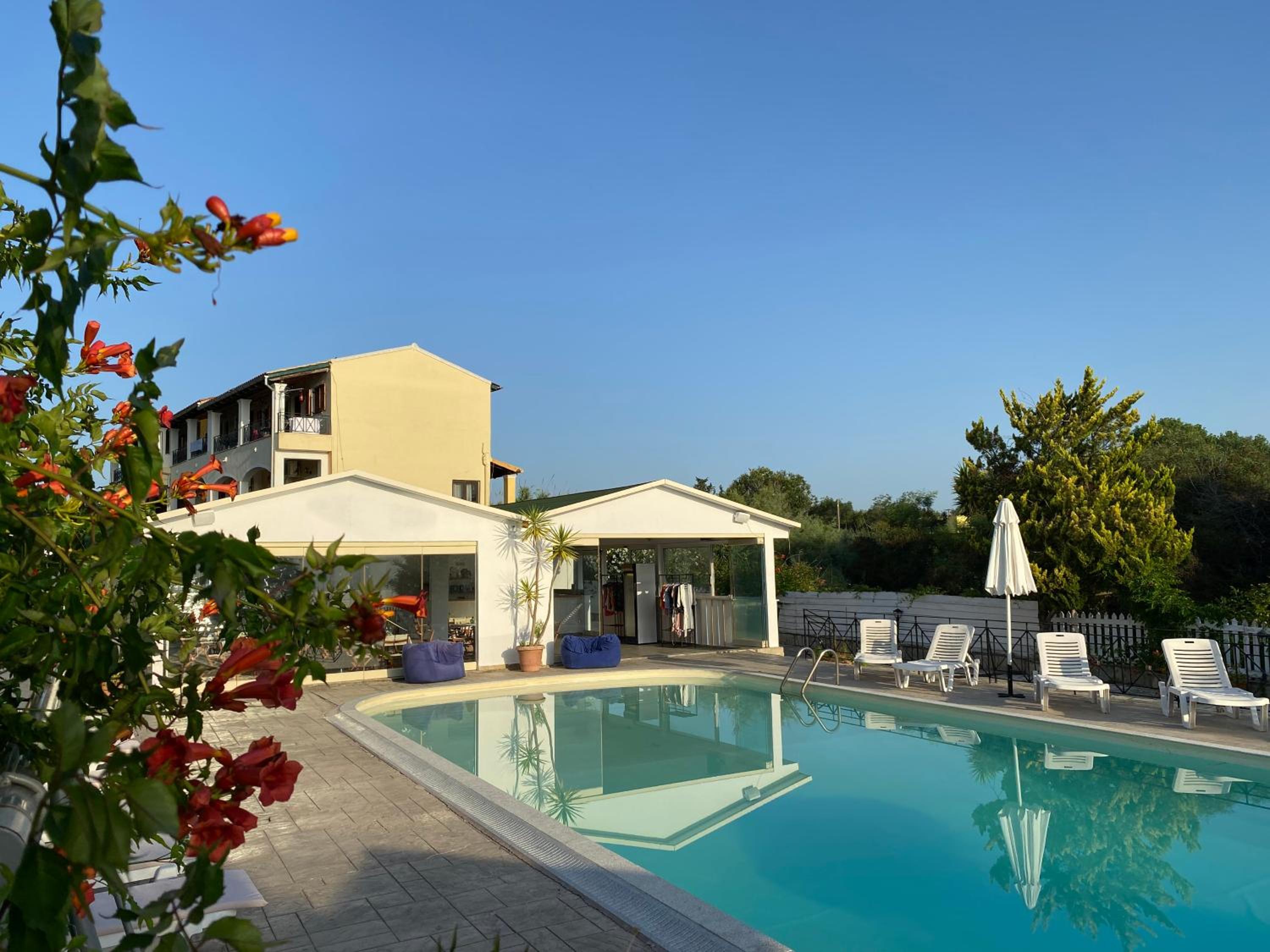 Pěkný nový nábytek i koupelna. Dobrá klimatizace. Pěkný bazén i dobré snídaně.
