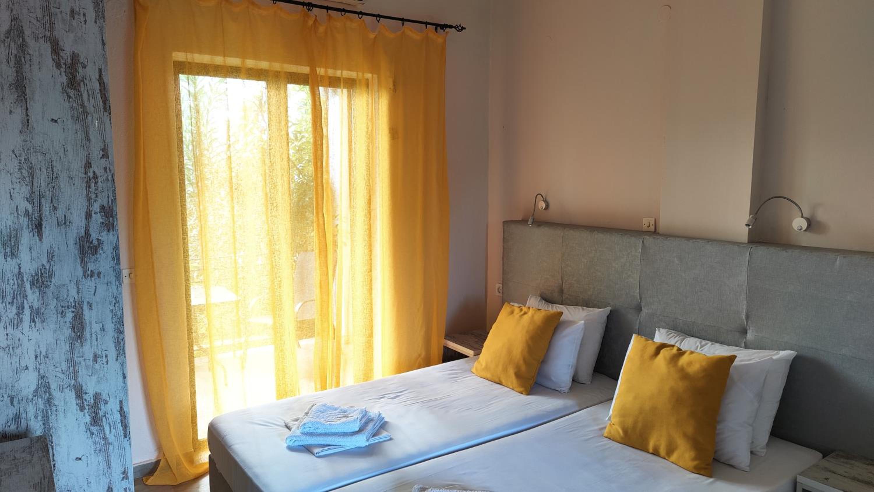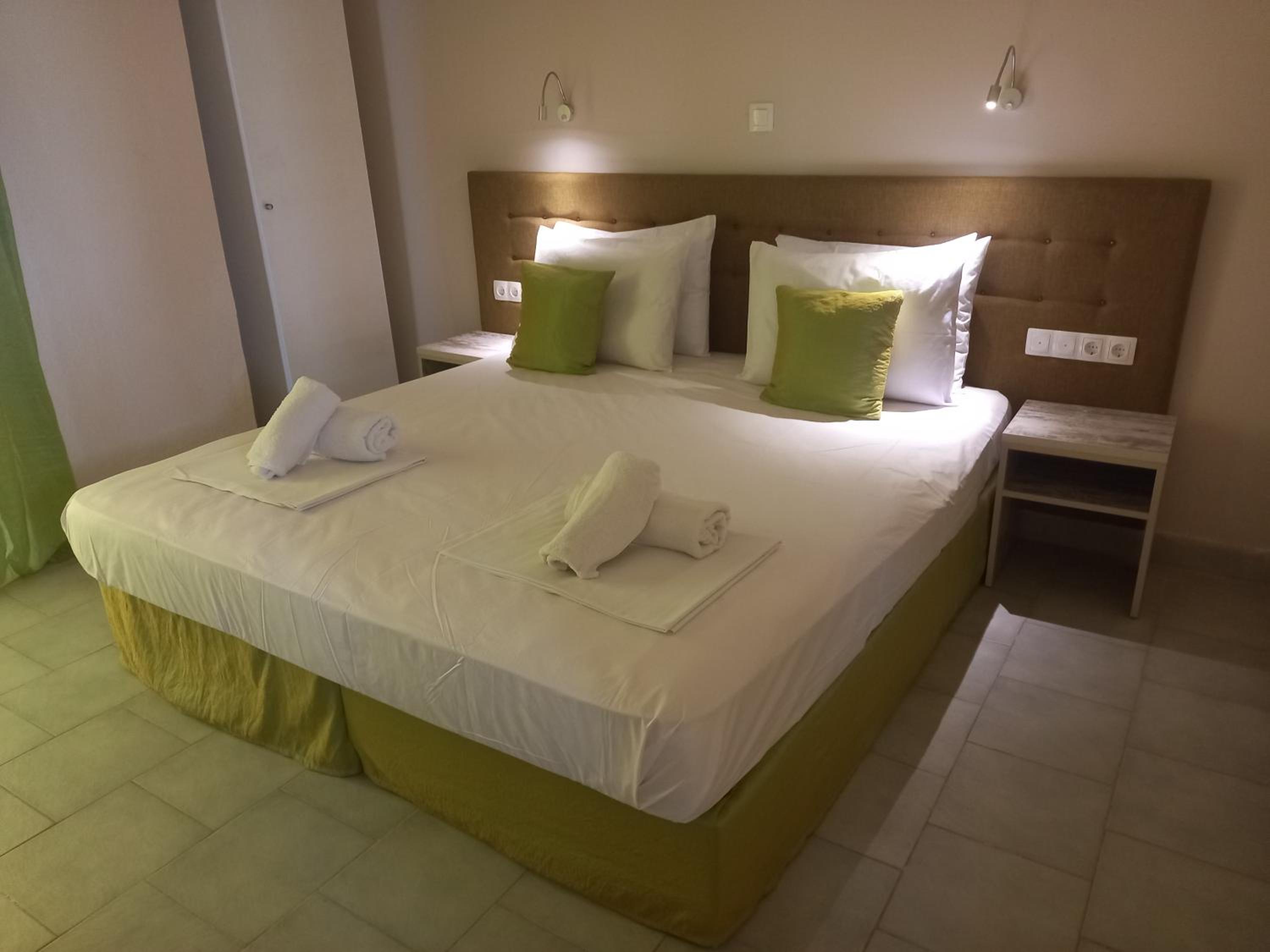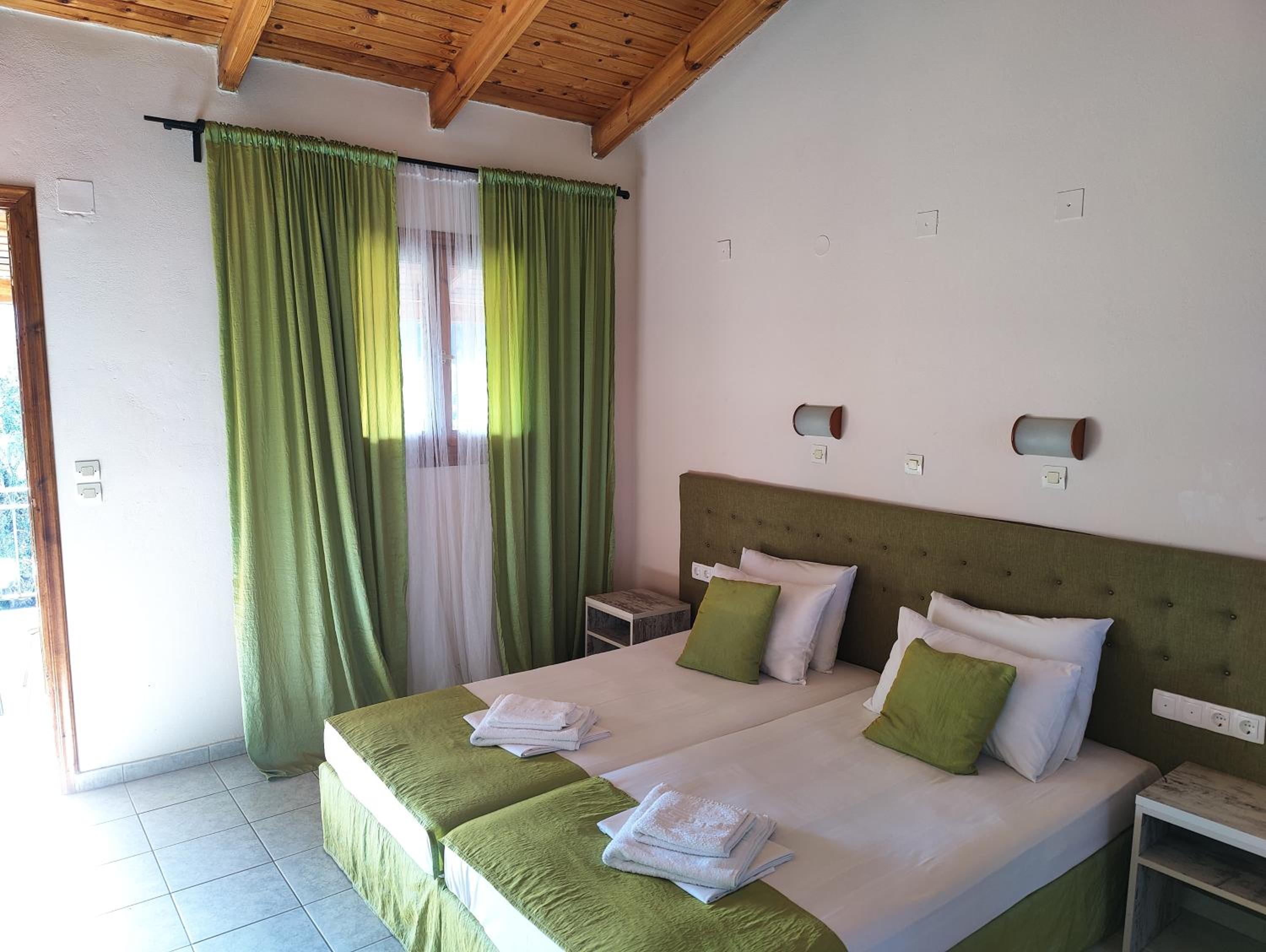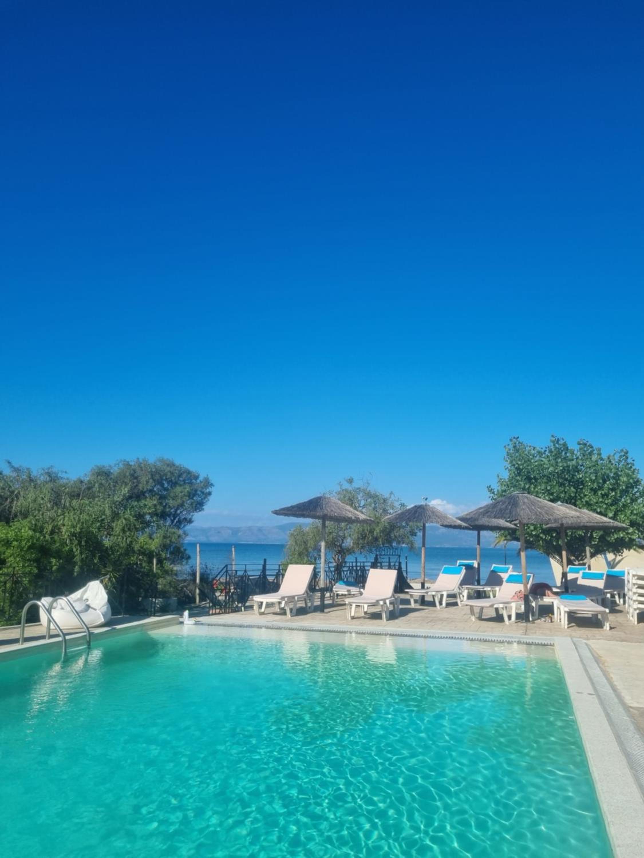 Enjoy our private beach area and spacious family rooms at Blue Waves Corfu for a relaxing stay.