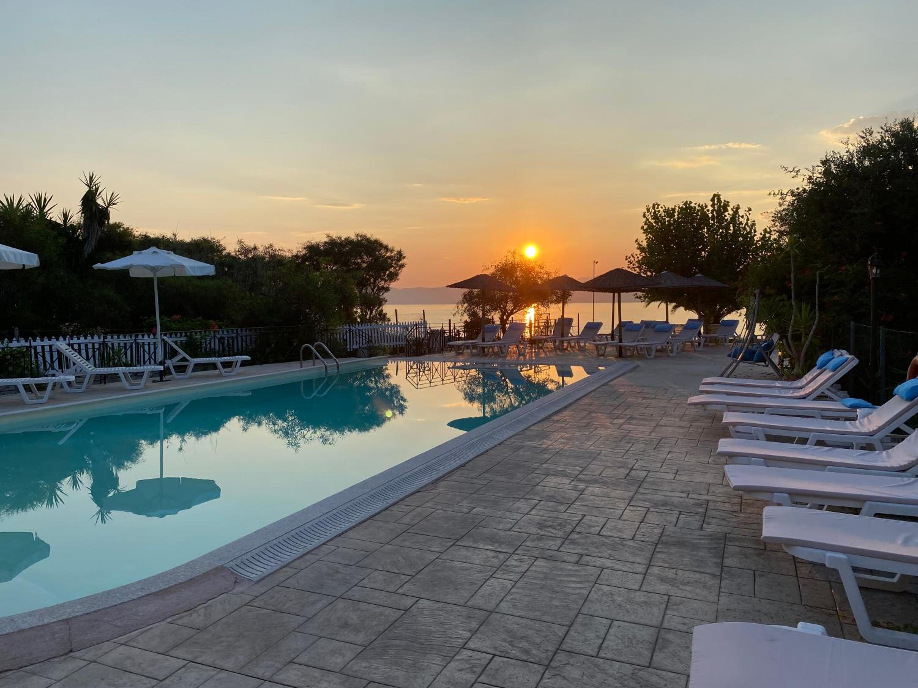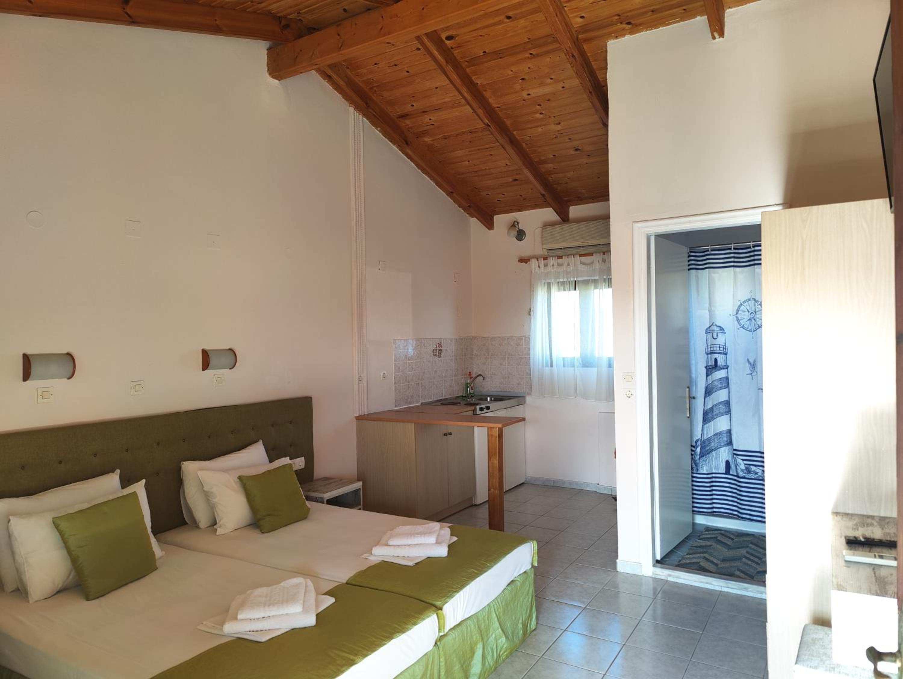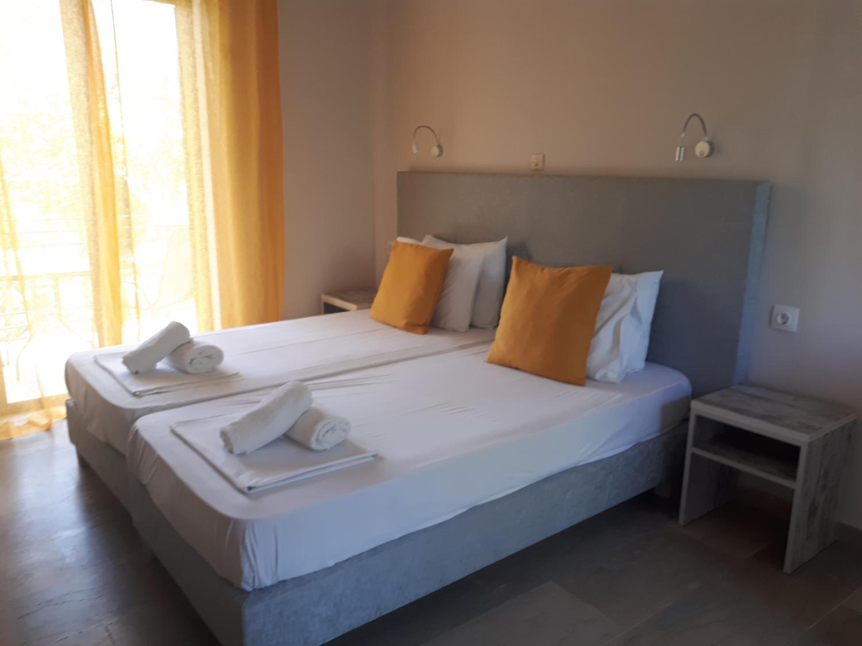 Enjoy our private beach area and spacious family rooms at Blue Waves Corfu for a relaxing stay.