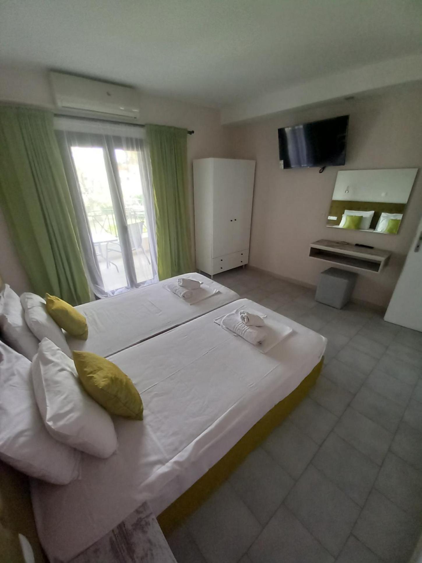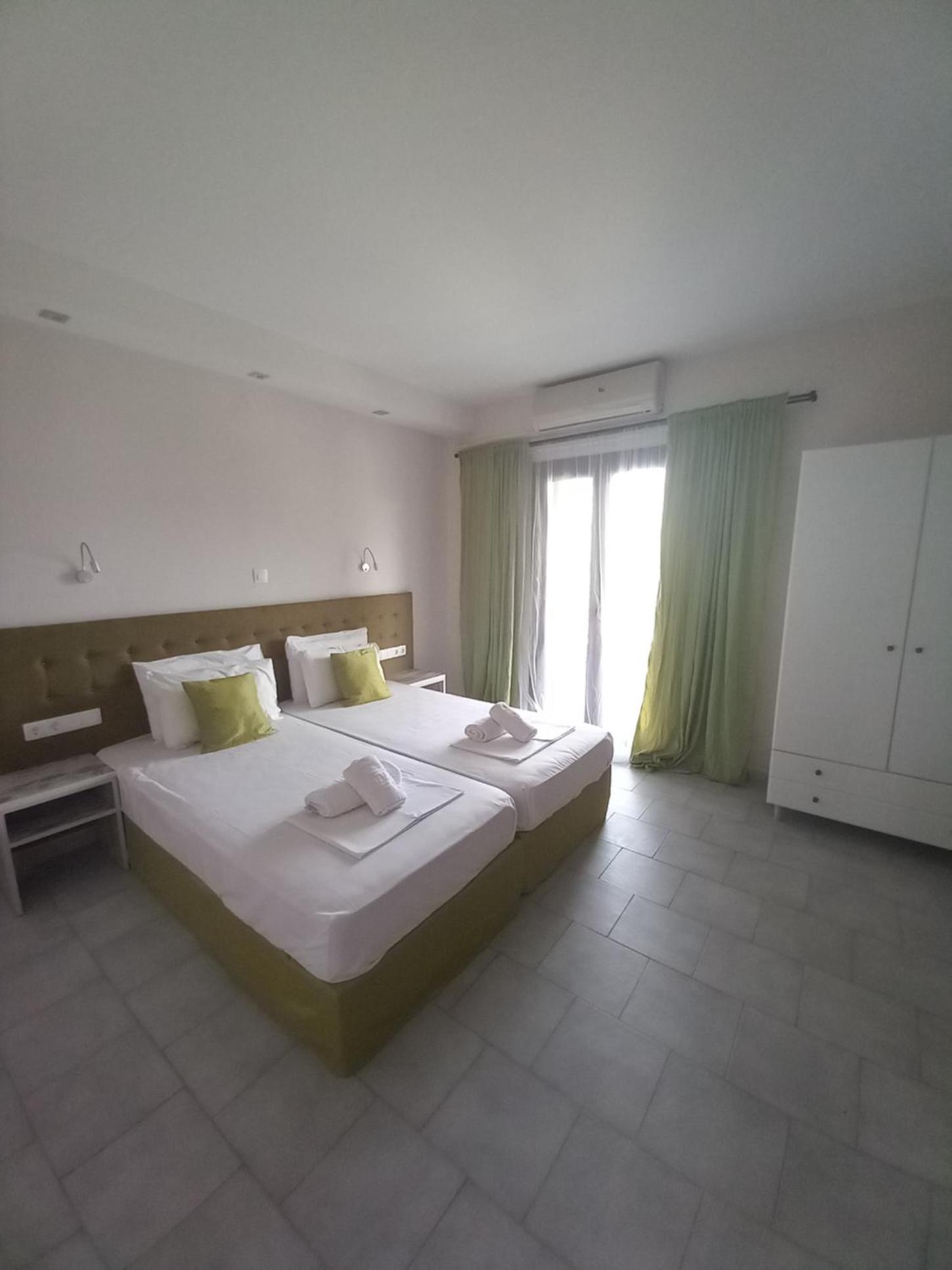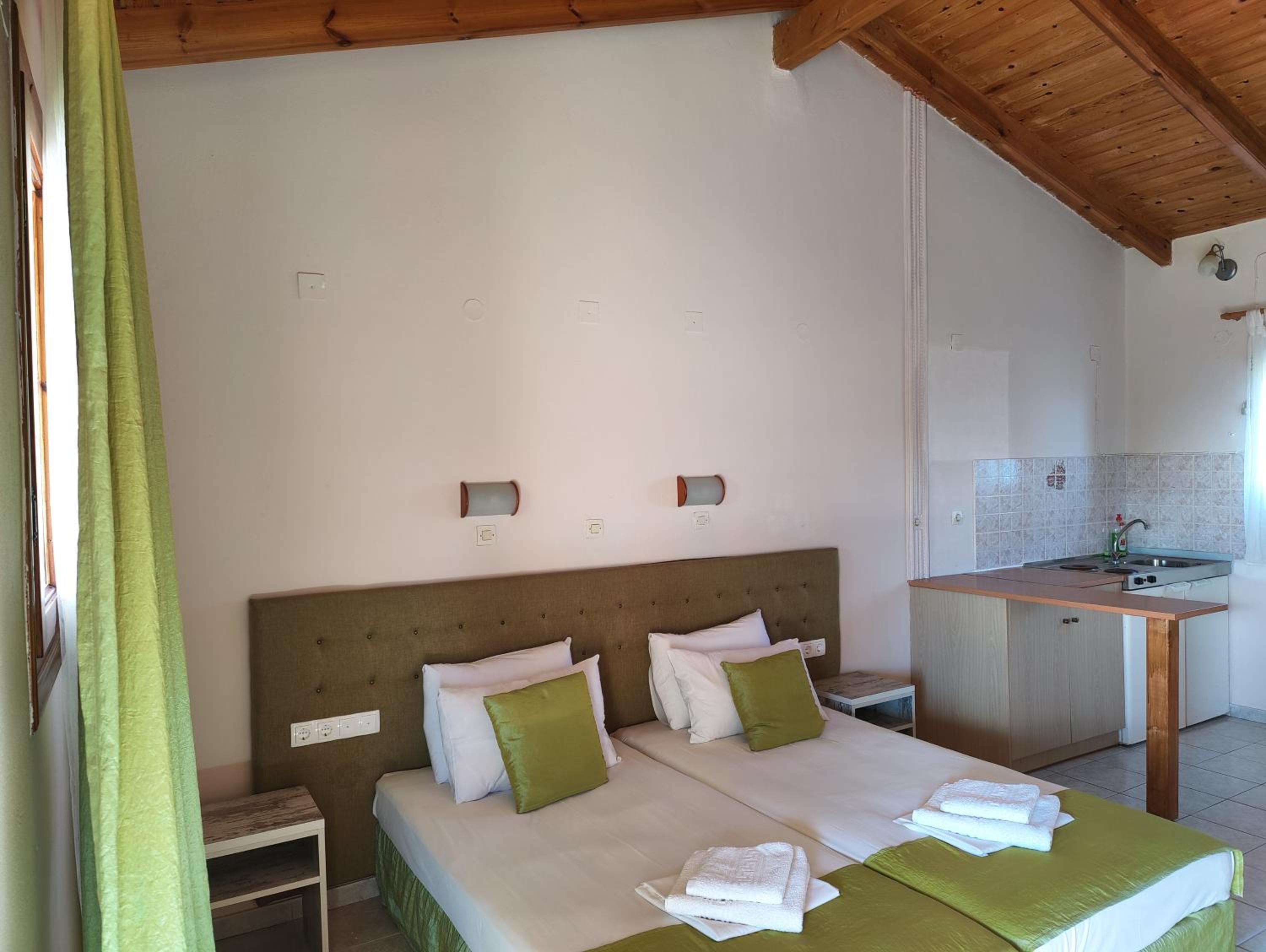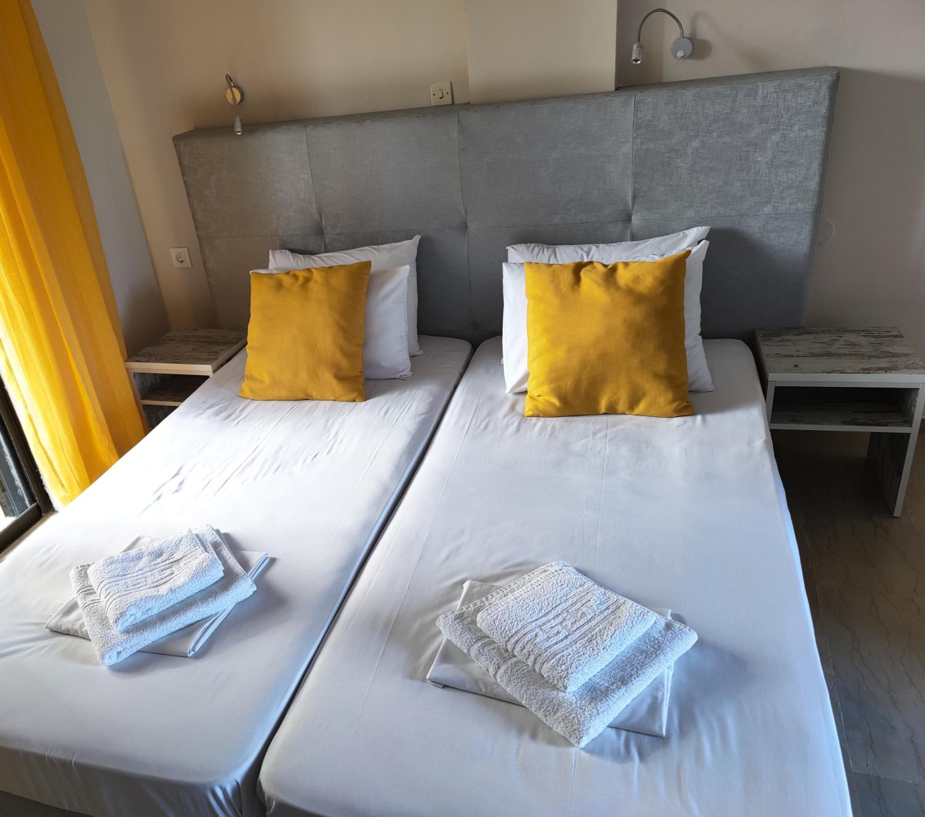 Enjoy our private beach area and spacious family rooms at Blue Waves Corfu for a relaxing stay.