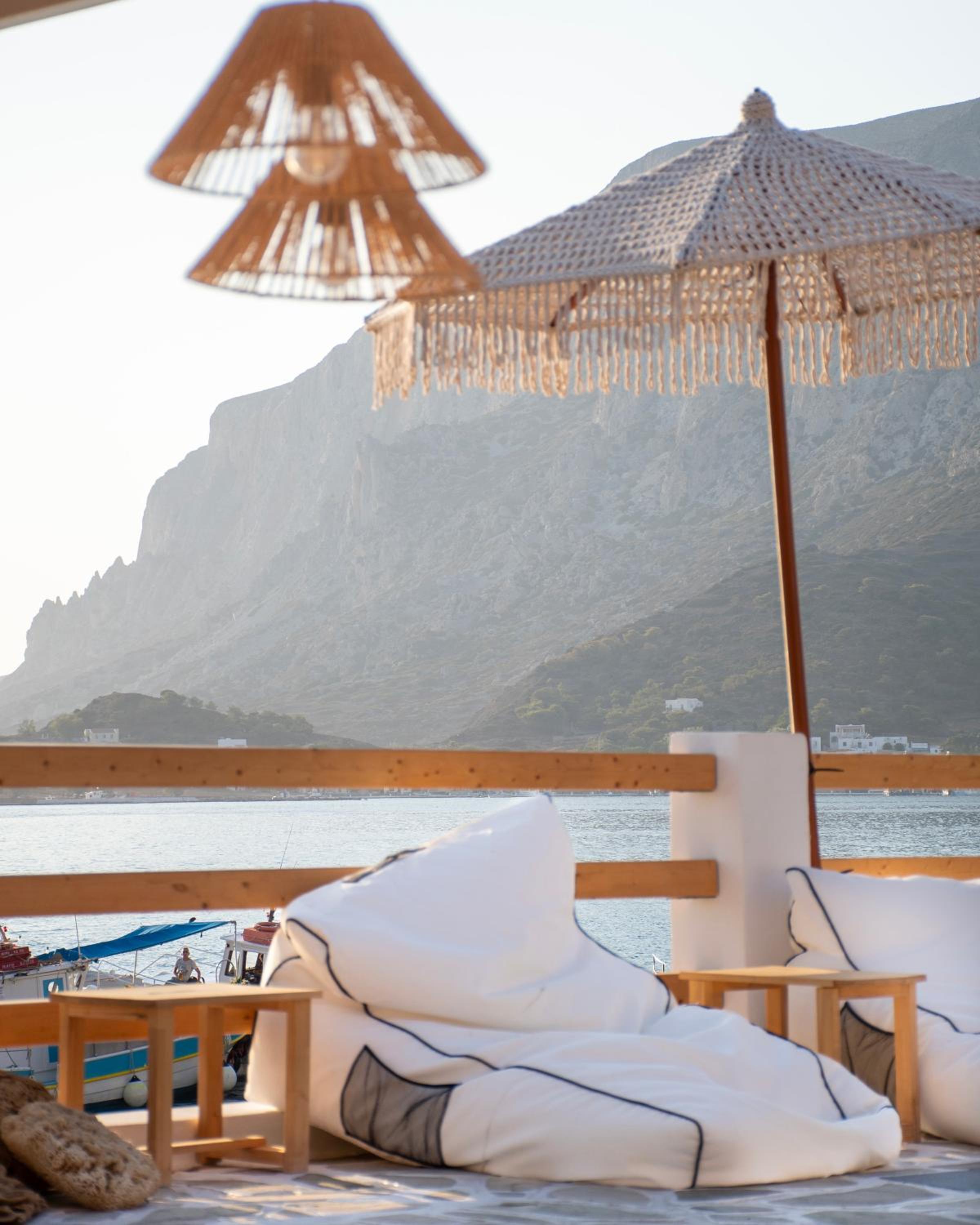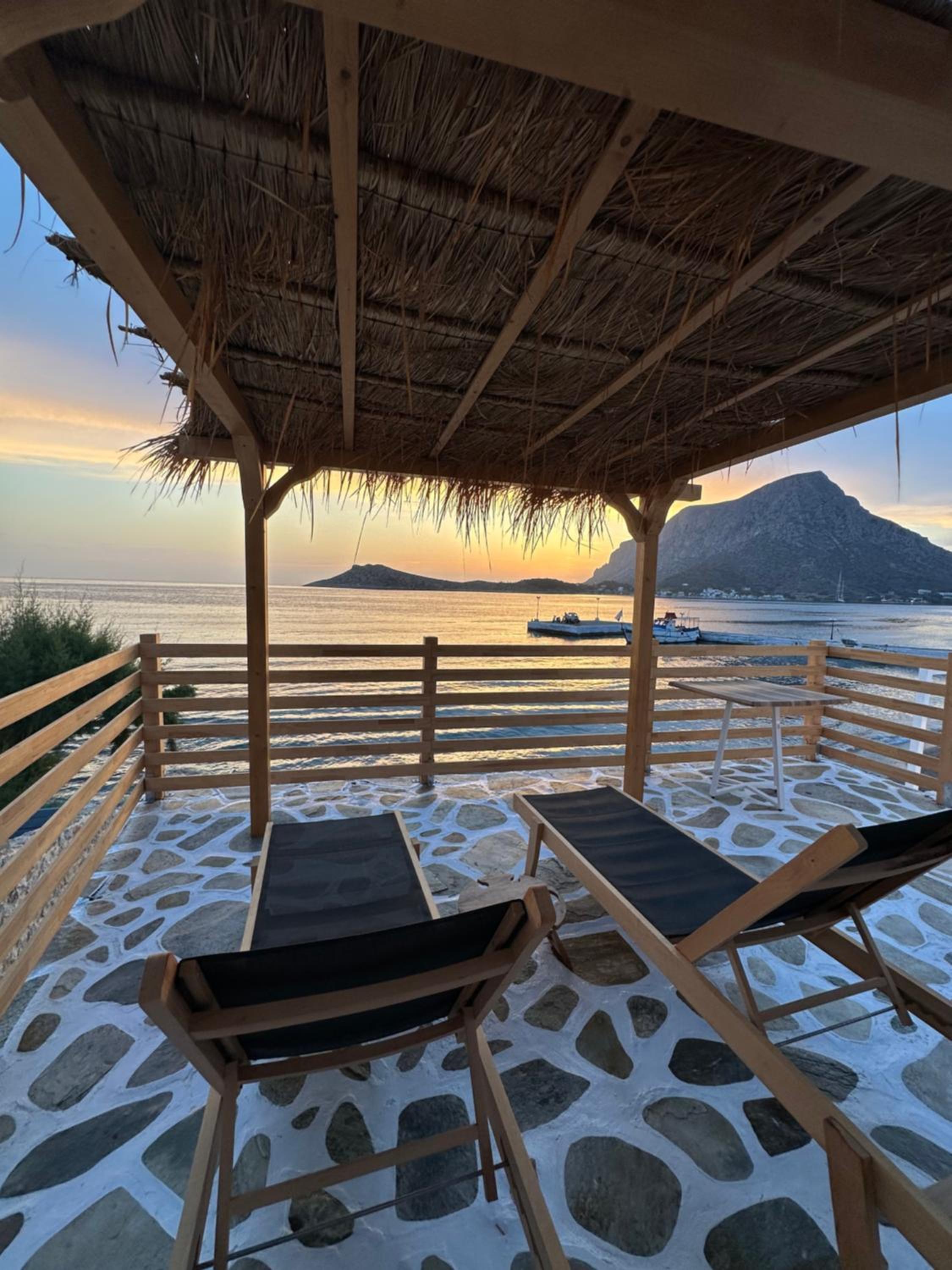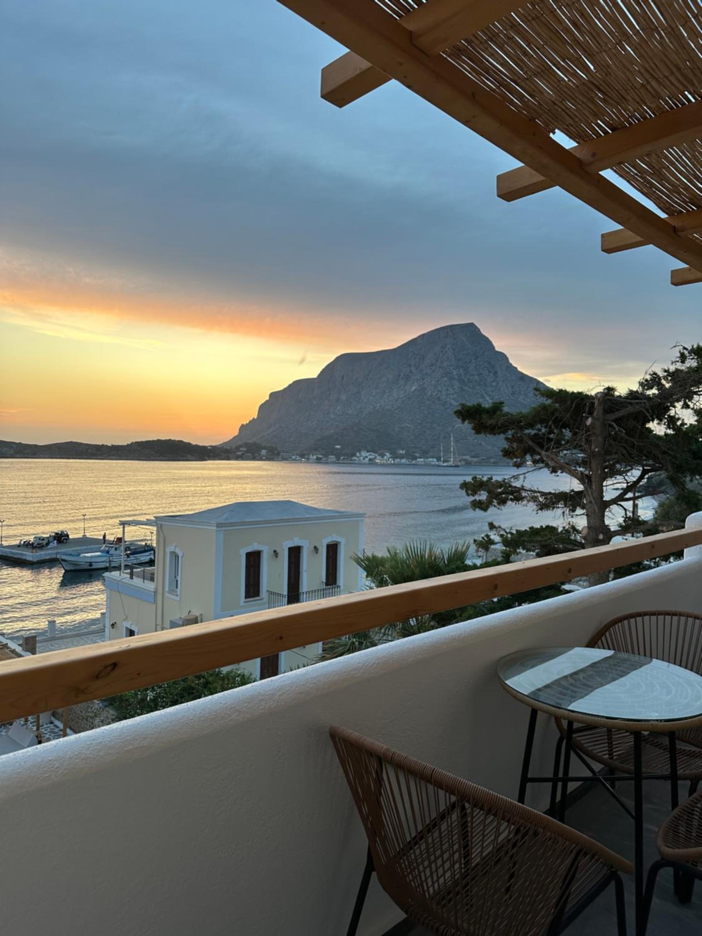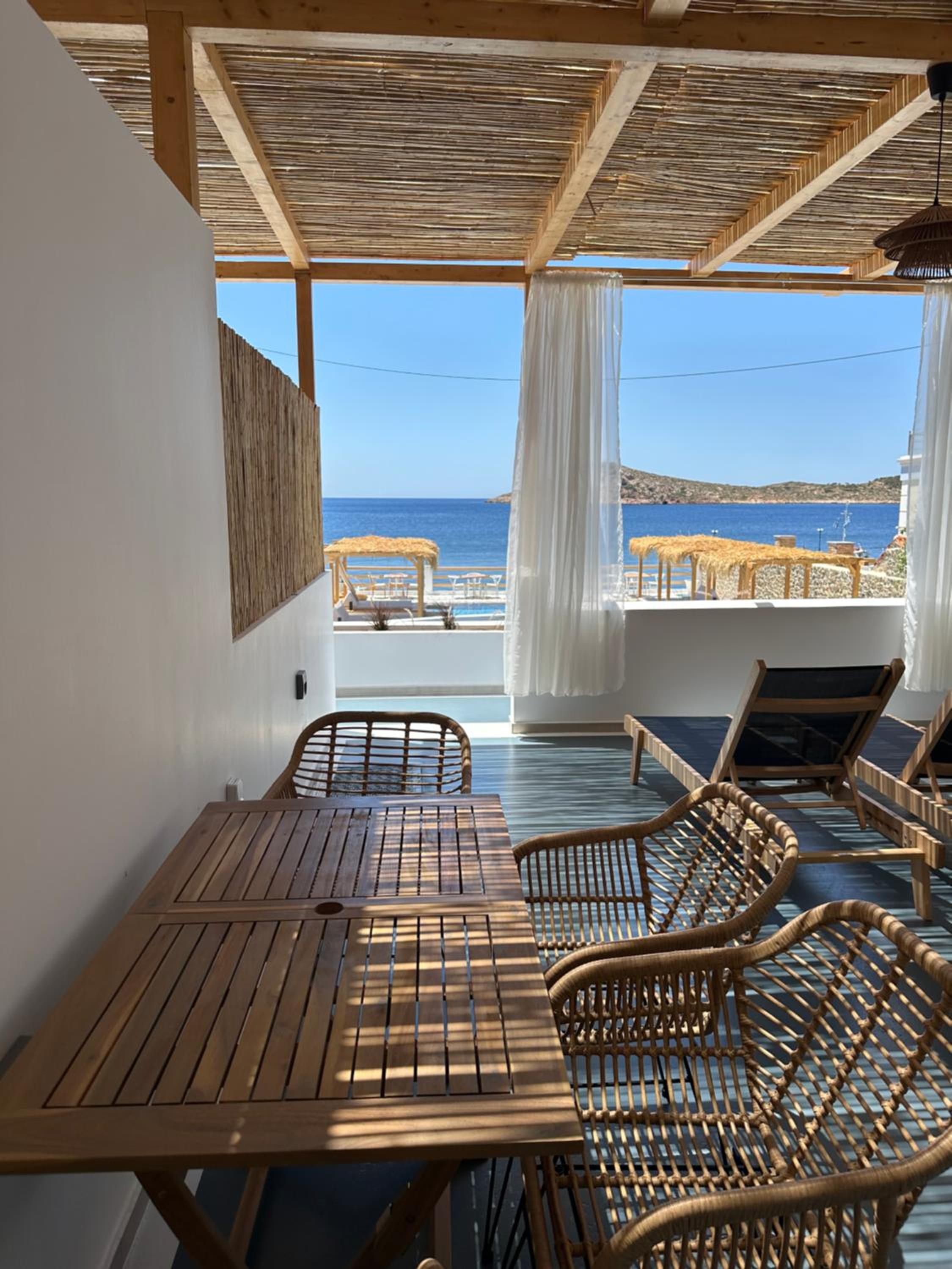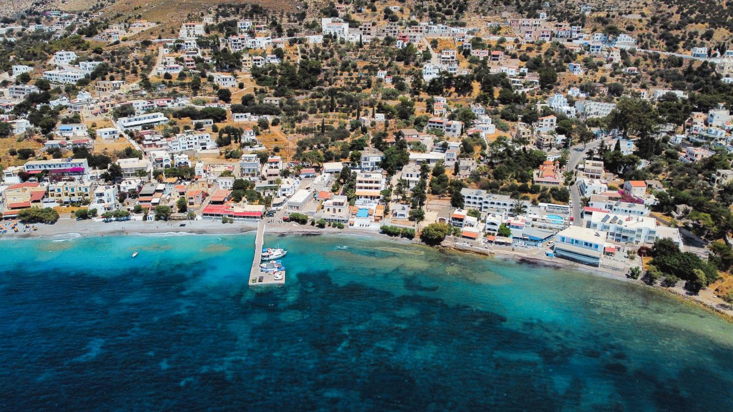 First and foremost, we loved the position. Just IN FRONT of TELENDOS, next to the dock where the boats come and go, with a stunning swimming pool overlooking the sea...on the rear, along the way where the reception is, a little square with a taxi stop, a supermarket and a car rental.