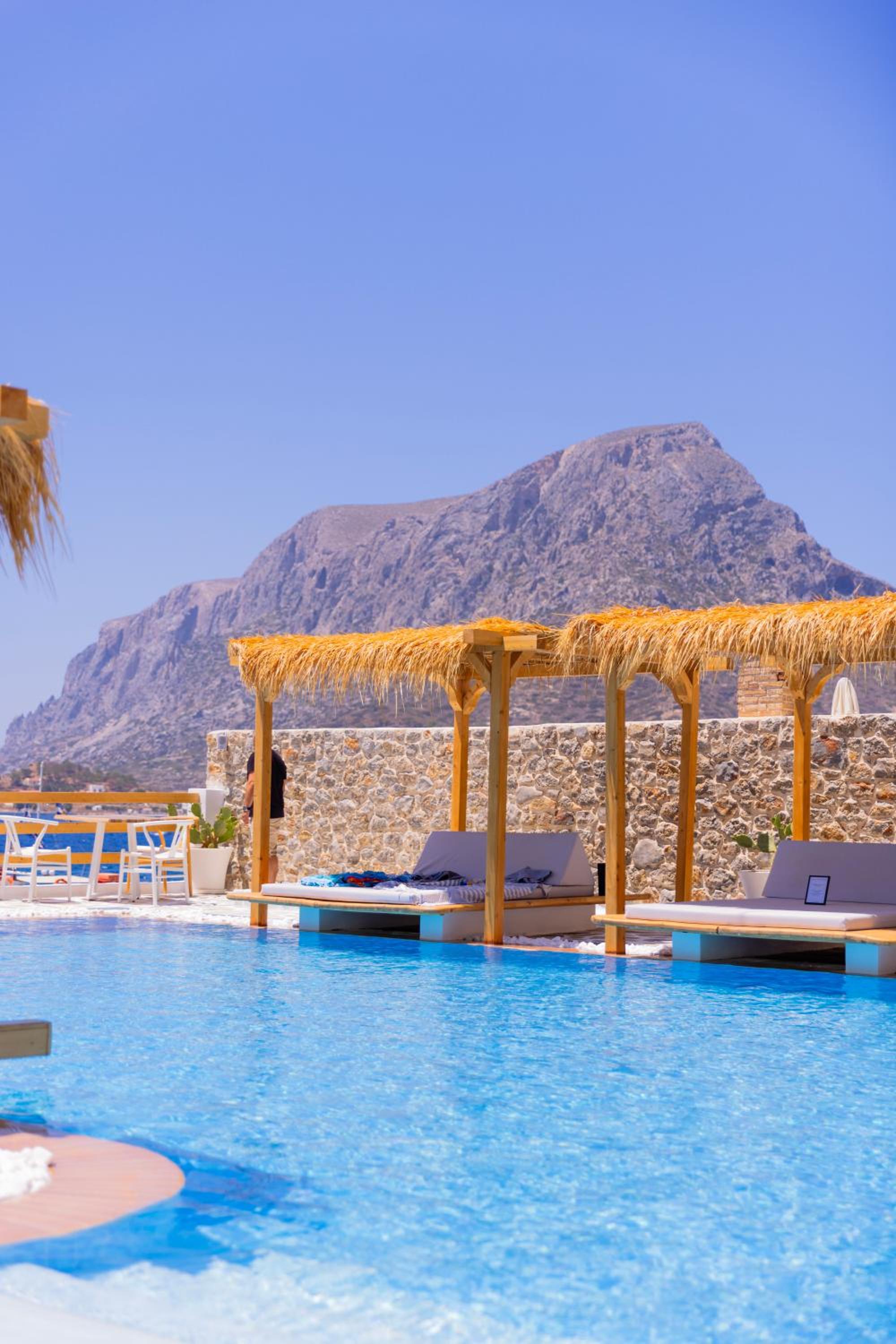 Allt! Detta var det bästa hotellet vi någonsin bott på. Rummet var superfint. Poolen var hur fin som helst. En trappa ner till havet, med härlig strand. Även i anslutning till piren där båtarna går till telendos. Personalen var den bästa personalen som finns! Så hjälpsamma och måna om oss. Ljuvlig frukost, citronmarängpajen pratar barnen fortsatt mycket om.