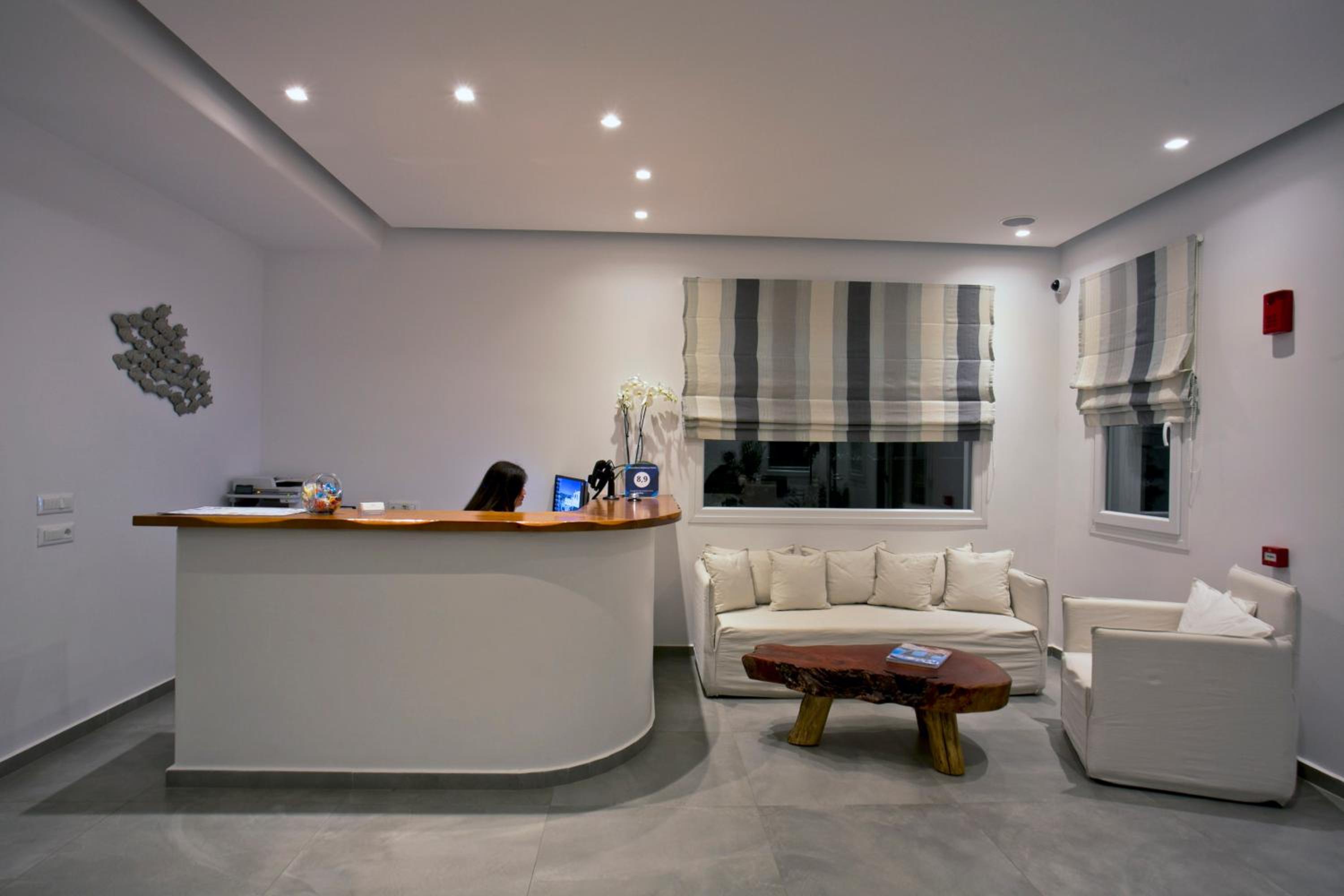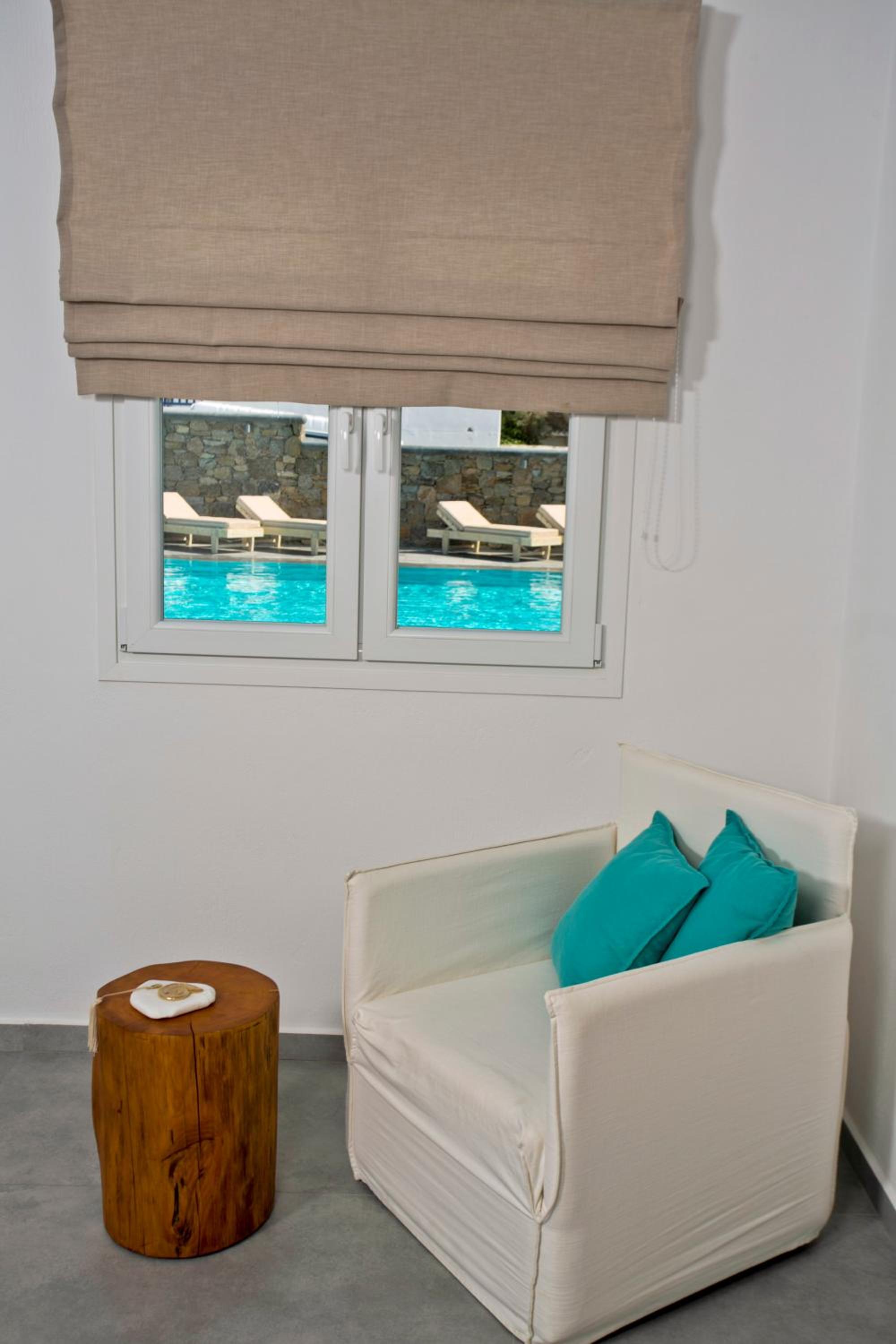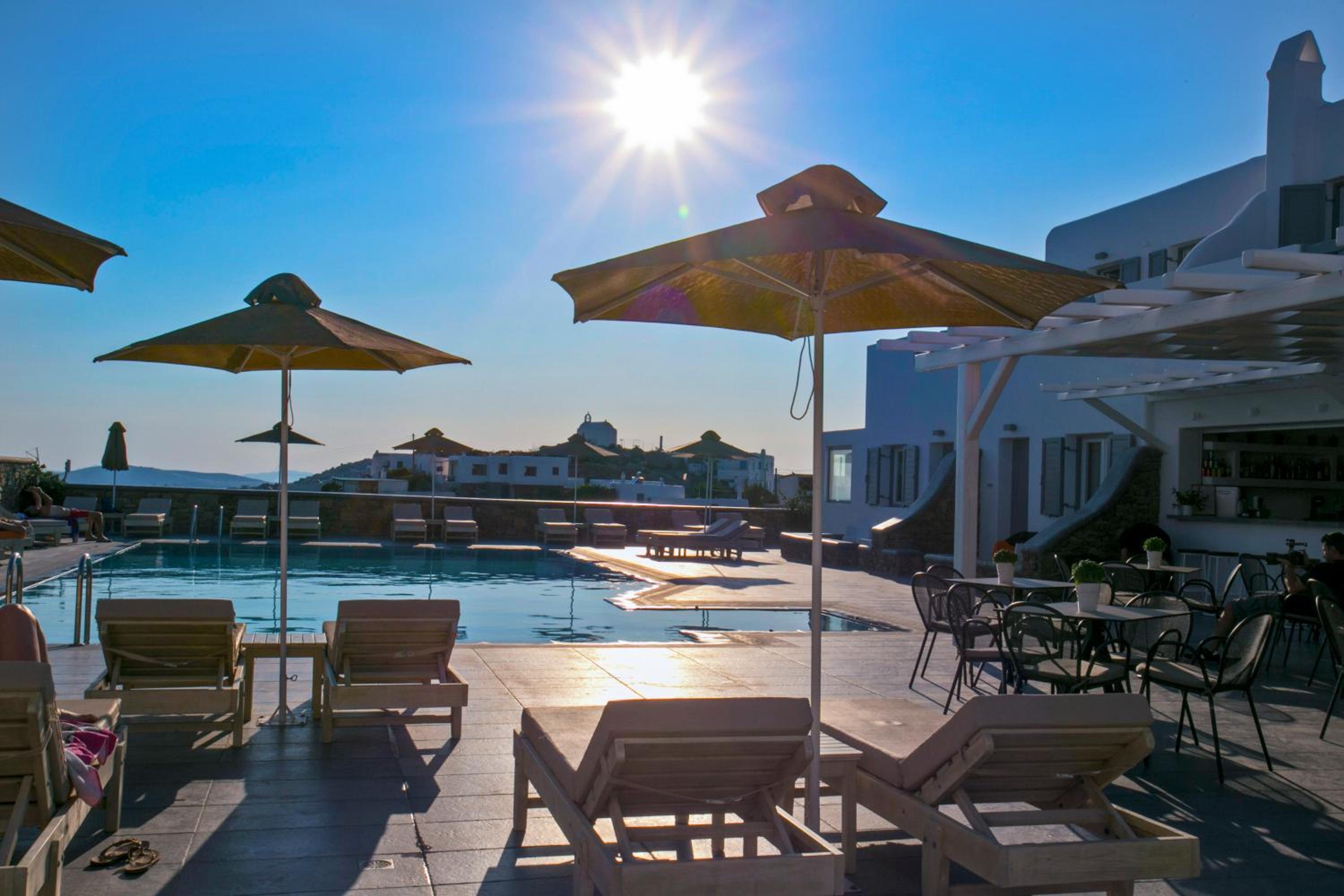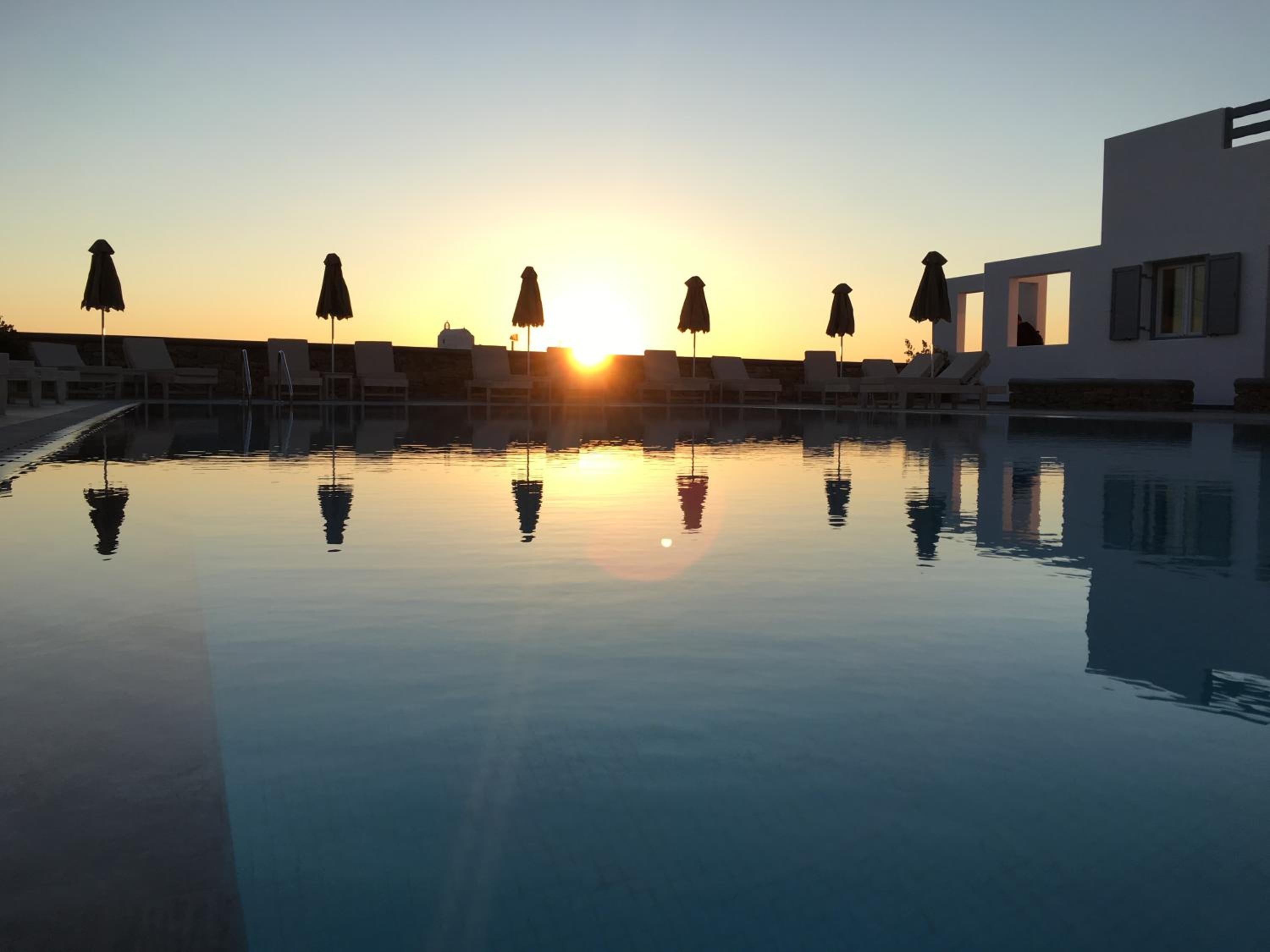 Anzitutto la posizione comodissima per chi noleggio un auto o una macchina. 5 minuti dall’aeroporto di Mykonos. Personale disponibilissimo, camere pulitissime, colazione buonissima ricca dolce e salata, davvero un ottima struttura