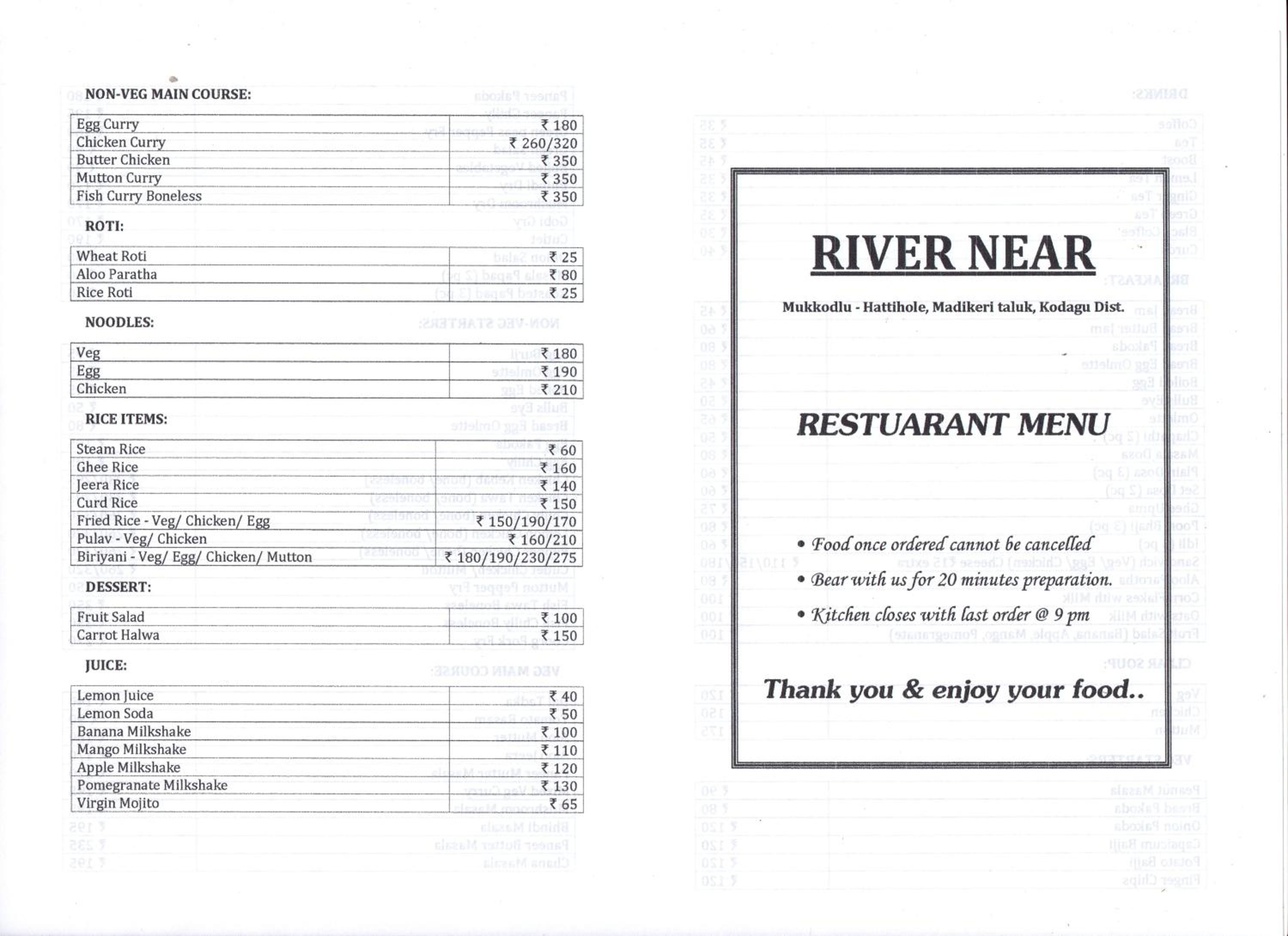 They were claiming it as a 3 star property and was priced so. But it was not even a remote 2 star. Kitchen and food options are limited. Made to order and we can’t change or reorder. Food price was excessive and was charging like a full 3 star property. 24x7 security or not even staff were there. Stray dogs and cats were roaming in the property and no one bothered. Flies were another issue. You can’t switch on lights and large flies comes in. The river nearby was not accessible properly as the way to the river was not at all maintained. Very bad in these terms. Also the staff told they won’t respond even in case of an emergency after 11.30 pm. It was like you are alone in a remote isolated place.