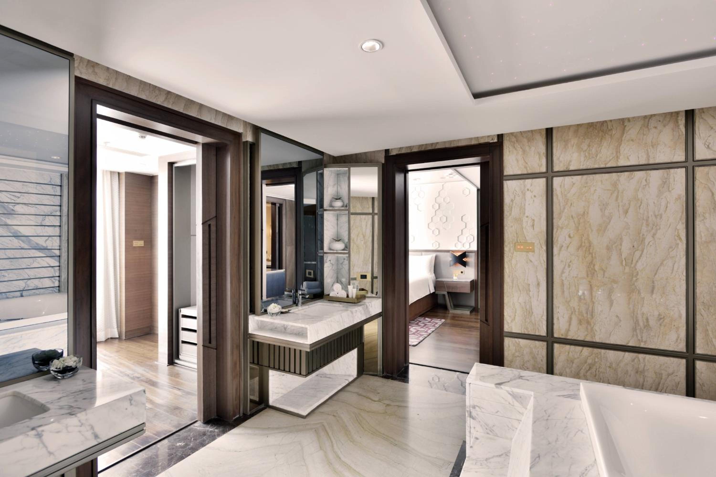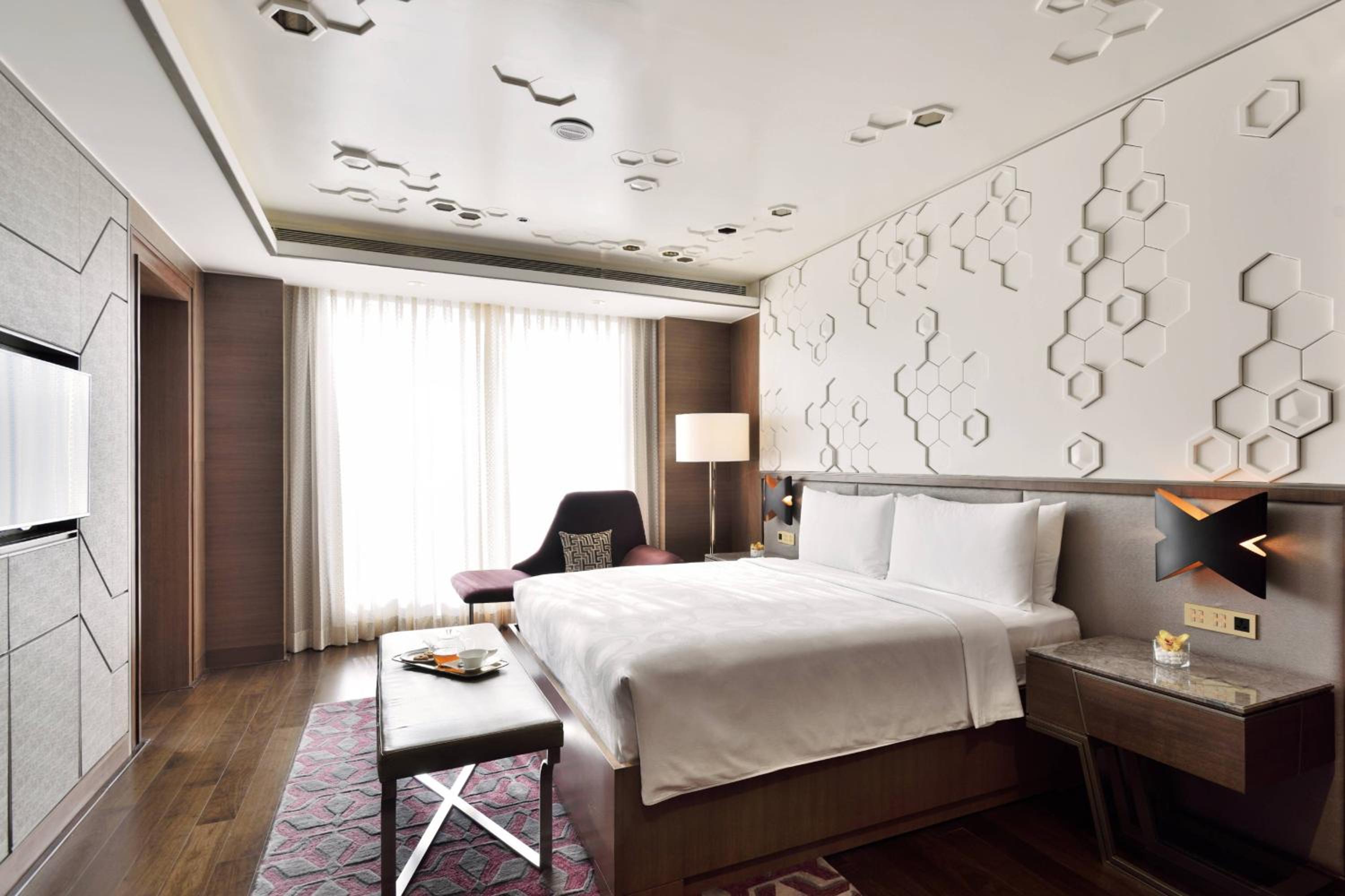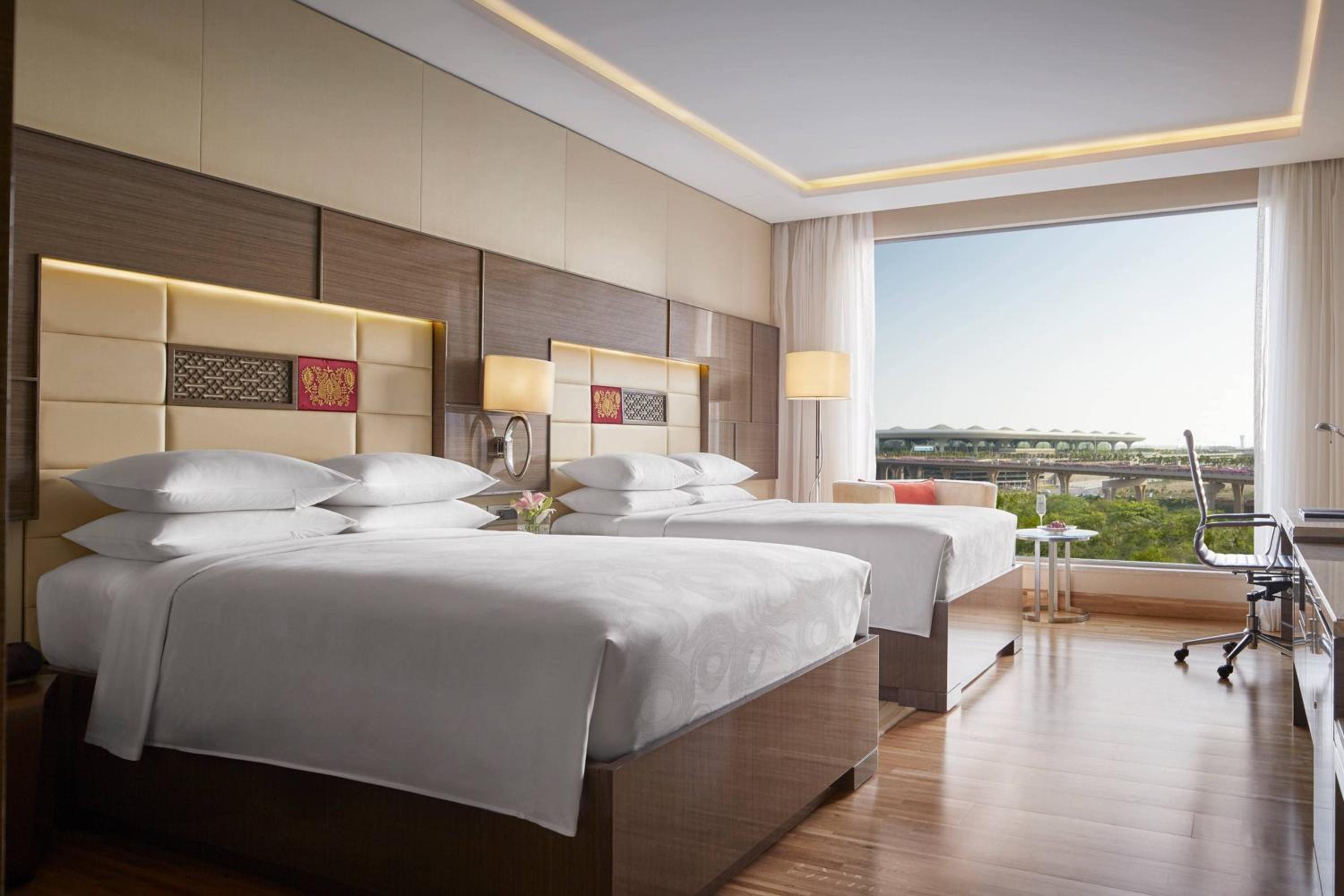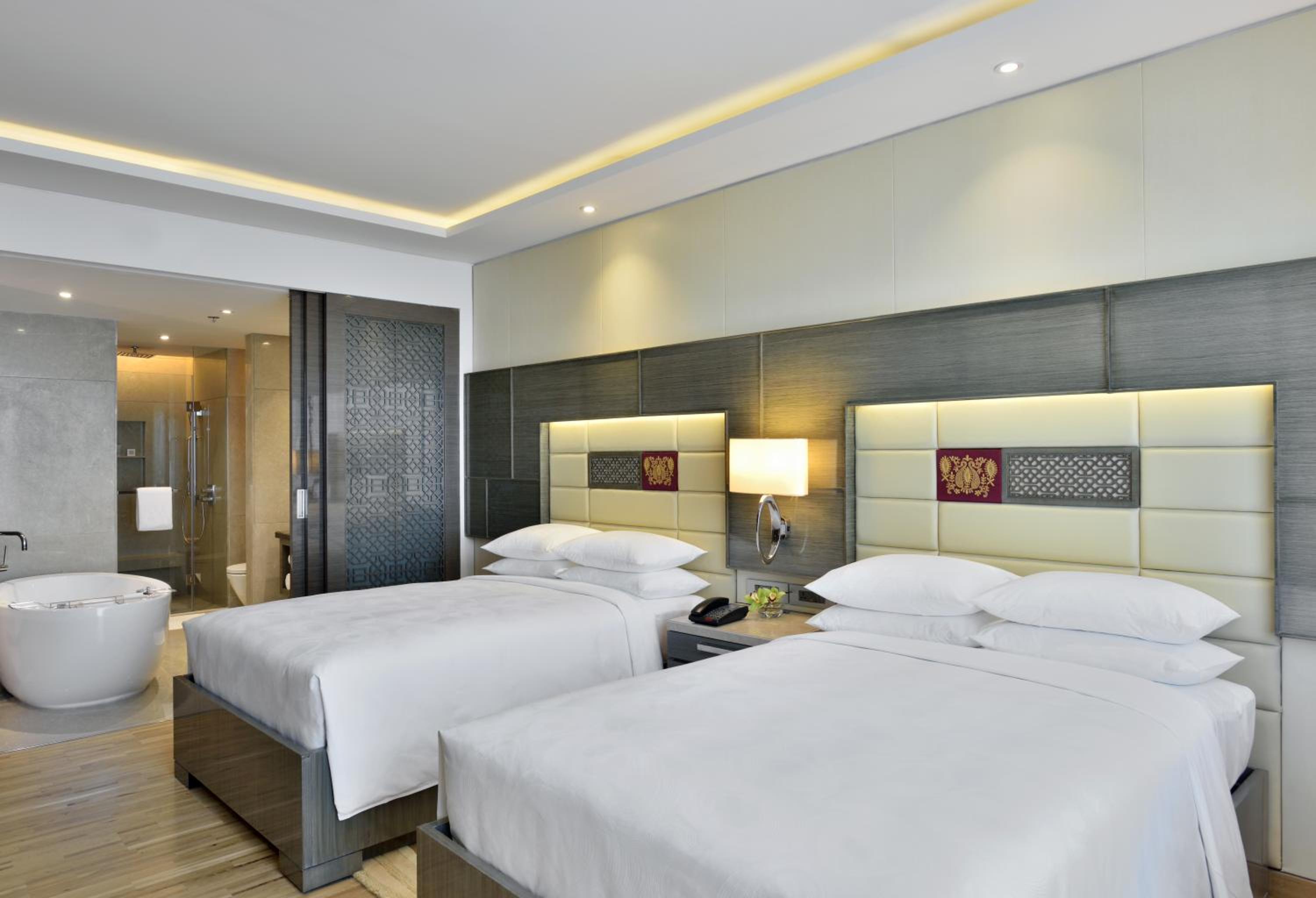 Experience comfort and elegance in every room at JW Marriott Mumbai Sahar. Each room is equipped with air conditioning, a minibar, and a private bathroom featuring modern amenities.