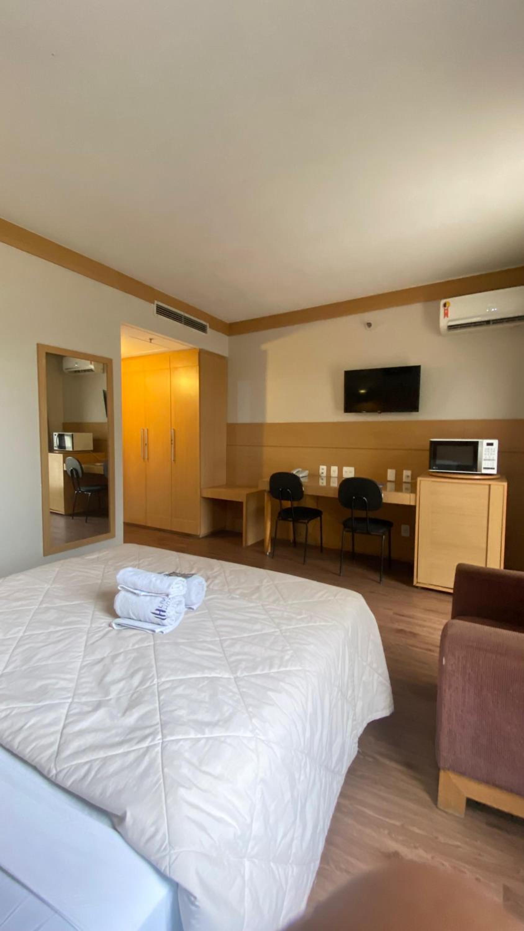 O quarto é muito simples, fica dentro do hotel quality mas não tem sequer água pra beber dentro do quarto.
