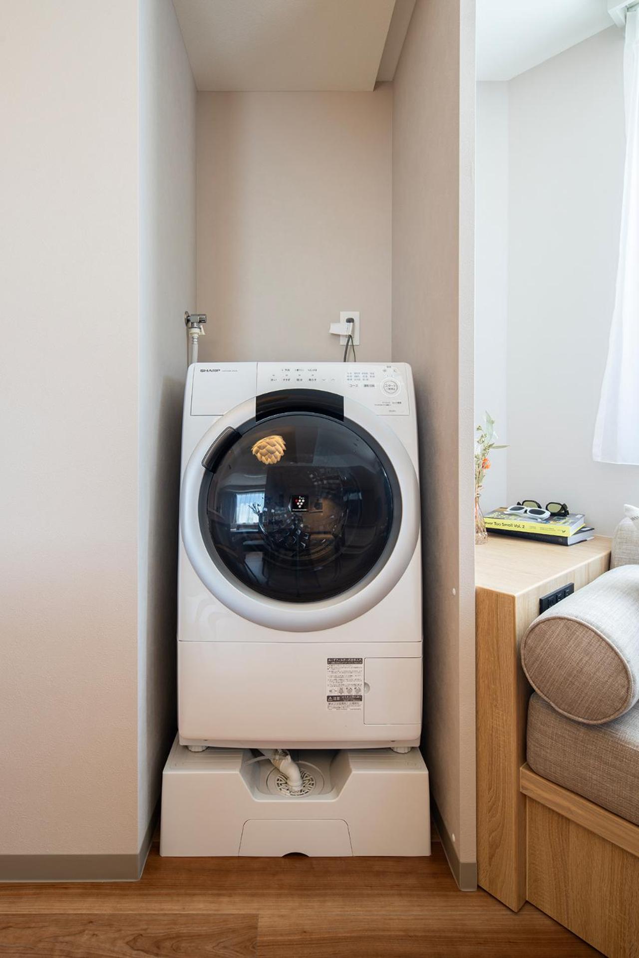 Amenities made for easy living; in apartment laundry for longer stay and well equipped kitchen.