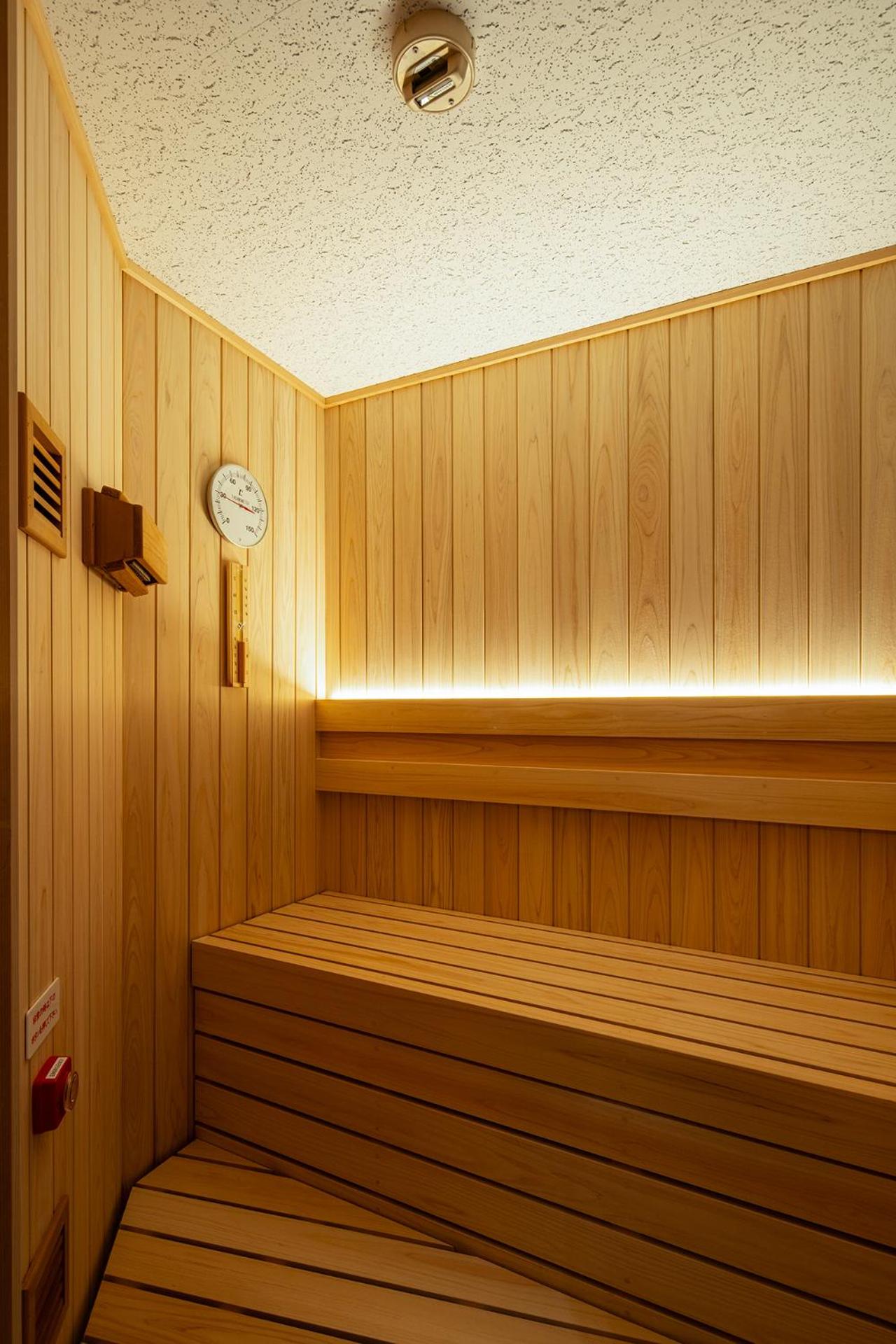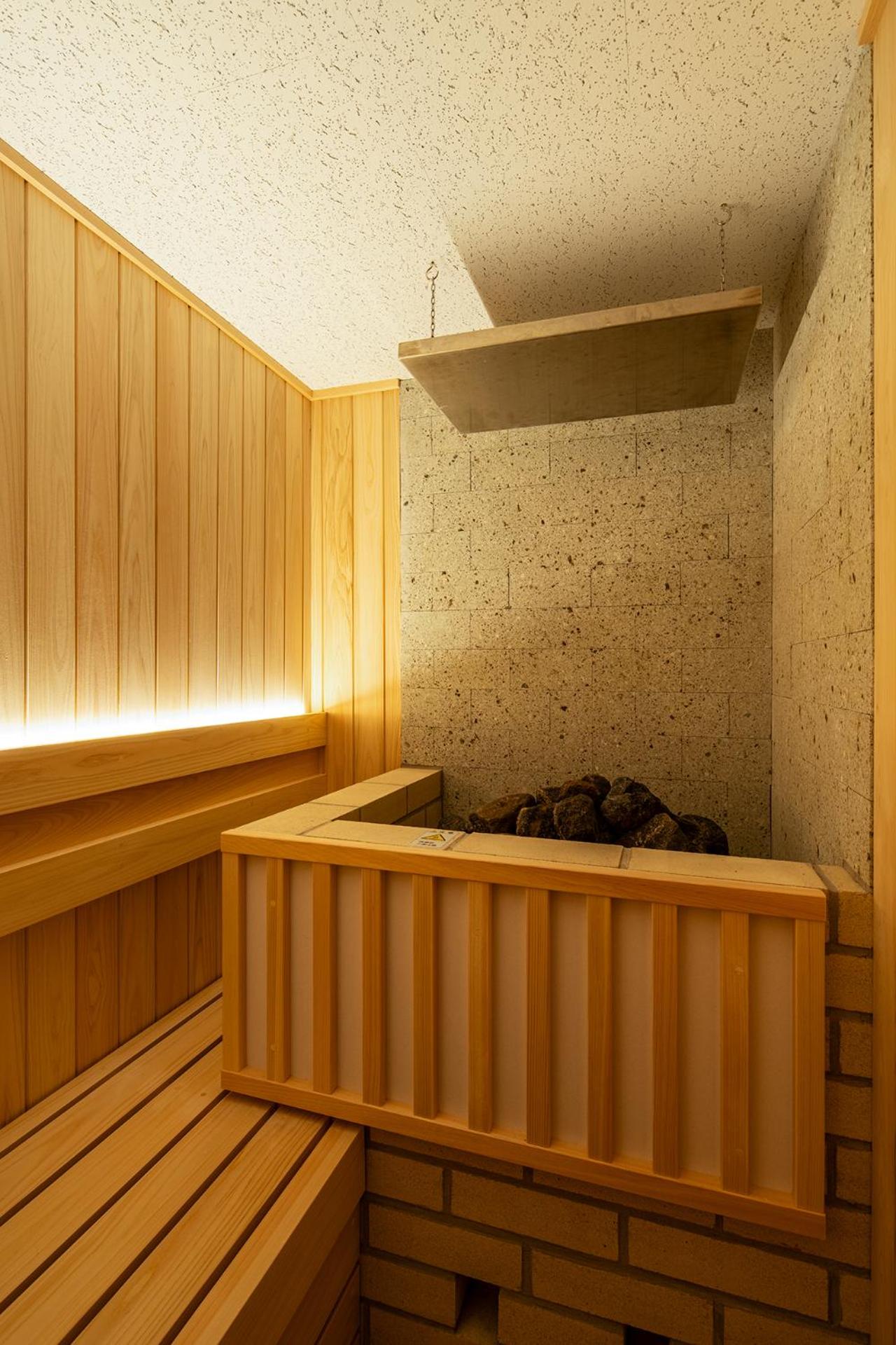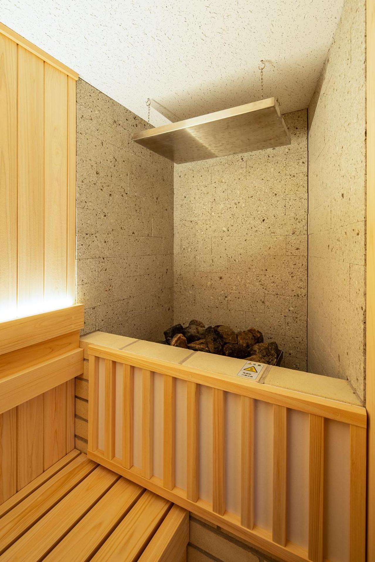 Immaculate room with washer dryer. Also sauna rooms above. Small lobby but good coffee and tea options. Great front desk staff.