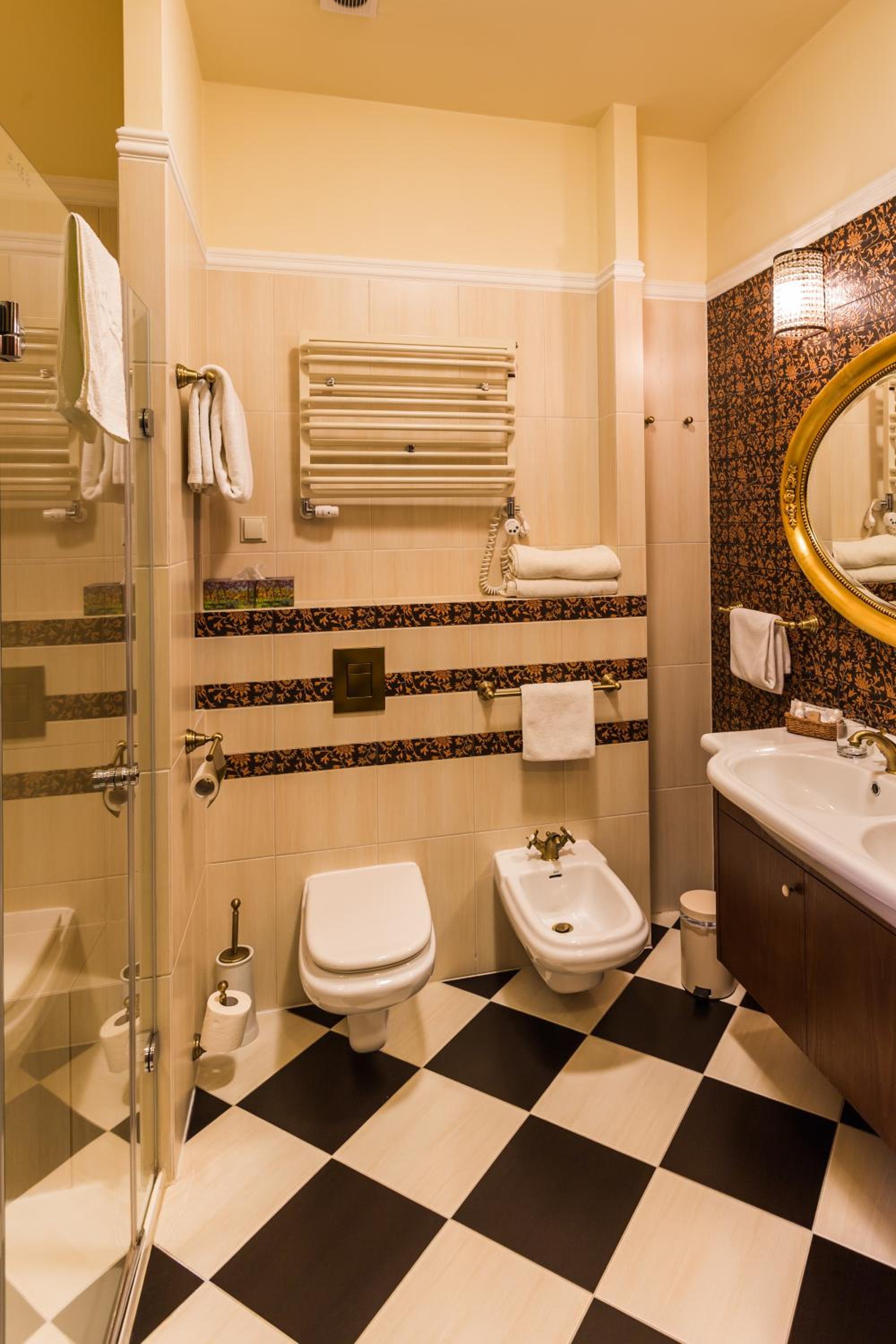 Savor delectable Polish and international cuisine at our two restaurants, unwind at the bar, and find all your essentials at the on-site shop. Enjoy complimentary WiFi, parking, room service, and a 24/7 front desk for a seamless stay.