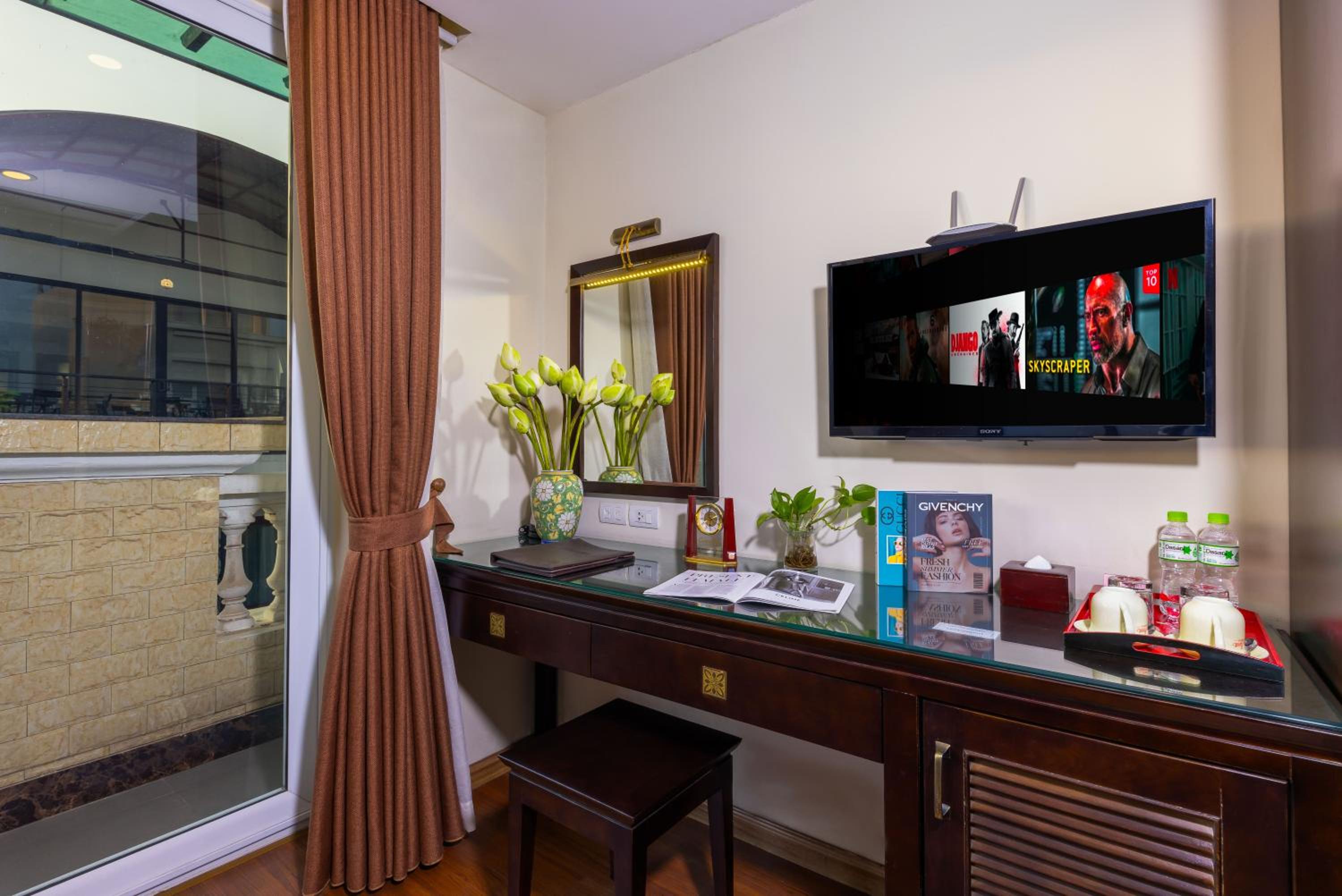 Очень отзывчивый персонал. Организовали экскурсию в бухту Халонг. Предоставили трансфер от аэропорта и обратно. Местоположение в самом центре.