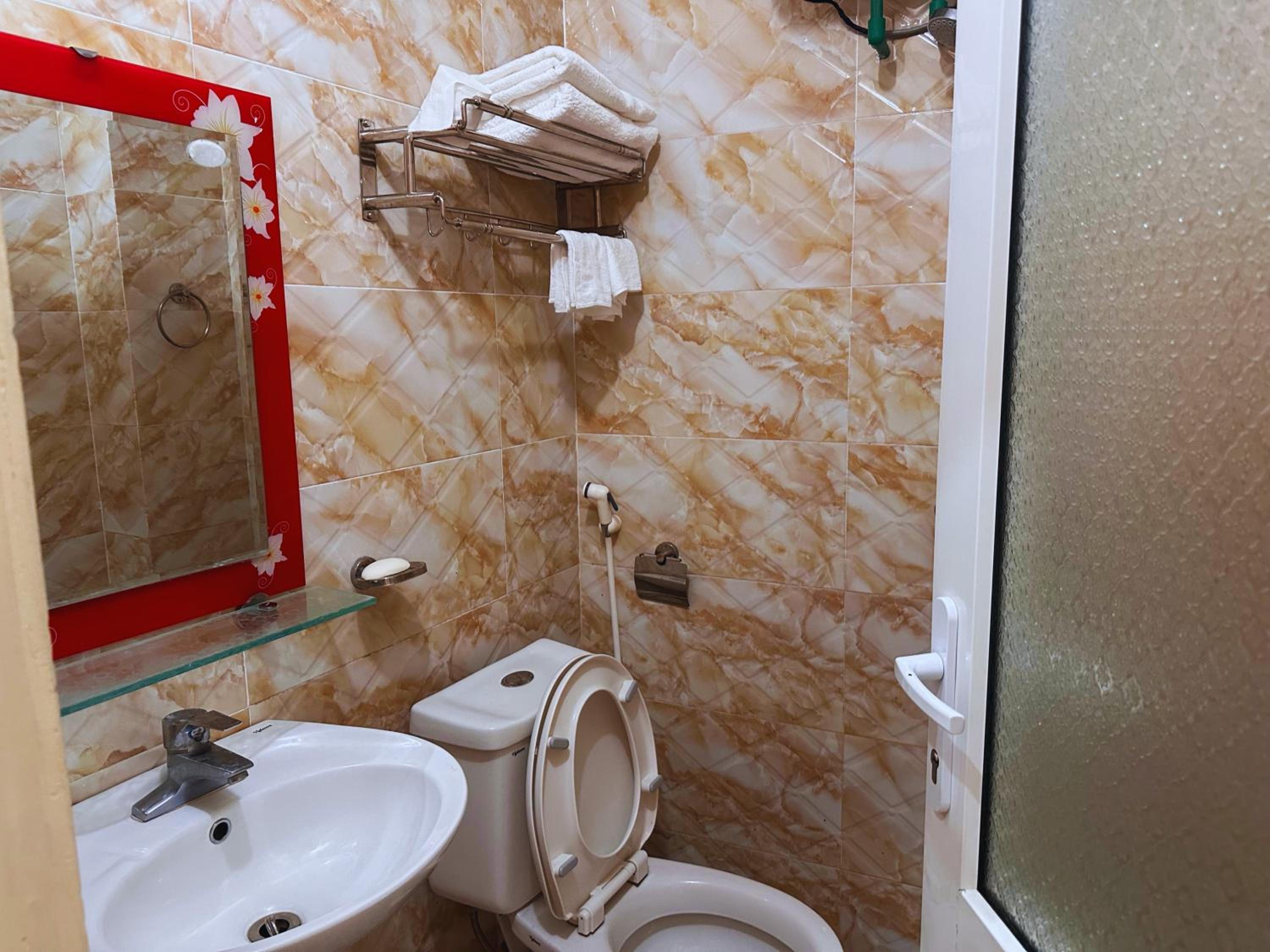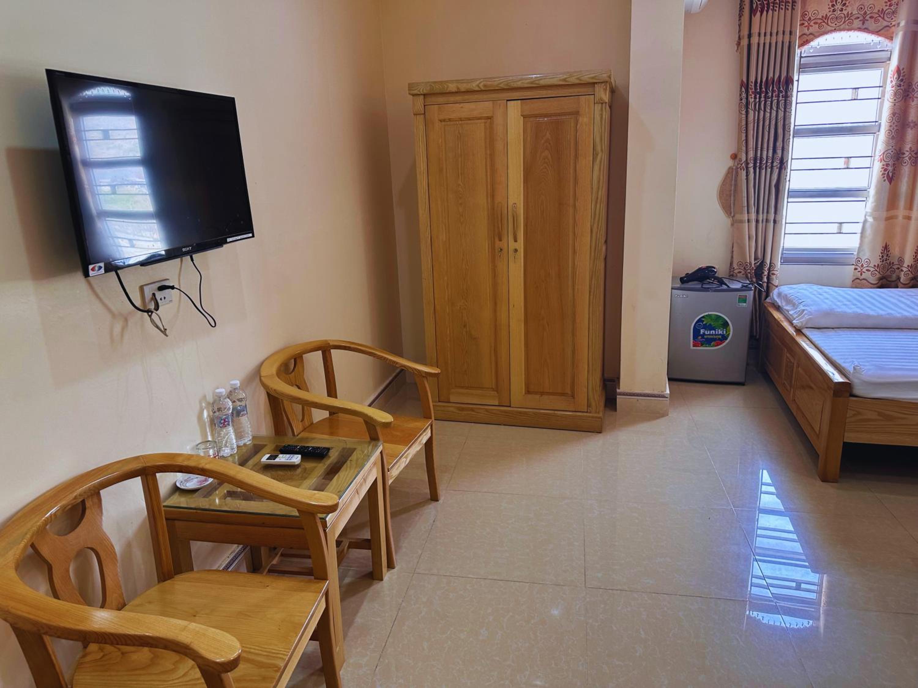 Located in the center of Meo Vac, near the main markets, shops, restaurants, room very clean with kettle, hair dryer, all the standard personal items for you to use that you find in the Vietnamese hotels. Motorbike parking available.