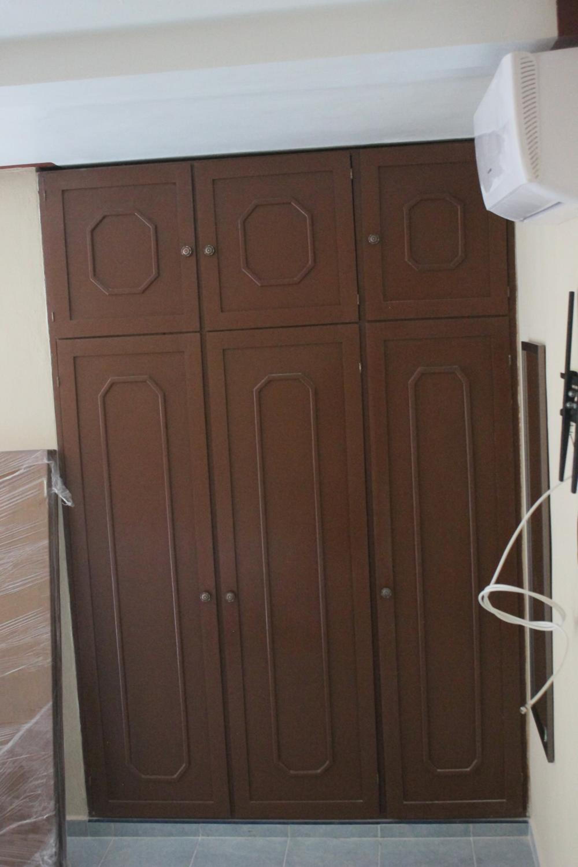 Car park and very clean room.