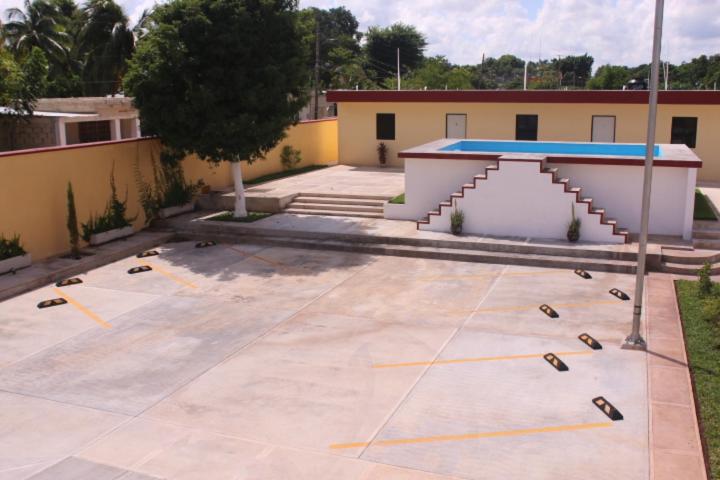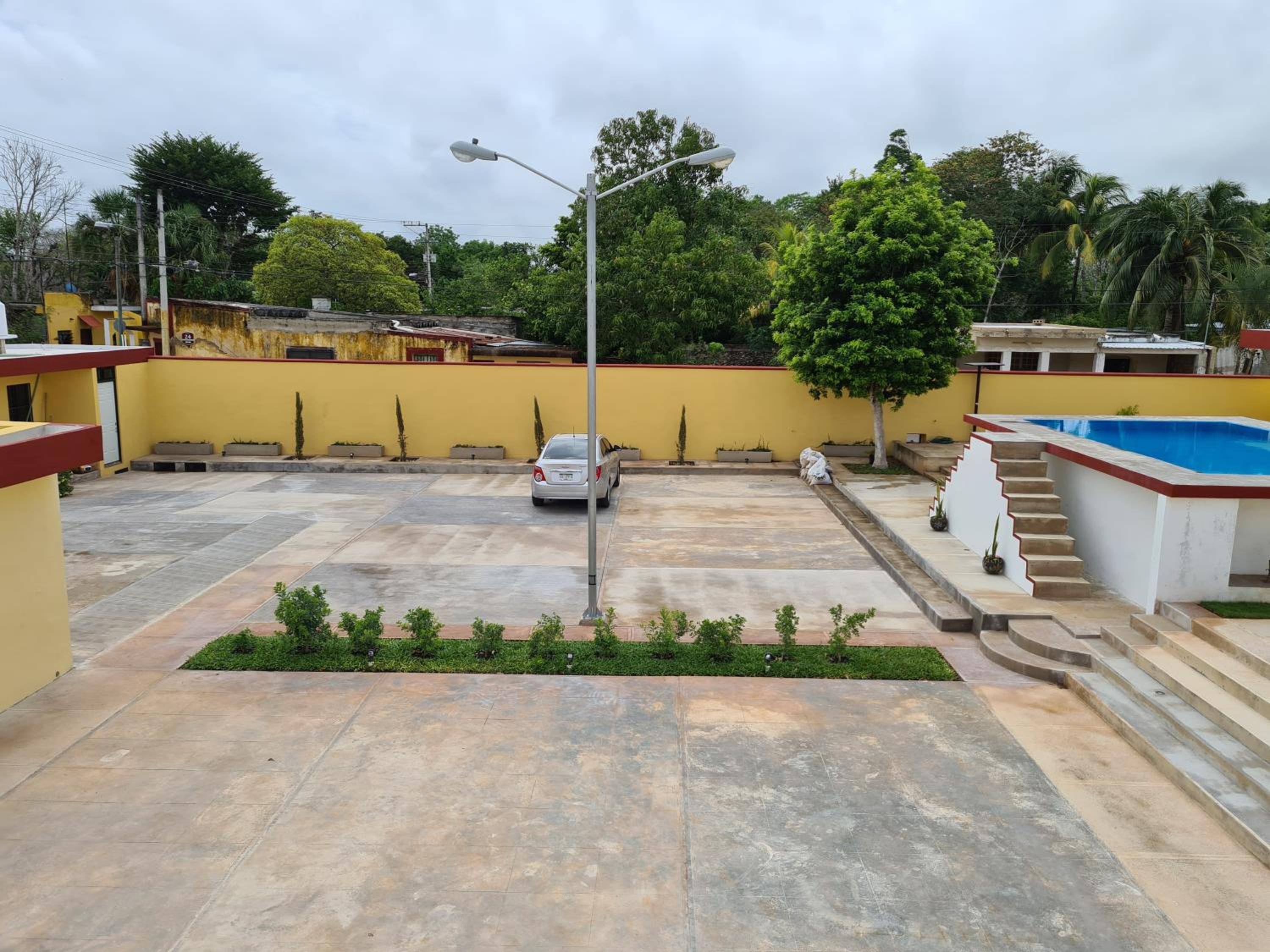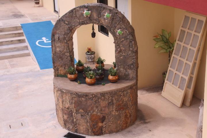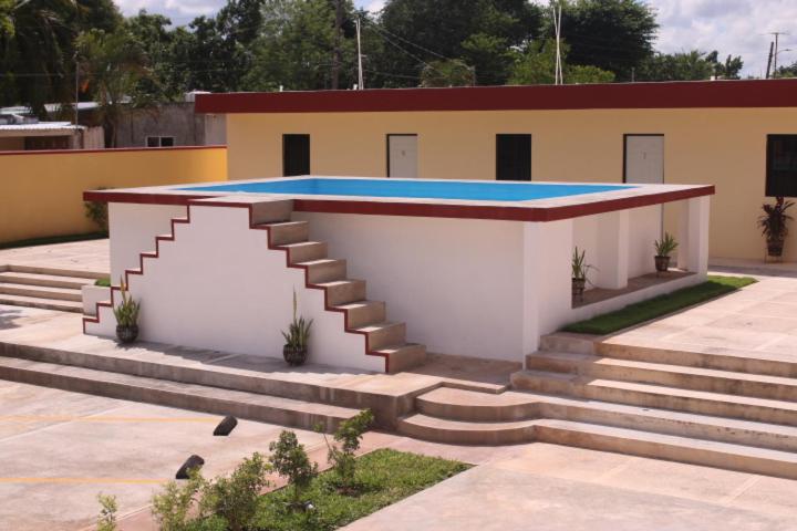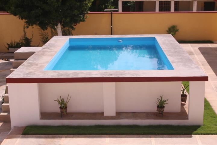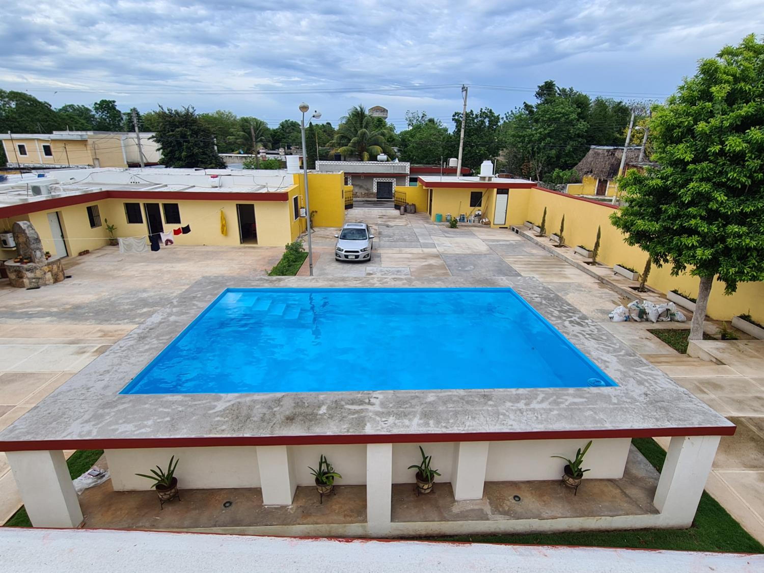 Hotel La Piramide Izamal offers a serene outdoor swimming pool and lush garden for guests to unwind and relax in a tranquil setting.