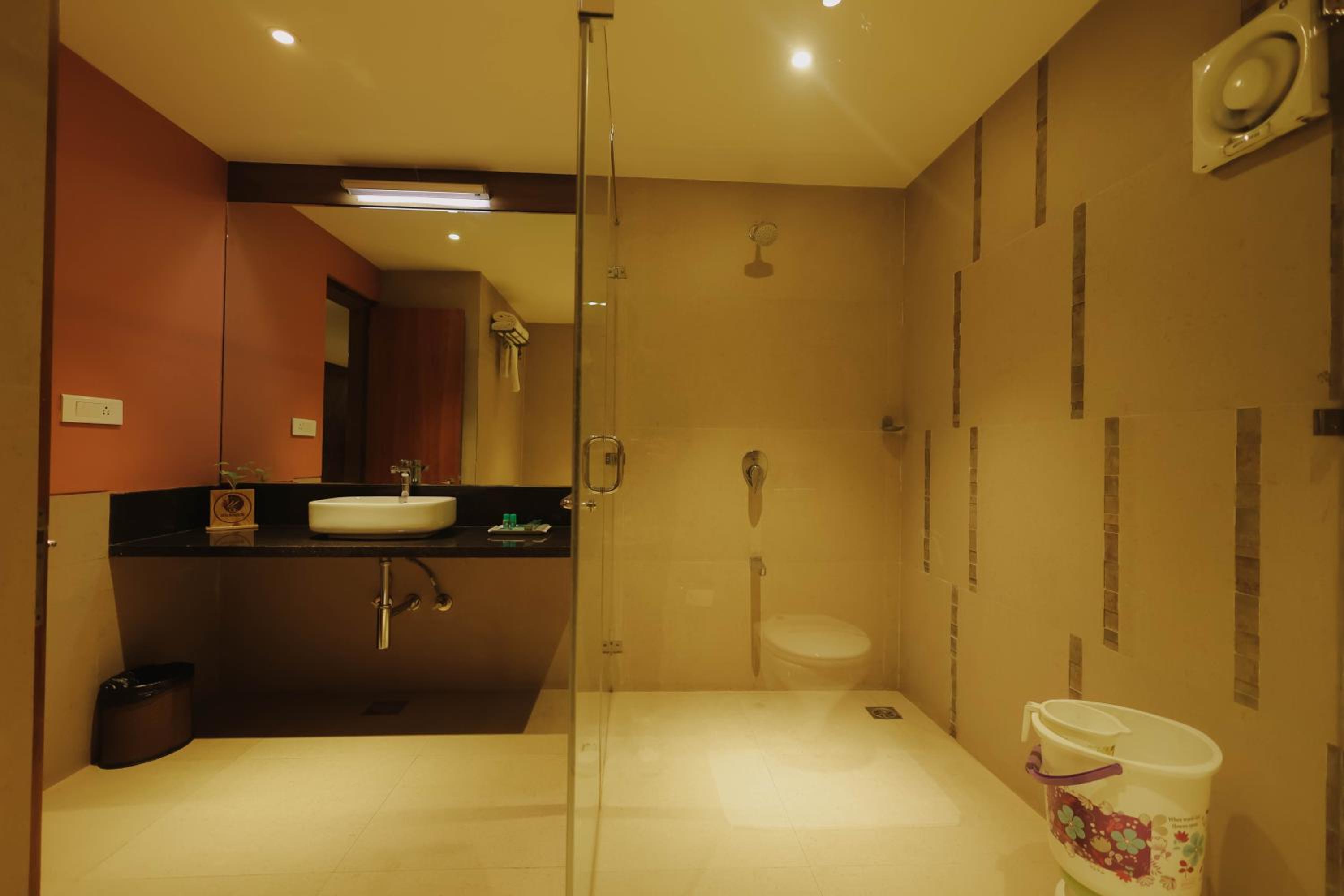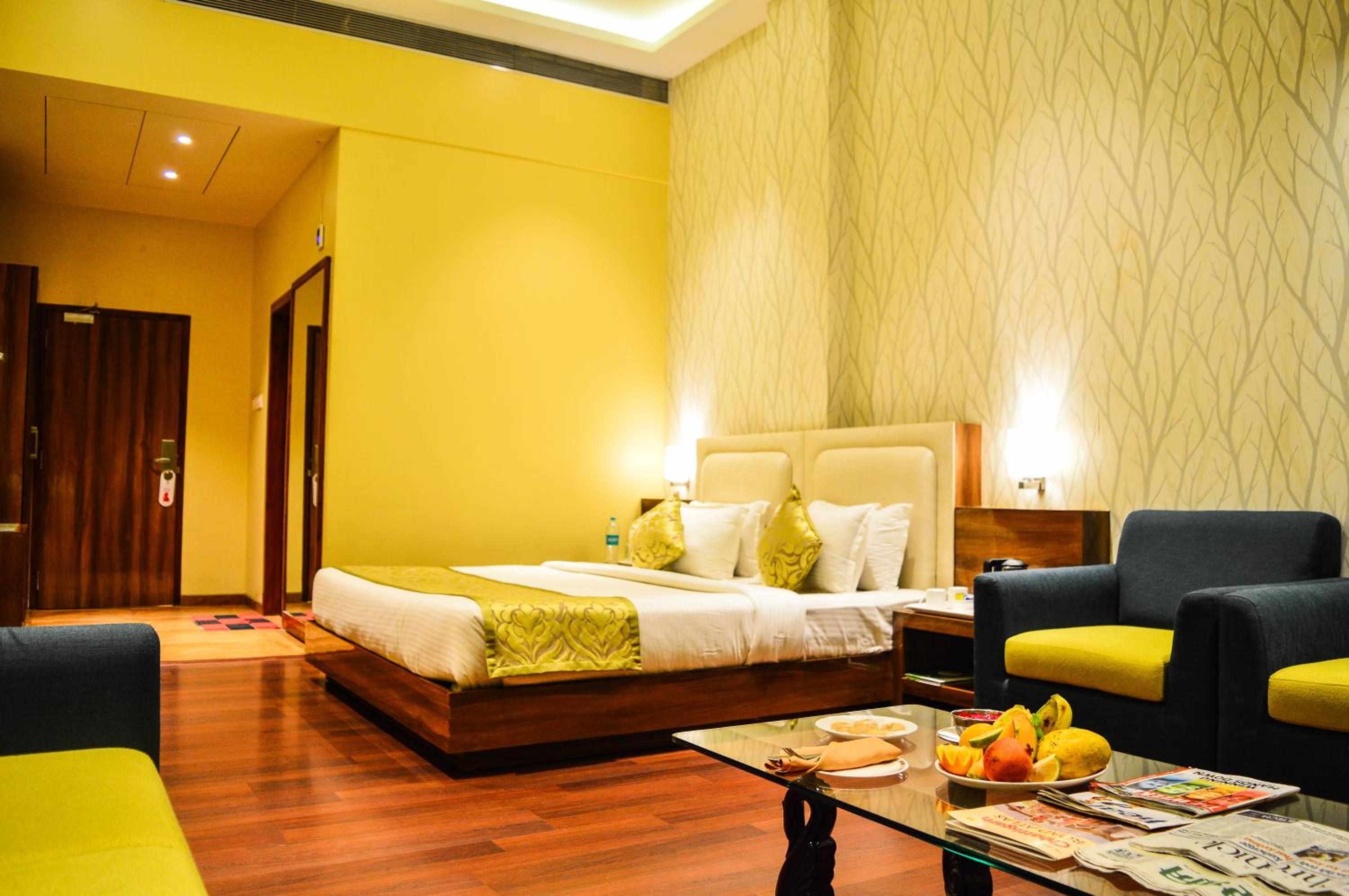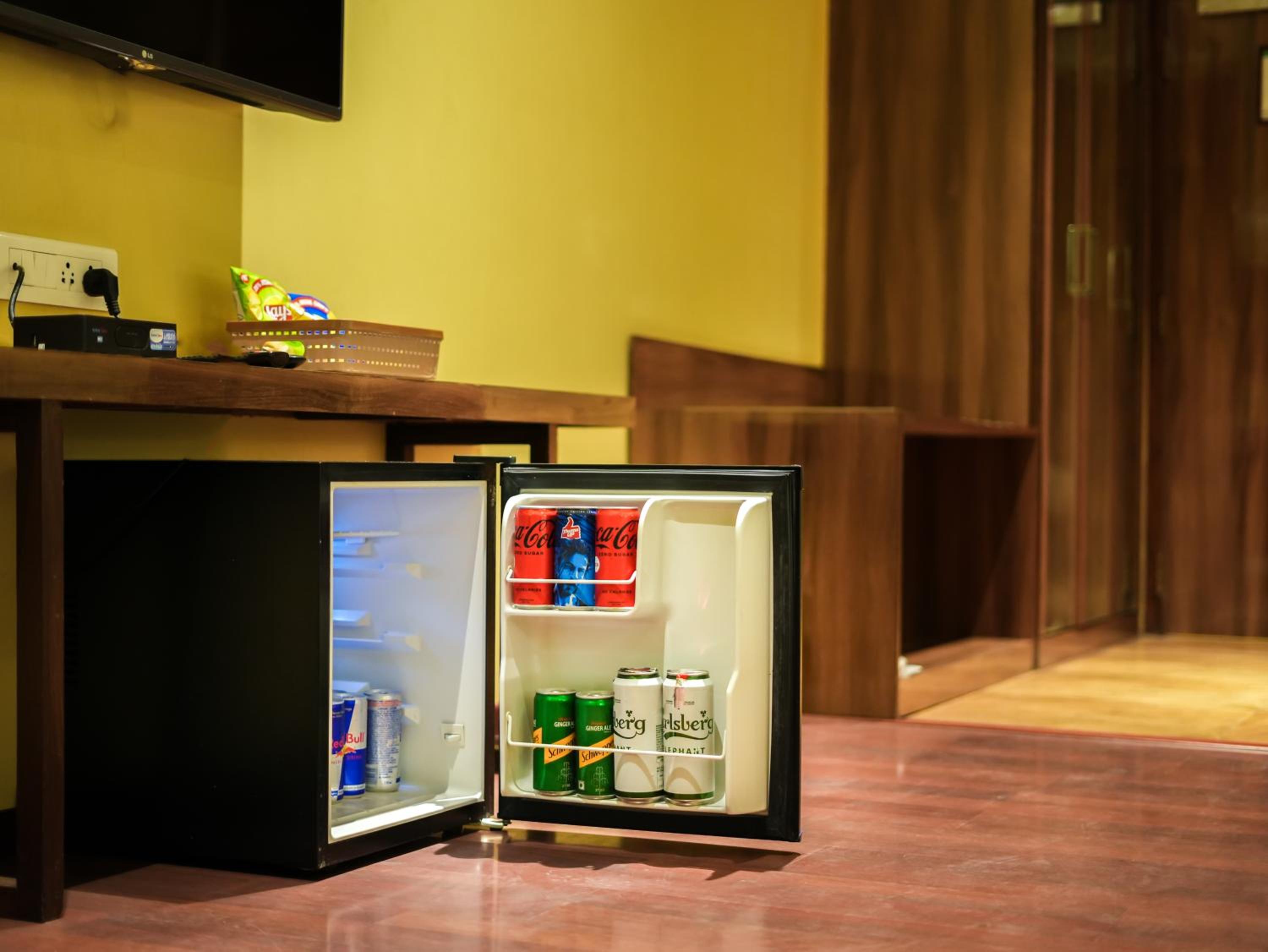 The room, otherwise very comfortable did not have space for keeping luggage. I placed my luggage over the small sized refrigerator. Also, the room did not have a chair. It would be a good idea to remove the extra single bed (over and above the king sized bed) and find place for a luggage rack and chair.