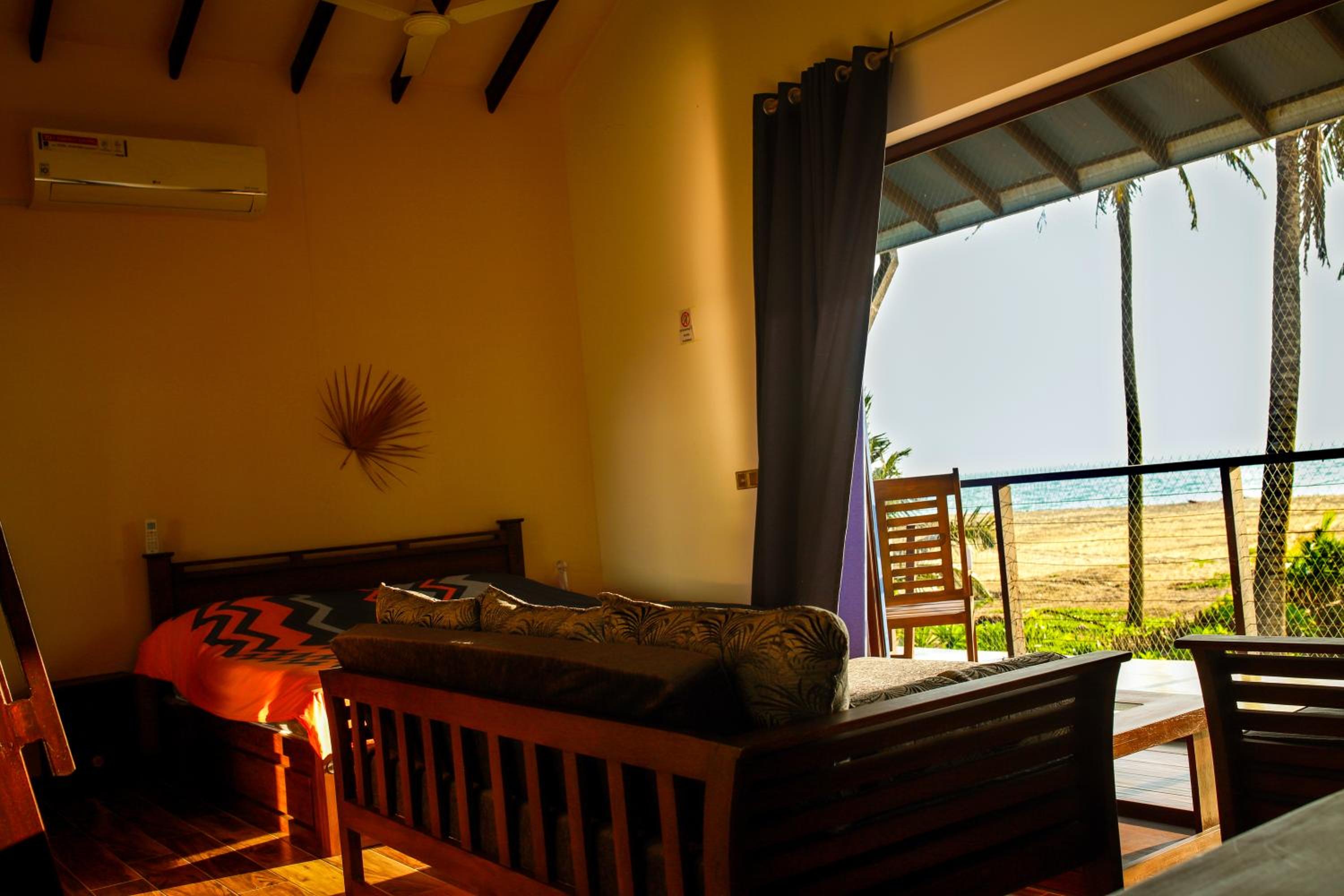 Parfait pour se reposer. Ce n’est pas une région touristique. L’environnement est très calme, entouré de champs de cocotiers. Accès direct à l’océan. Attention, à cette période (août), les vagues sont trop fortes pour se baigner, mais châteaux de sable et balade le long de l’eau autorisés !